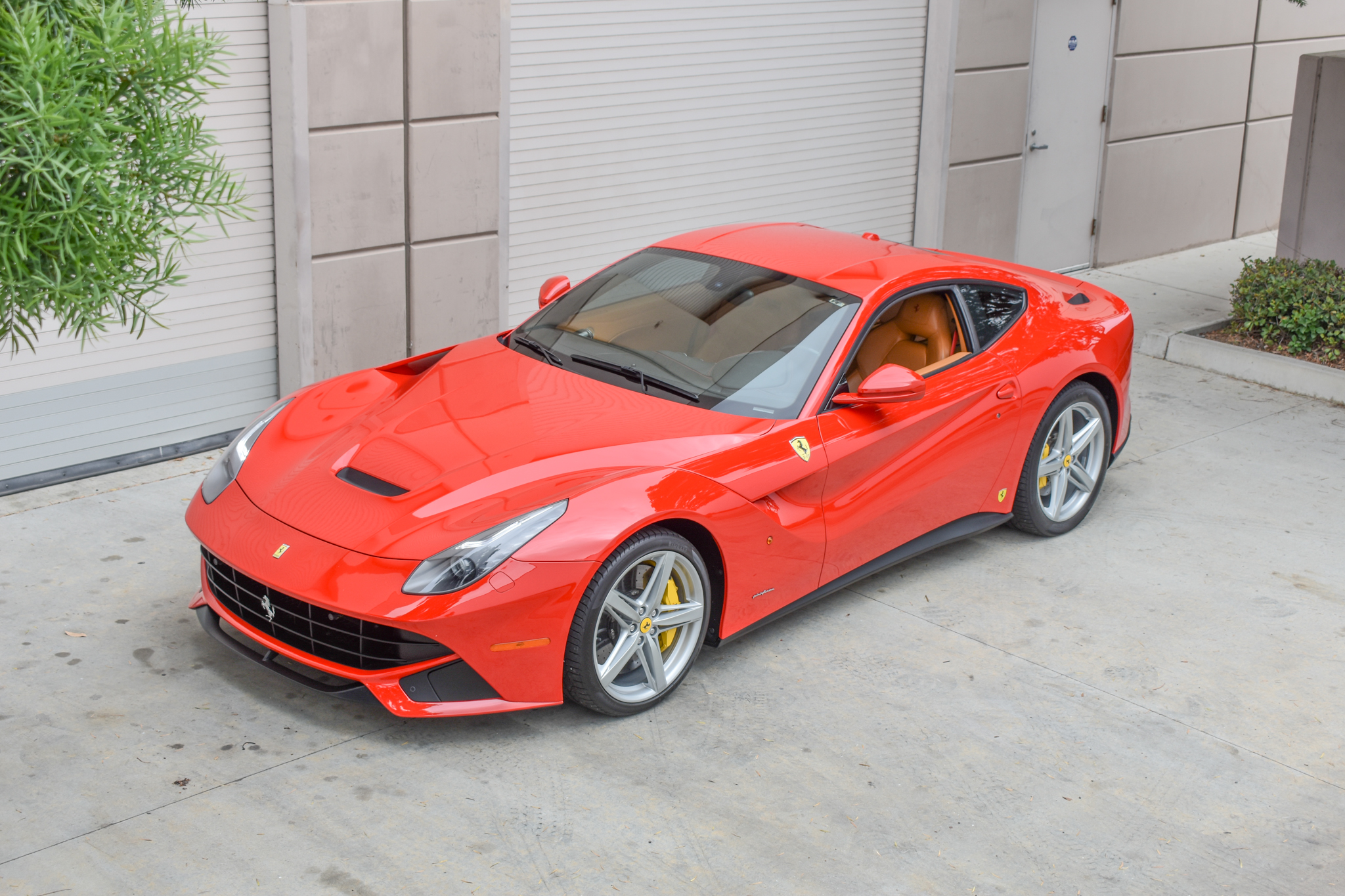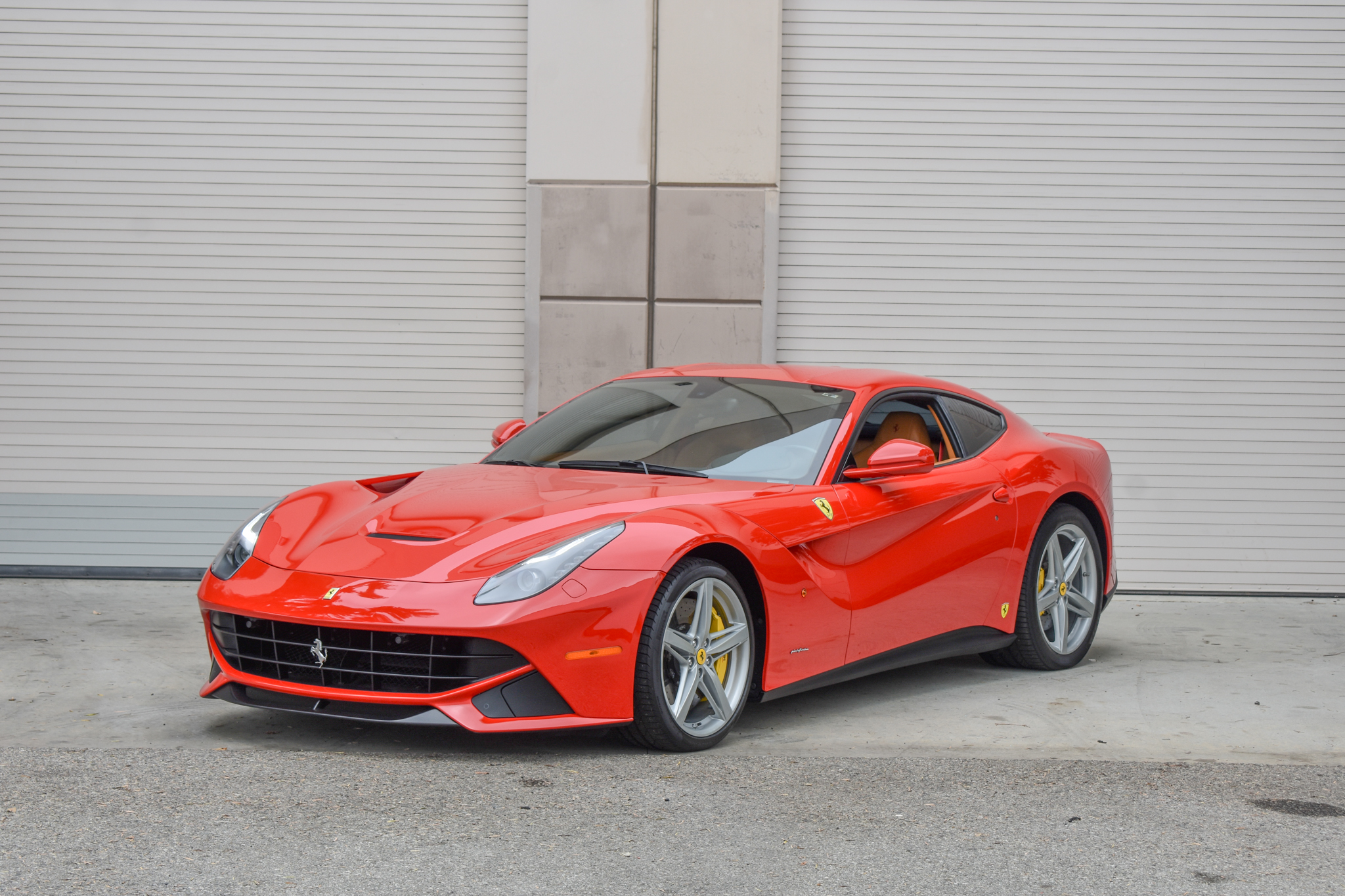 Staggered-width 20″ wheels are mounted with 255/35 and 315/35 Pirelli P Zero tires. The F12 was equipped with a magnetorheological suspension, and braking is handled by carbon-ceramic rotors and optional yellow-finished calipers.