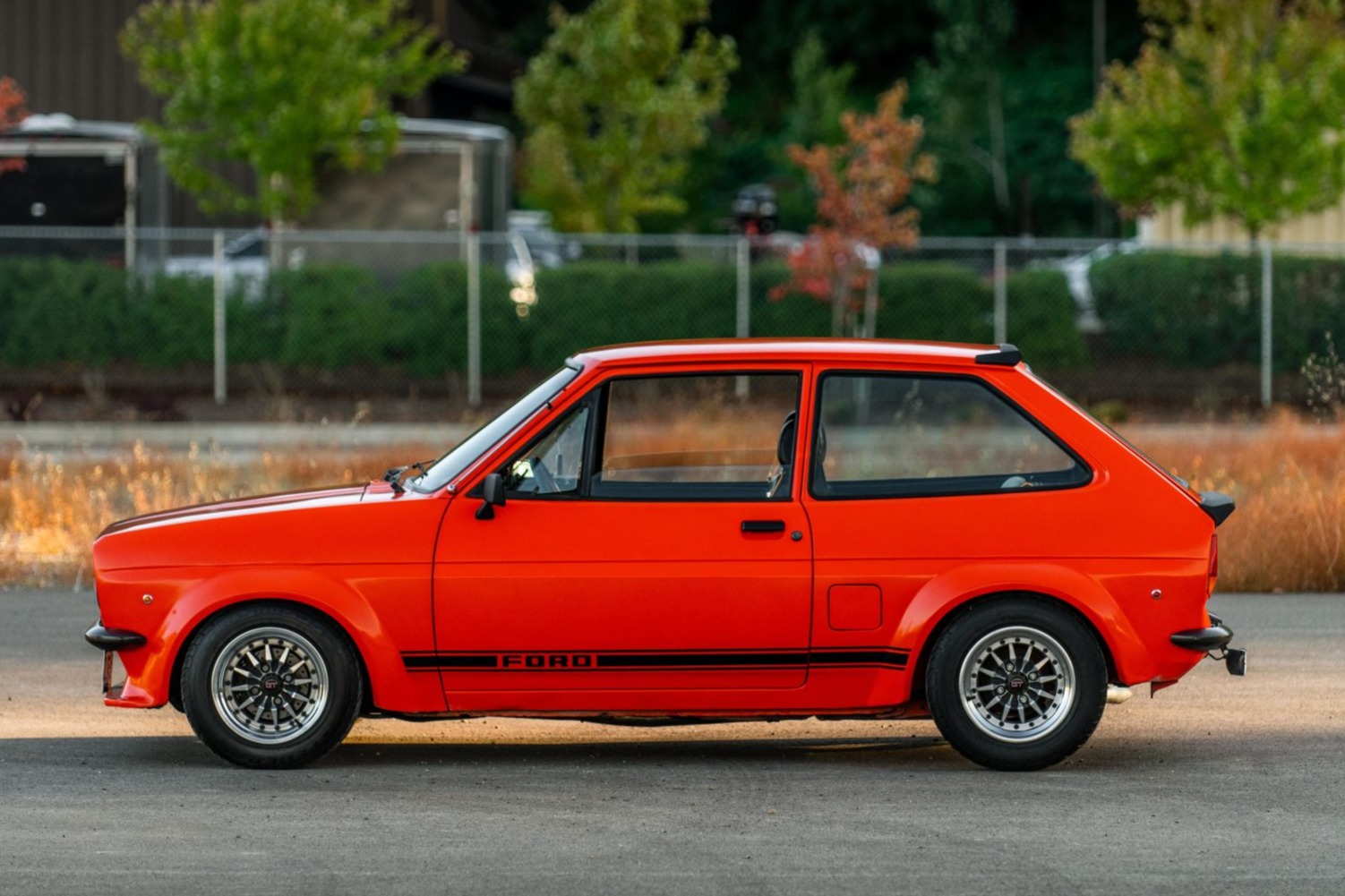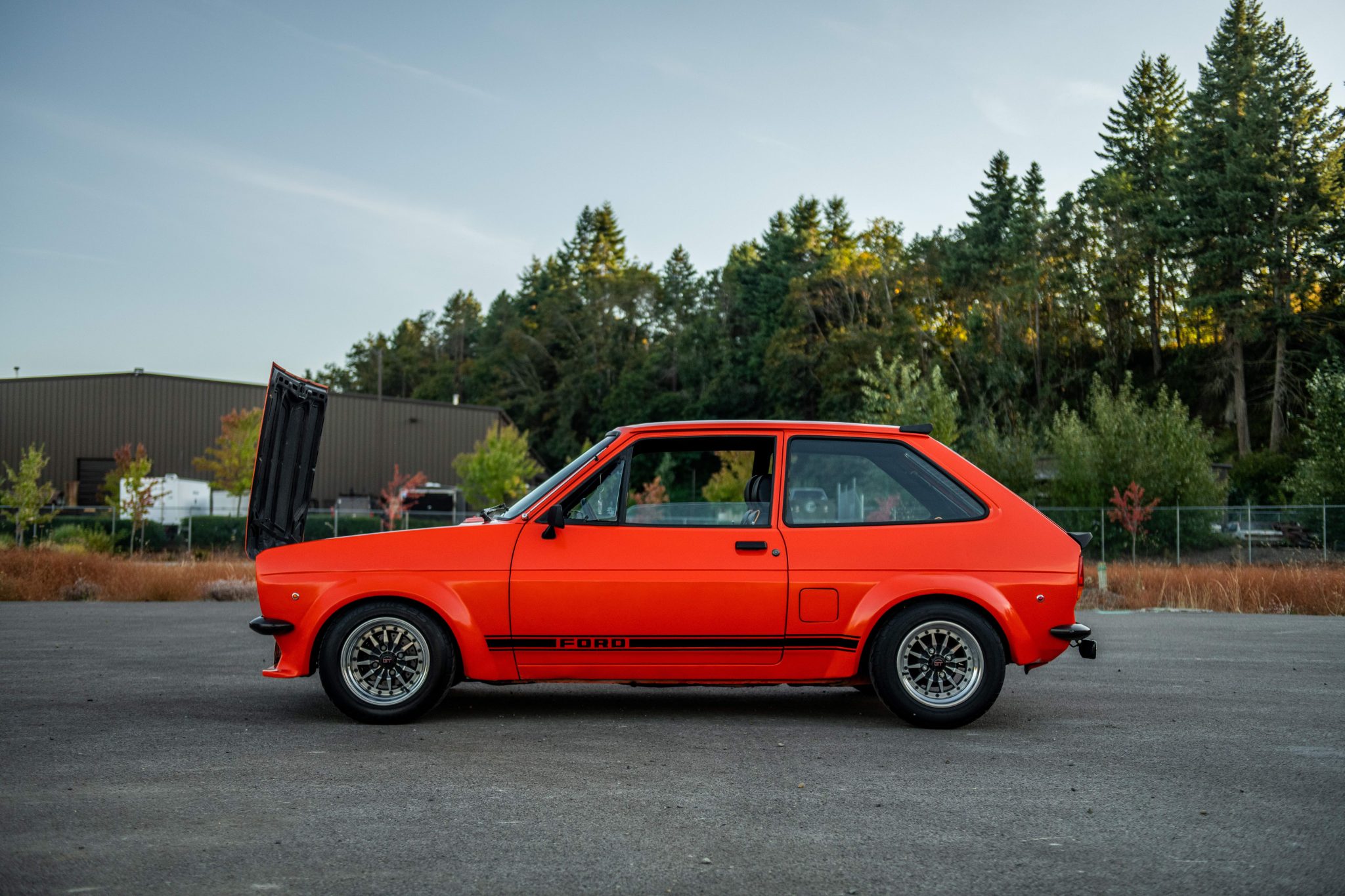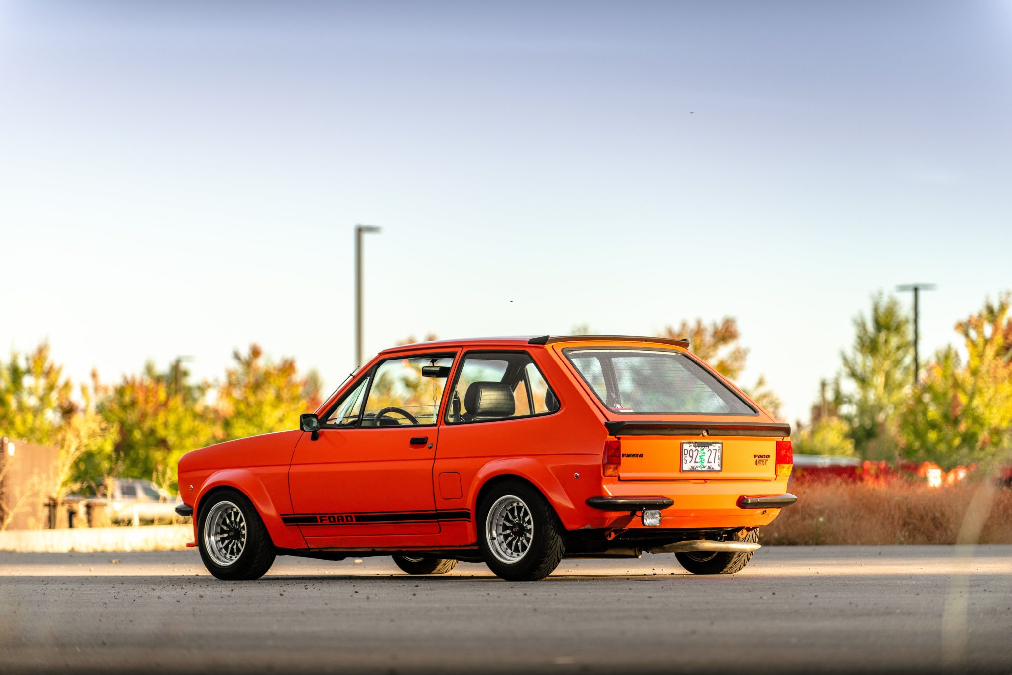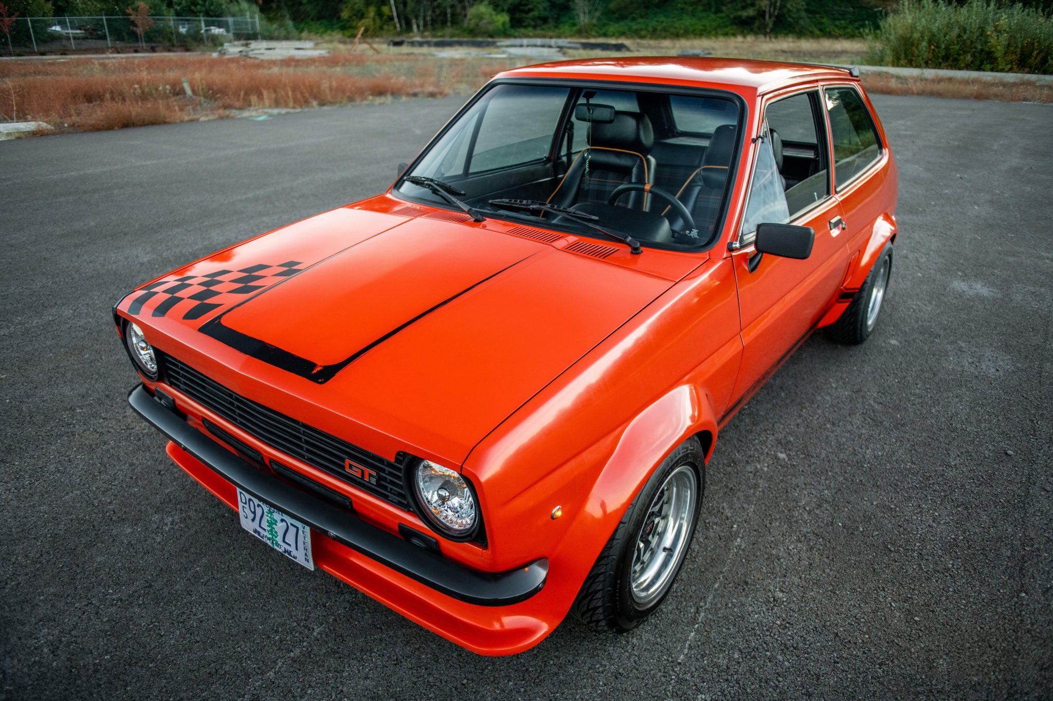 Multi-piece 13” Compomotive T300 wheels feature GT-branded center caps and are mounted with 185/60 Federal Super Steel 565 tires at all four corners. Stopping power is provided by front discs with cross-drilled rotors and rear drums, and the car rides approximately 50mm lower than stock on Outlaw Motorsports lowering springs and Spax shocks at all four corners. An adjustable panhard bar has been installed, and the seller notes that a set of uninstalled polyurethane suspension bushings will accompany the vehicle.