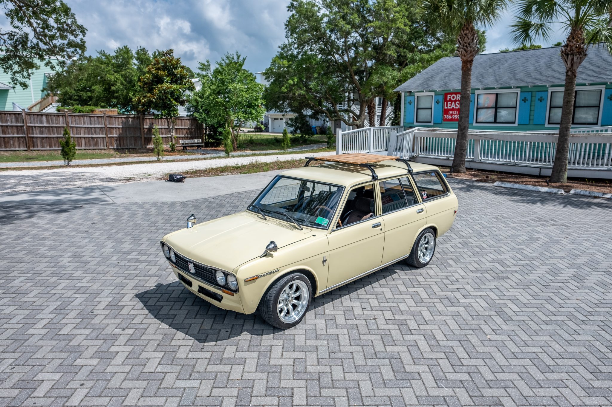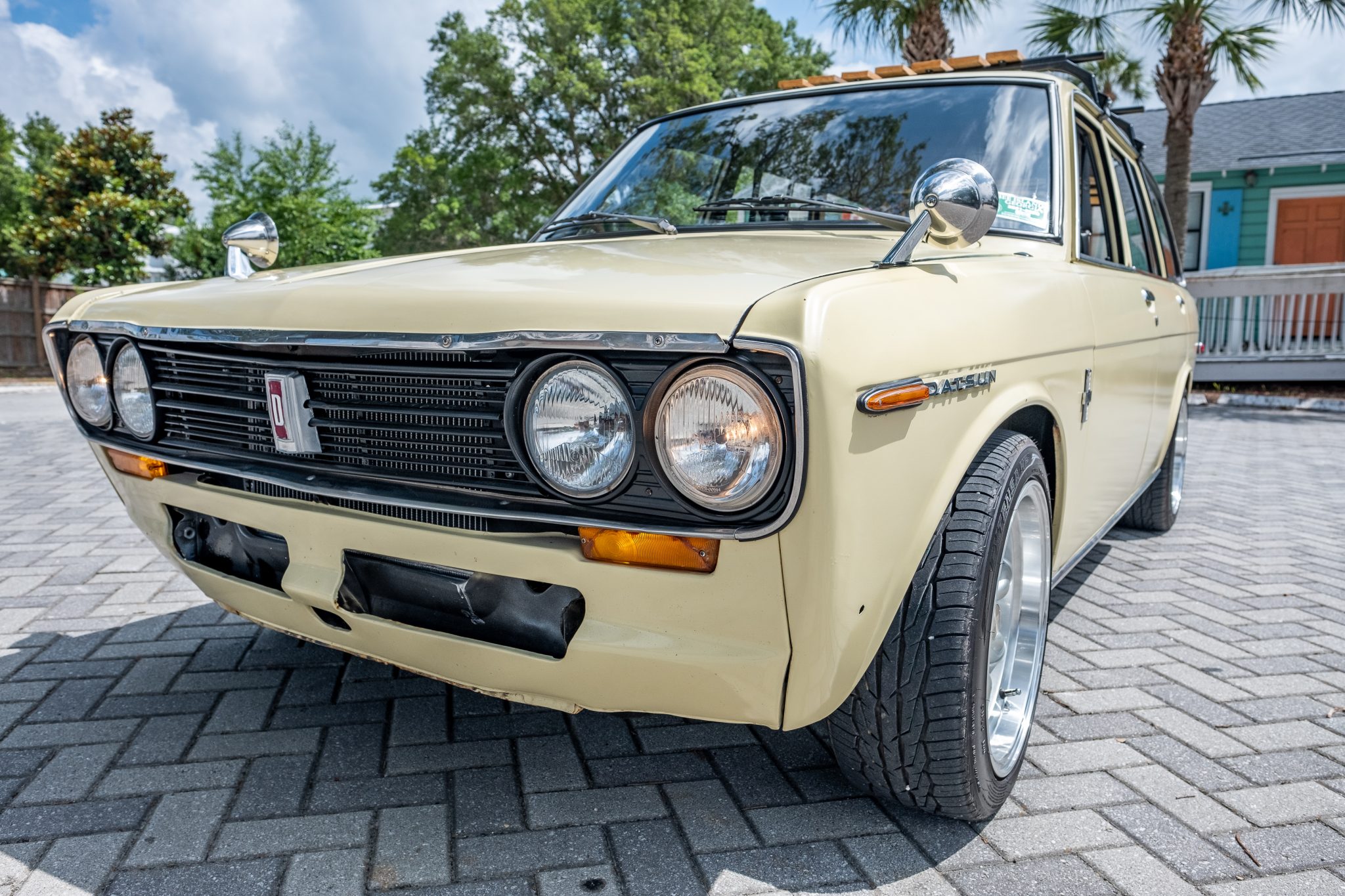 Polished 15″ Konig wheels are mounted with Toyo Extensa HP tires that measure 195/45 and show 2020 date codes. Disc brakes are utilized up front, with finned drums in the rear. The seller states that the suspension has been modified with 280ZX front coilovers and 3″ lowering blocks in the rear, and work in 2021 included replacing the front brake calipers, pads, rotors, and hoses as well as the rear wheel cylinders, parking-brake cable, tie-rod assemblies, suspension bushings, drag link, ball joints, and idler arm.