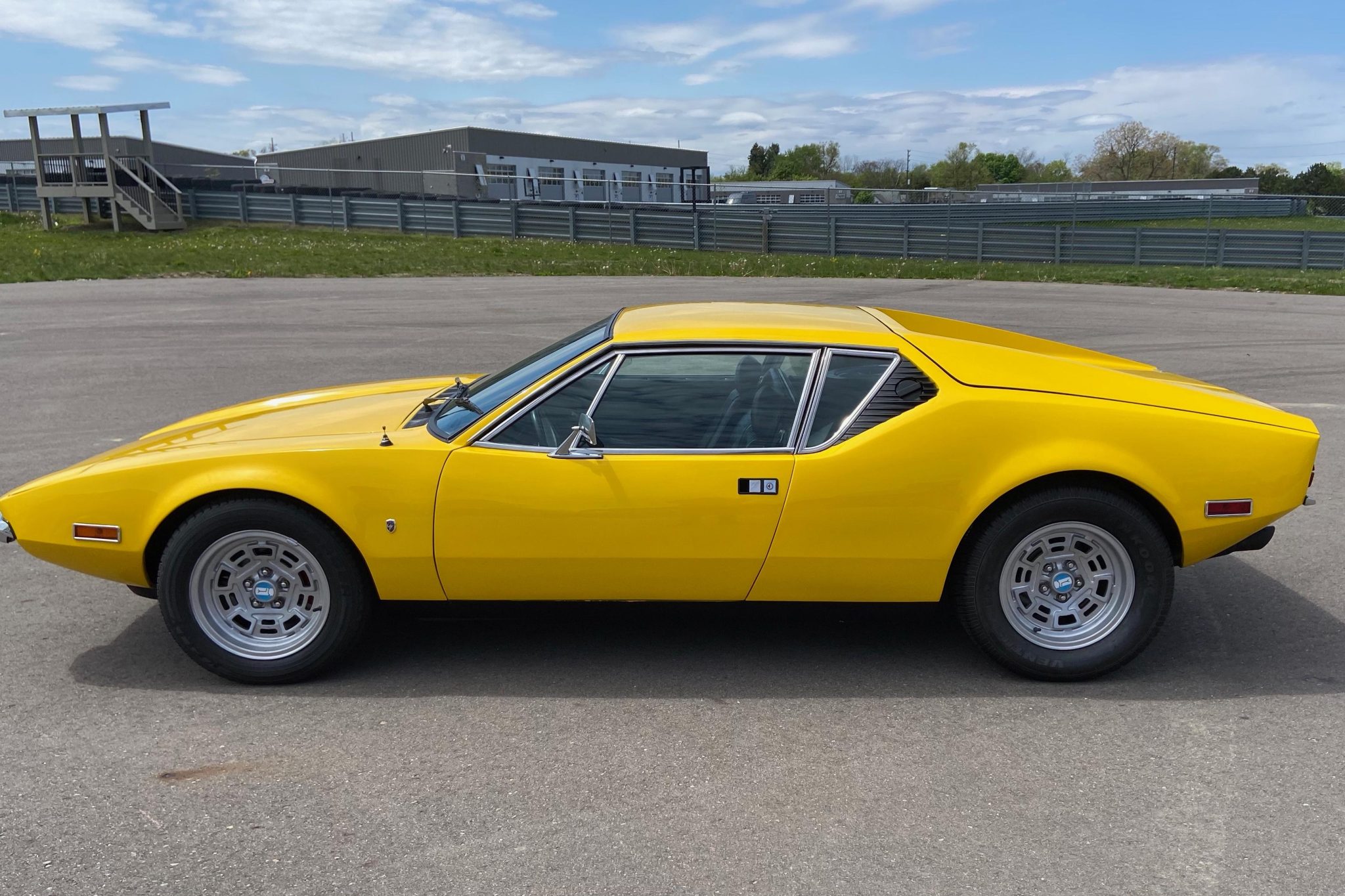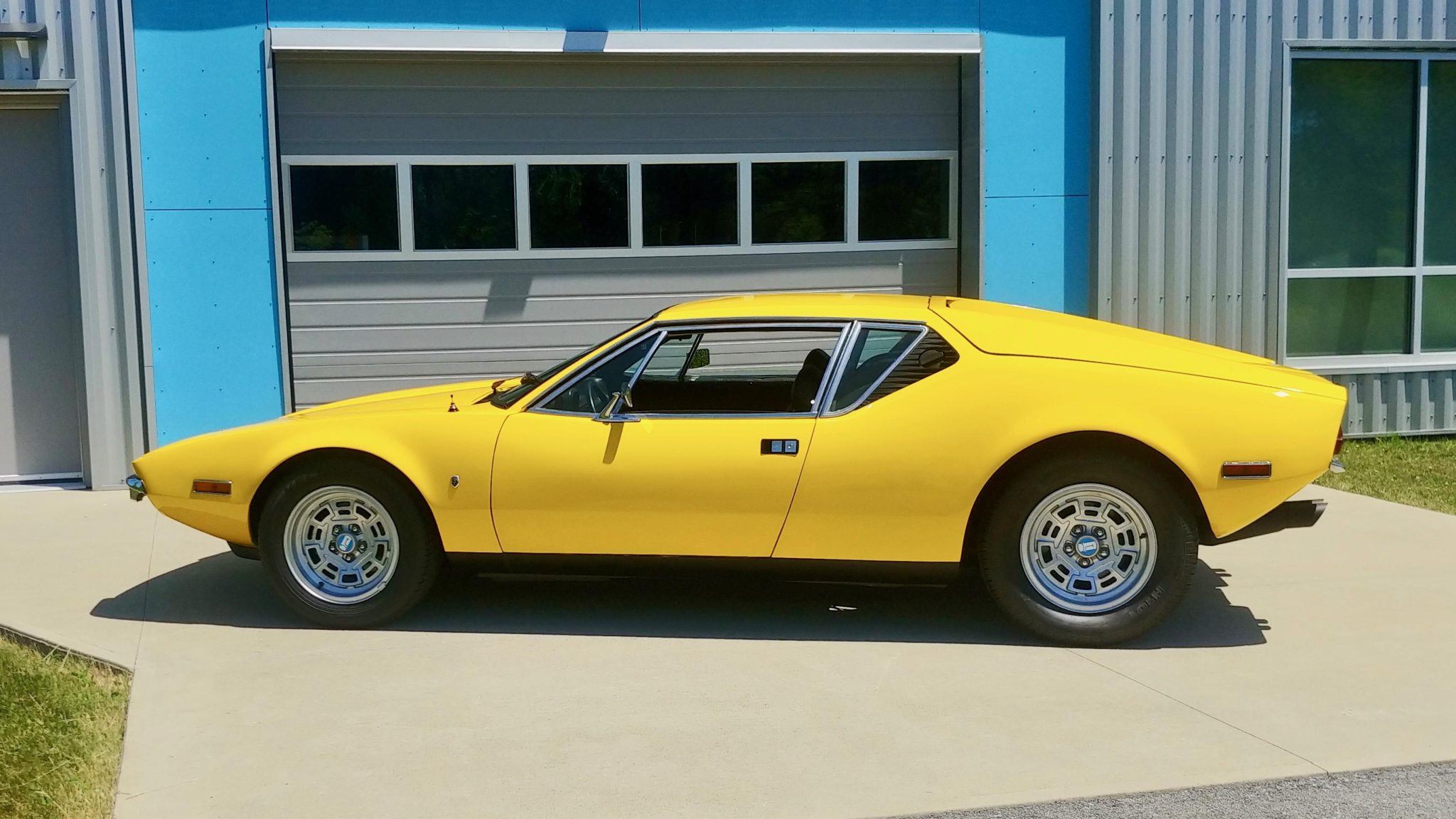 Campagnolo 15″ wheels with DeTomaso center caps are mounted with a mix of staggered-width Hankook and Kelly tires, and a spare tire and wheel are located in the front trunk. Braking is handled by power-assisted discs at each corner.