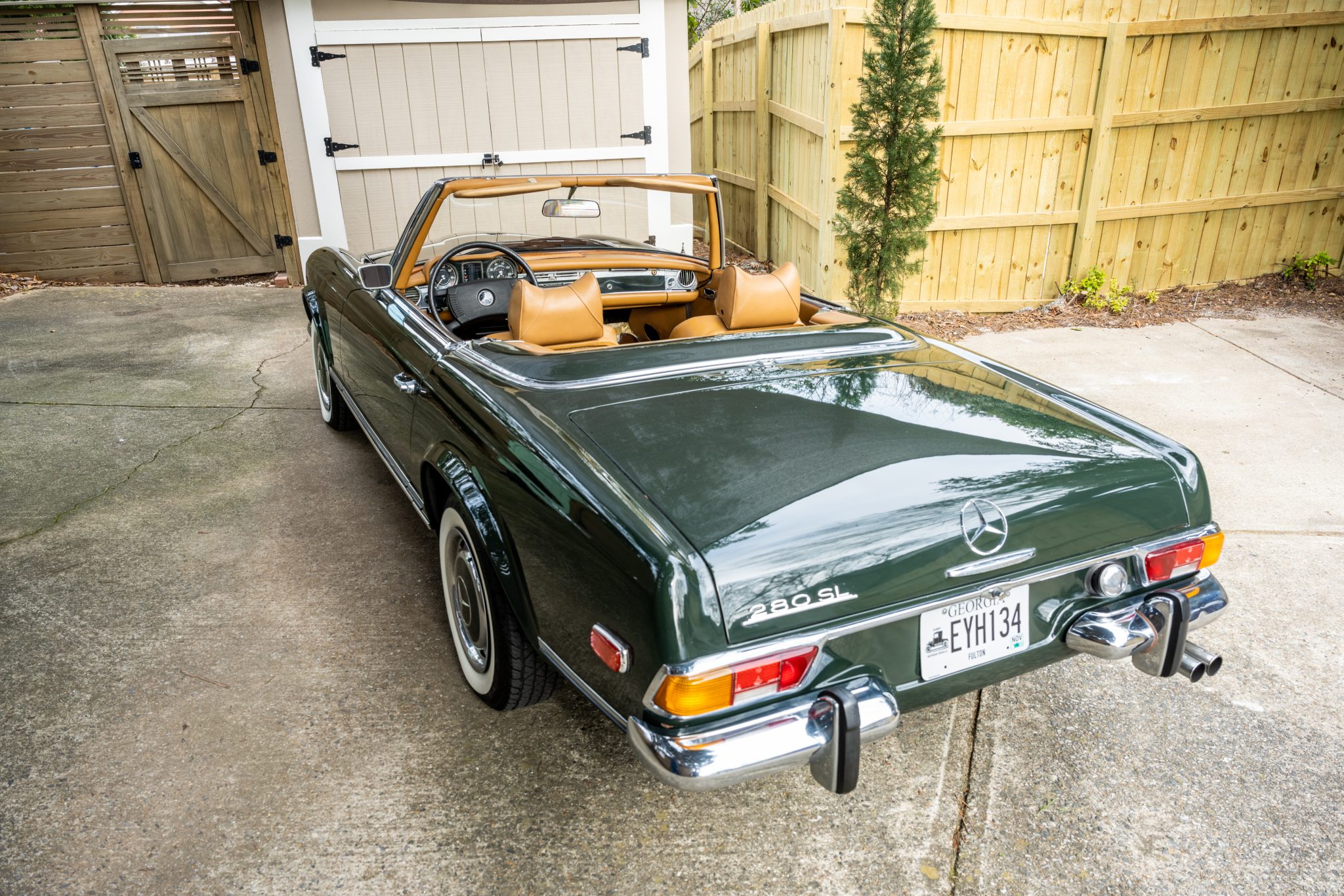 Factory 14″ steel wheels wear full wheel covers with body-color center sections, and they are mounted with 185/70 BFGoodrich Silvertown Radial wide-whitewall tires that show 2019 date codes. The car is equipped with power steering, and the seller states that the braking system was serviced in 2019 when the master cylinder and four calipers and pads were replaced.