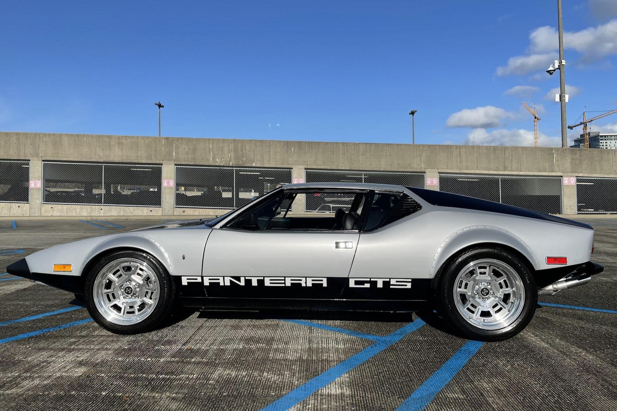 Polished 17″ Campagnolo-style aluminum wheels are mounted with Michelin Pilot Sport tires measuring 235/45 up front and 335/35 out back. Braking upgrades consist of Baer front calipers and a larger-than-stock booster along with cross-drilled and slotted rotors all around.