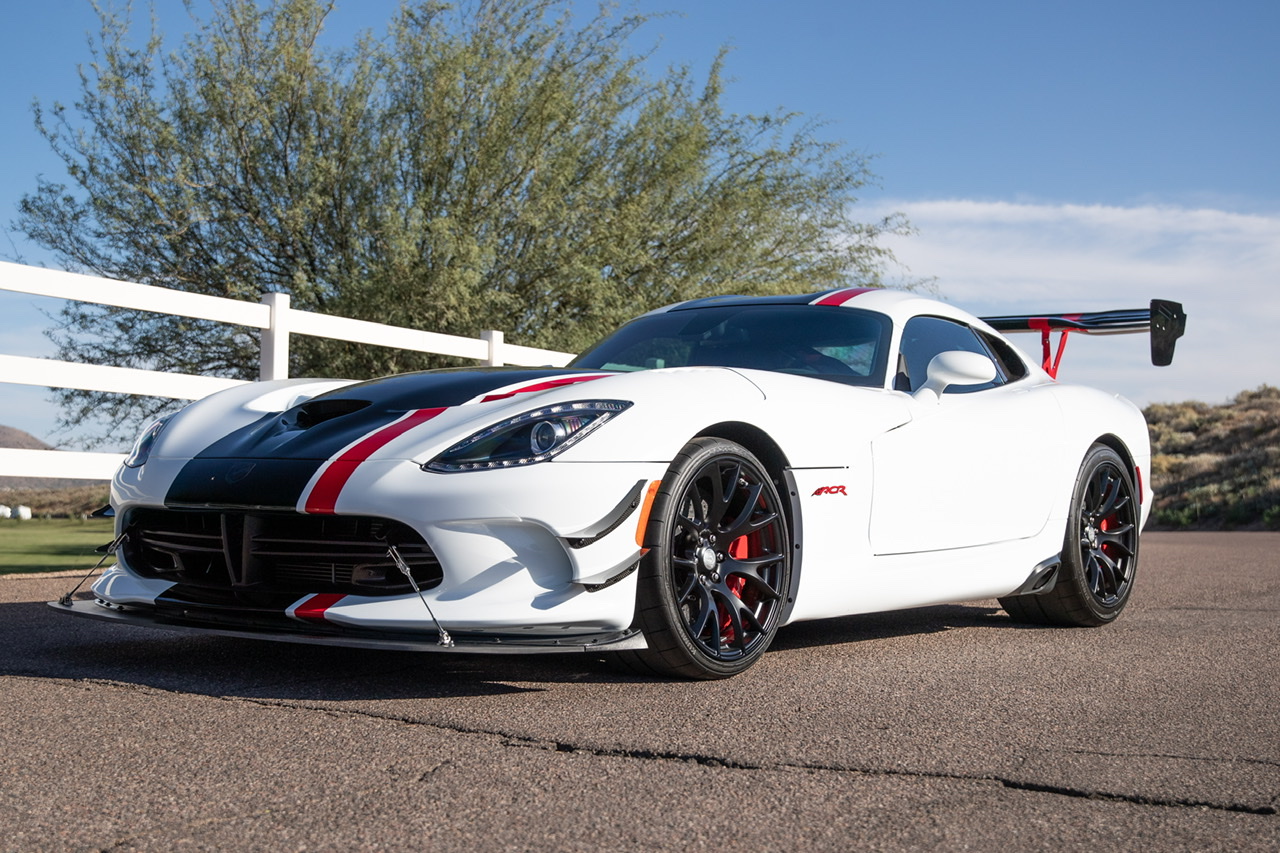 Gloss-black 19″ ACR wheels measure 11″ wide up front and 13″ out back, and they are mounted with 295/25 and 355/30 Kumho Ecsta V720 ACR tires, respectively. Braking is provided by red Viper-branded Brembo calipers paired with carbon-ceramic rotors, and the ACR Package includes a ten-way-adjustable suspension system.