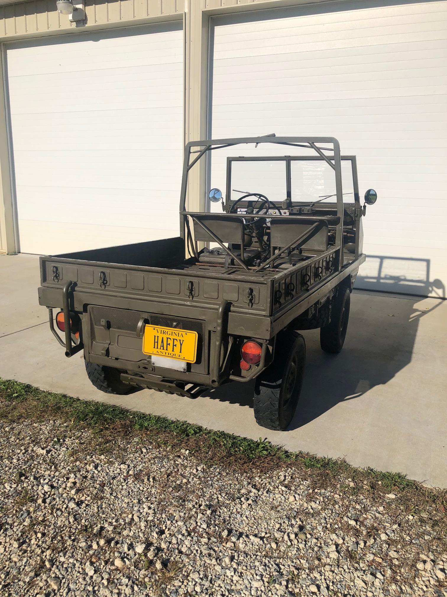 Body-colored steel wheels are mounted with Maloya tires, and a spare is housed under the right side of the bed. The truck features an independent suspension with front and rear portal axles allowing for off-road travel and clearance.