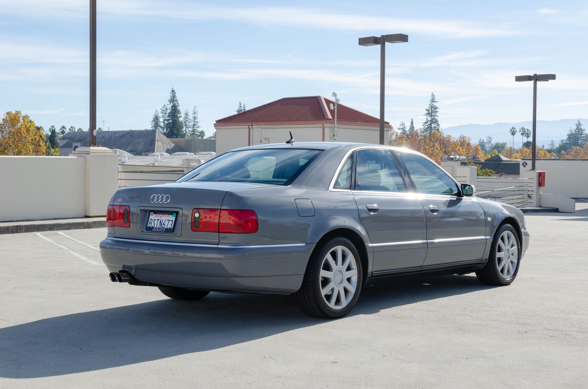 The car is equipped with nine-spoke 18″ wheels that wear 245/45 Michelin Pilot Sport A/S 3+ tires. Braking is provided by power-assisted and ventilated disc brakes at each corner, and the seller notes that the brake pads were replaced in April 2021 with EBC Yellowstuff Performance Brake Pads. Bilstein dampers were reportedly installed in December 2020 along with replacement front control arms, tie rod ends, and sway bar end links.