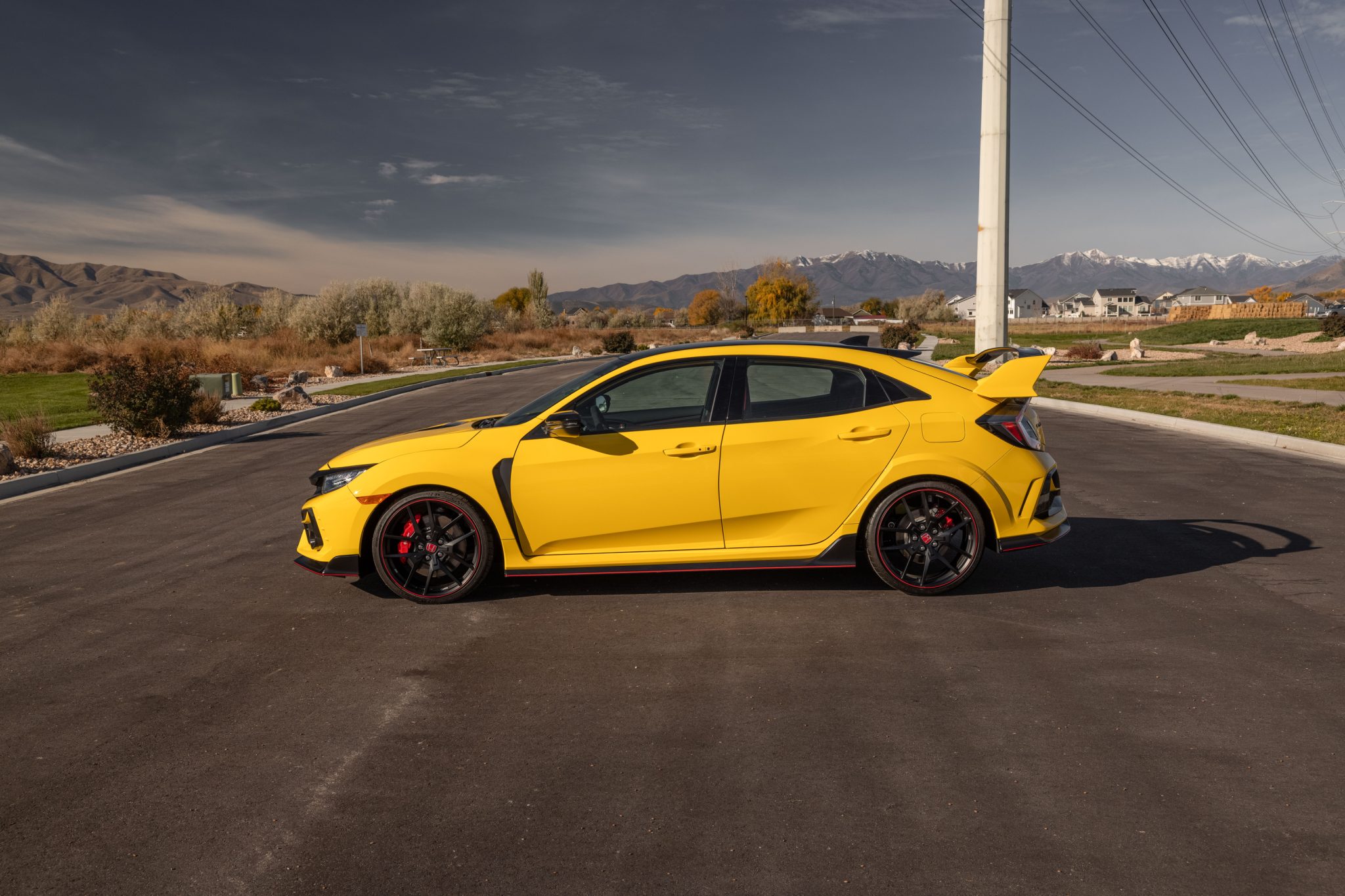 The 20″ forged BBS wheels are finished in matte black and are mounted with 245/30 Michelin Pilot Sport Cup 2 tires. The Type R suspension features stiffer springs, bushings, and anti-roll bars compared to the base Civic, while the suspension and steering systems were recalibrated for the Limited Edition. Braking is handled by four-wheel disc brakes with red-painted Brembo four-piston calipers up front.