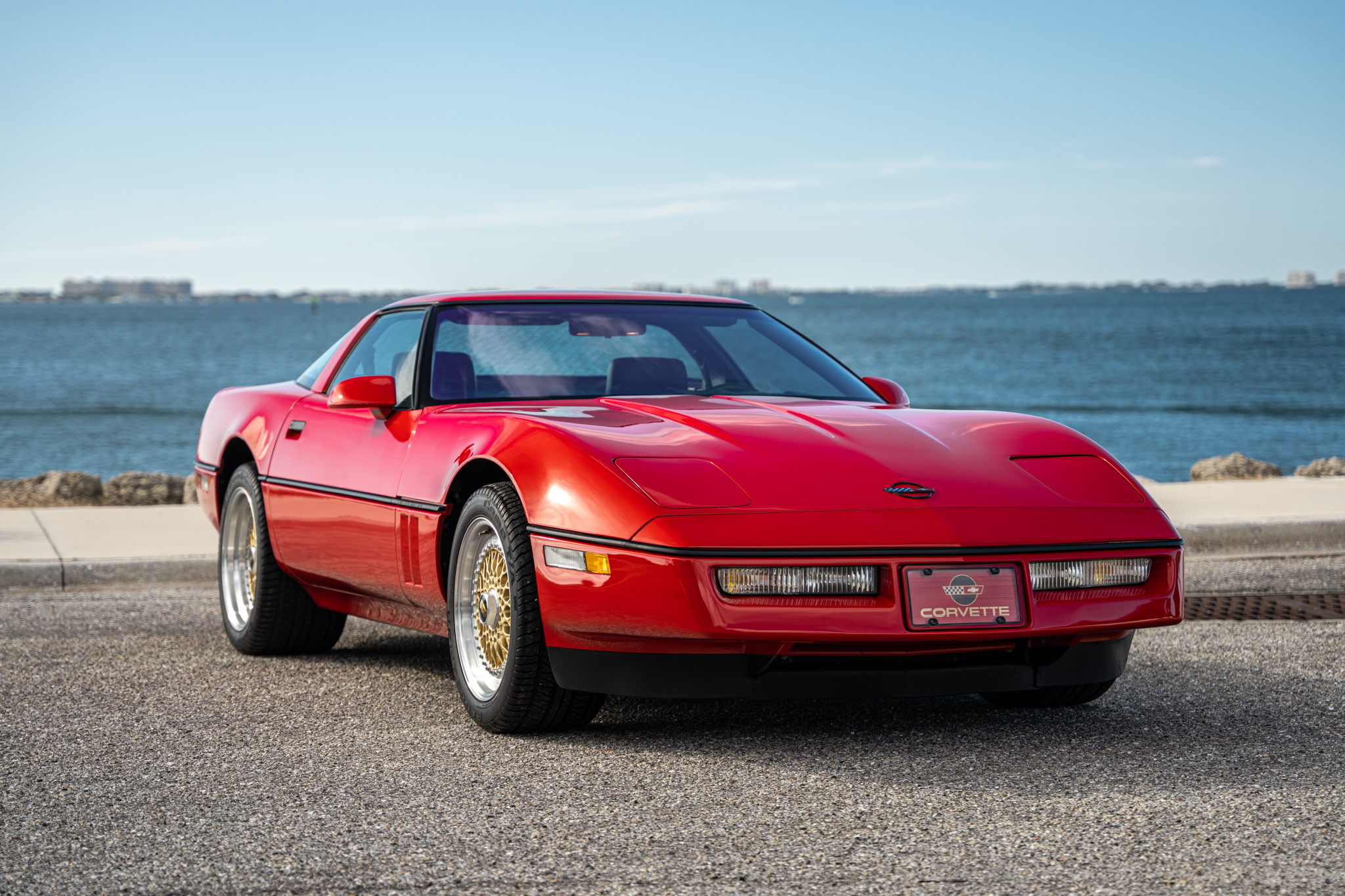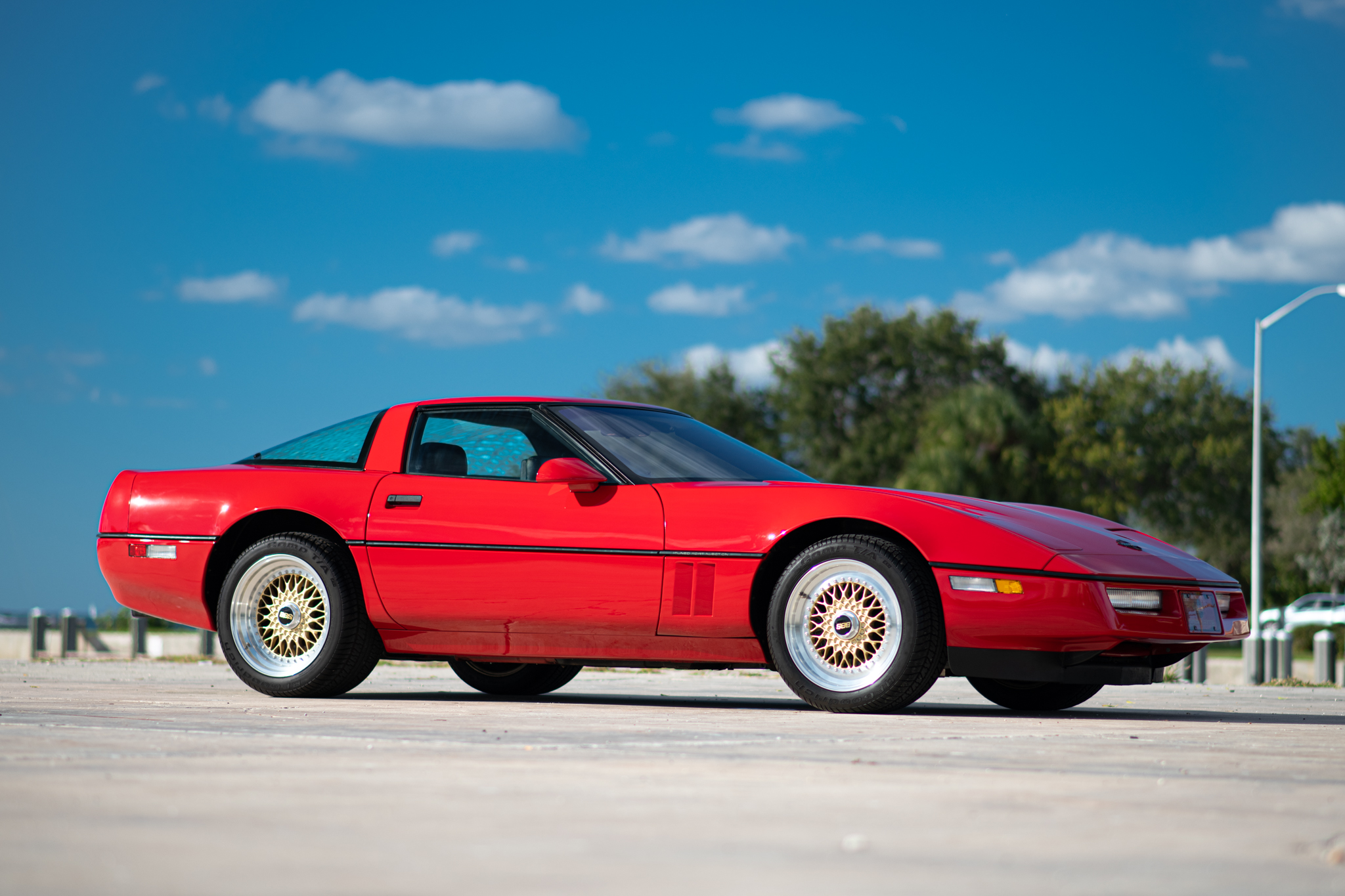 Multi–piece 17″ BBS RS wheels with gold centers are mounted with 275/40 front and 315/35 rear BFGoodrich Comp T/A tires. ZR-1 equipment includes the Performance Handling Package as well as the FX3 Selective Ride and Handling package, which added electronically adjustable Bilstein shock absorbers. Stopping power is provided by four-wheel anti-lock disc brakes.