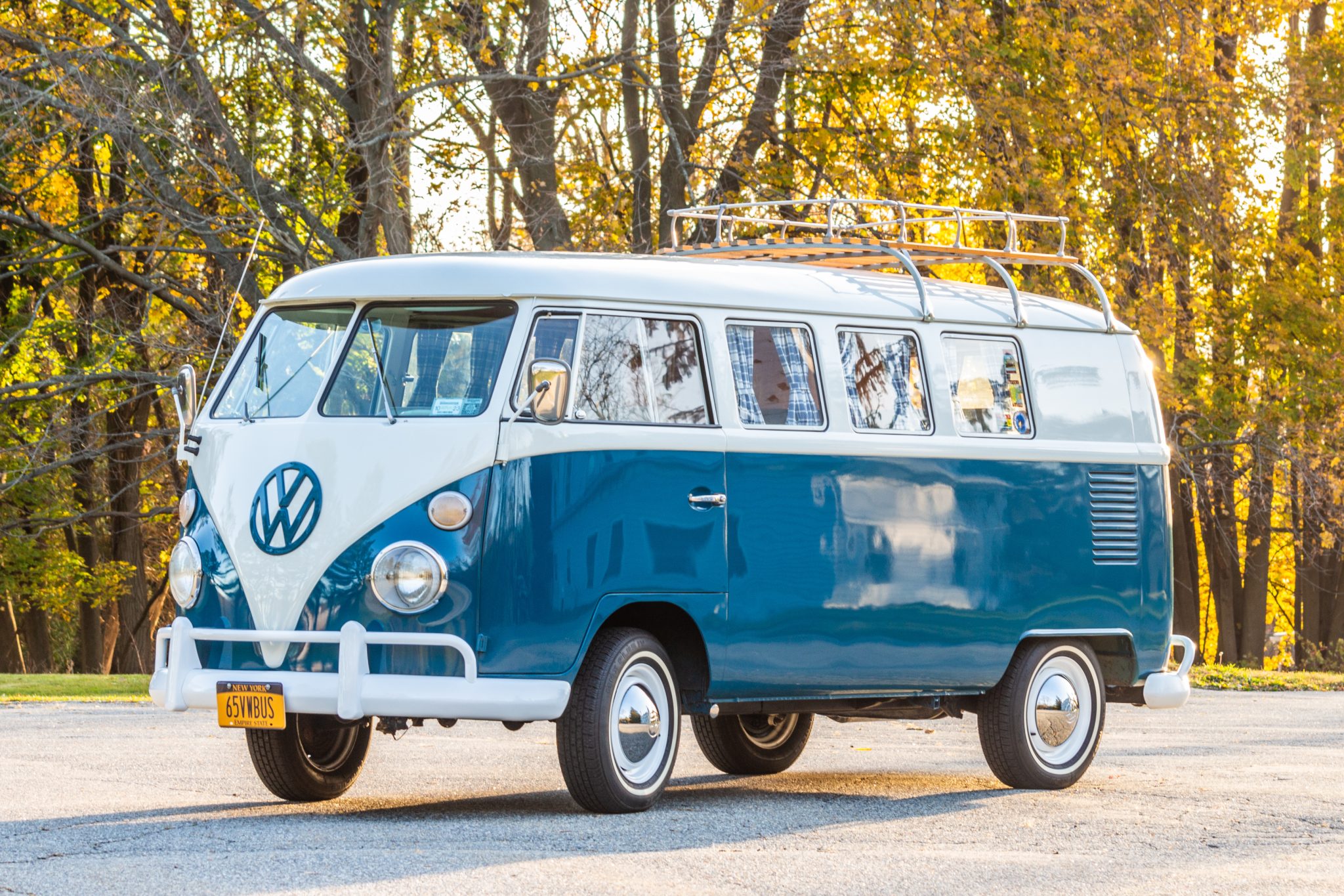 White-painted 15” steel wheels were powder coated under current ownership and feature chrome VW-branded hubcaps as well as thin whitewall tires. The drag link, control arms, and tie rods are said to have been replaced in 2017.
