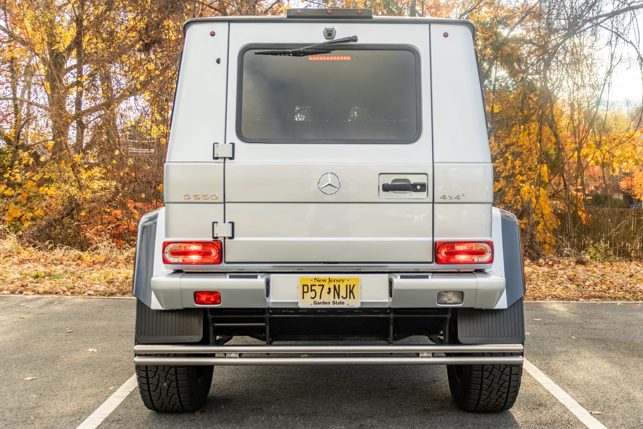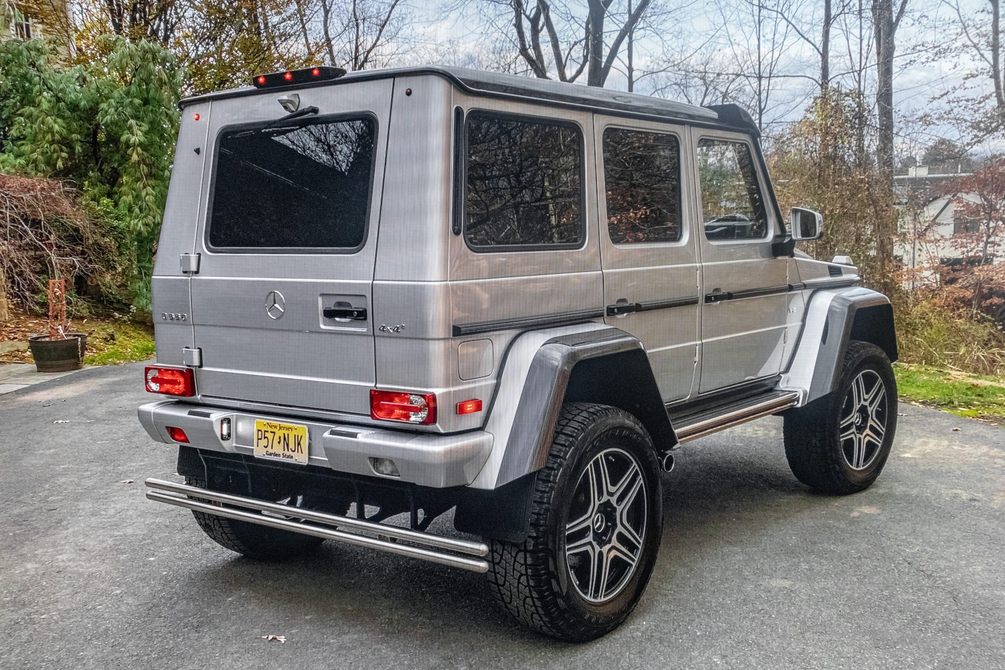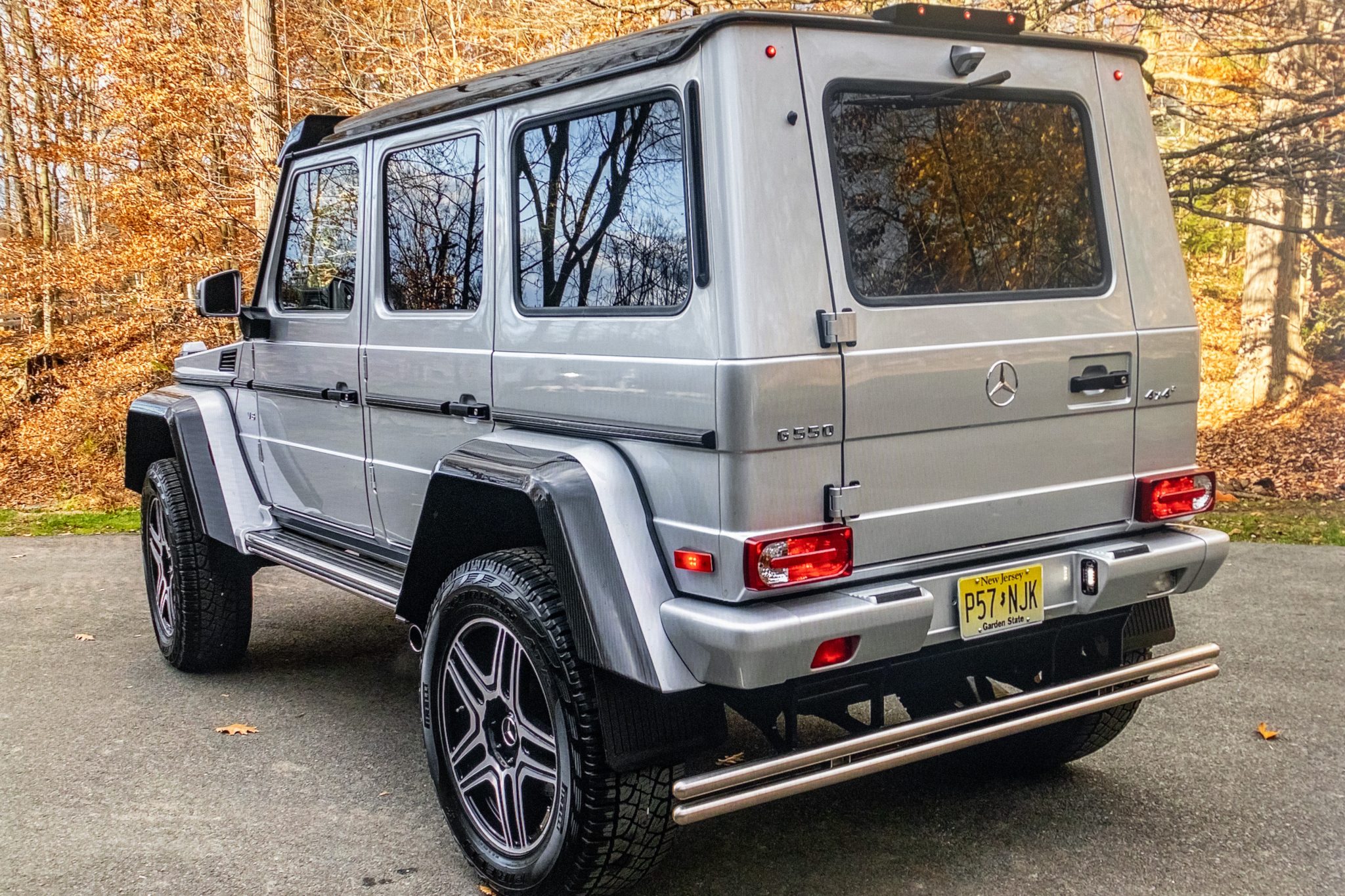 Factory 22″ alloy wheels are each held in place by eight bolts and are mounted with 325/55 Pirelli Scorpion ATR tires. Braking is handled by cross-drilled rotors and red six-piston front calipers. G550 4×4² models feature two parallel coilovers and portal axles on each corner, which help yield 17.7″ of ground clearance.