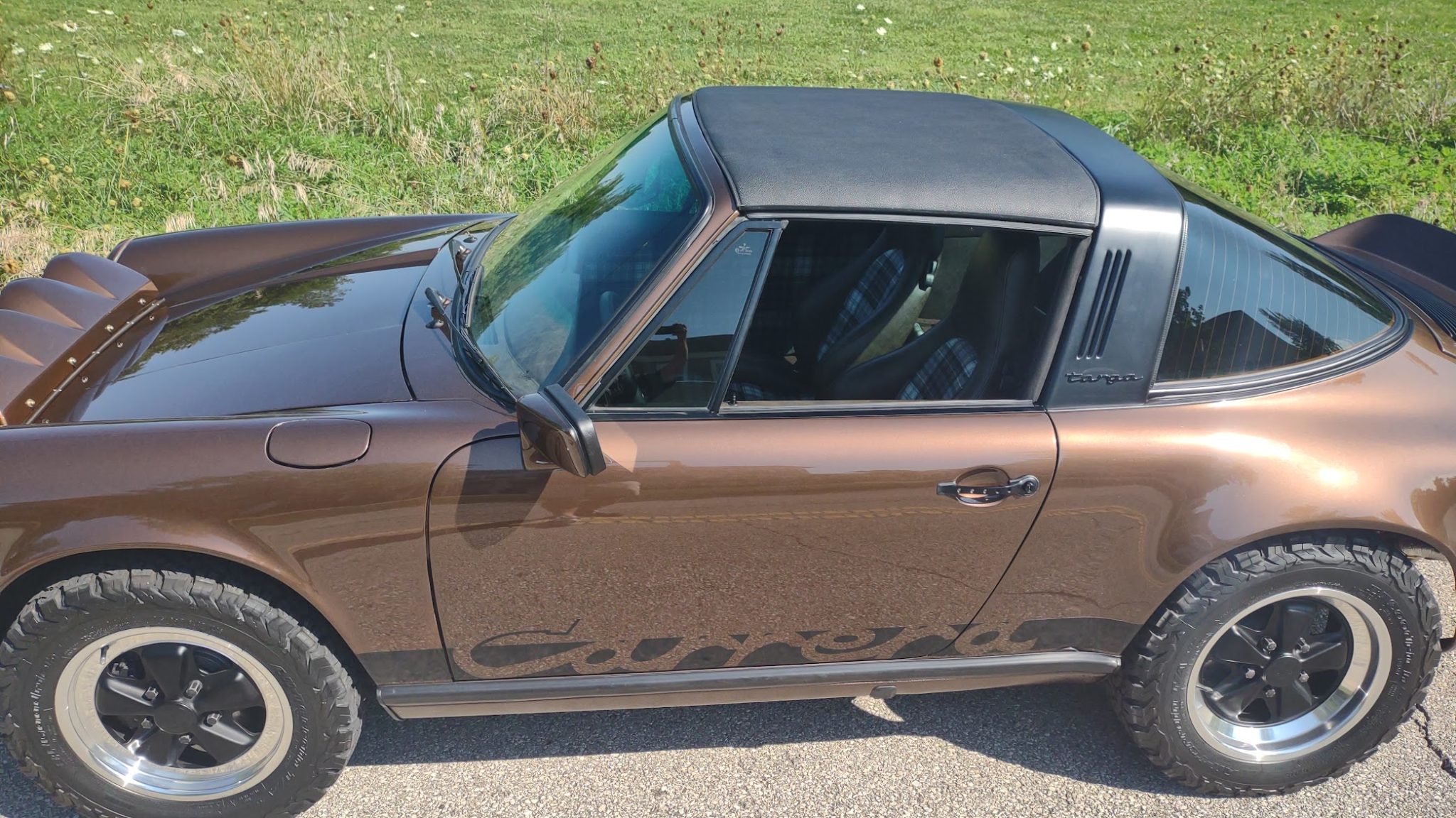 16″ Fuchs wheels were refinished in December 2020 and are wrapped in 215/65 BFGoodrich All-Terrain KO2 tires. Braking is from 986 Boxster calipers, cross-drilled rotors, and a 911 Turbo master cylinder. The suspension has reportedly been modified with the following: