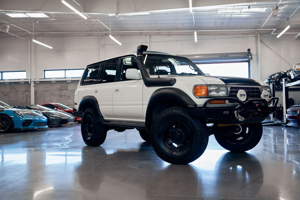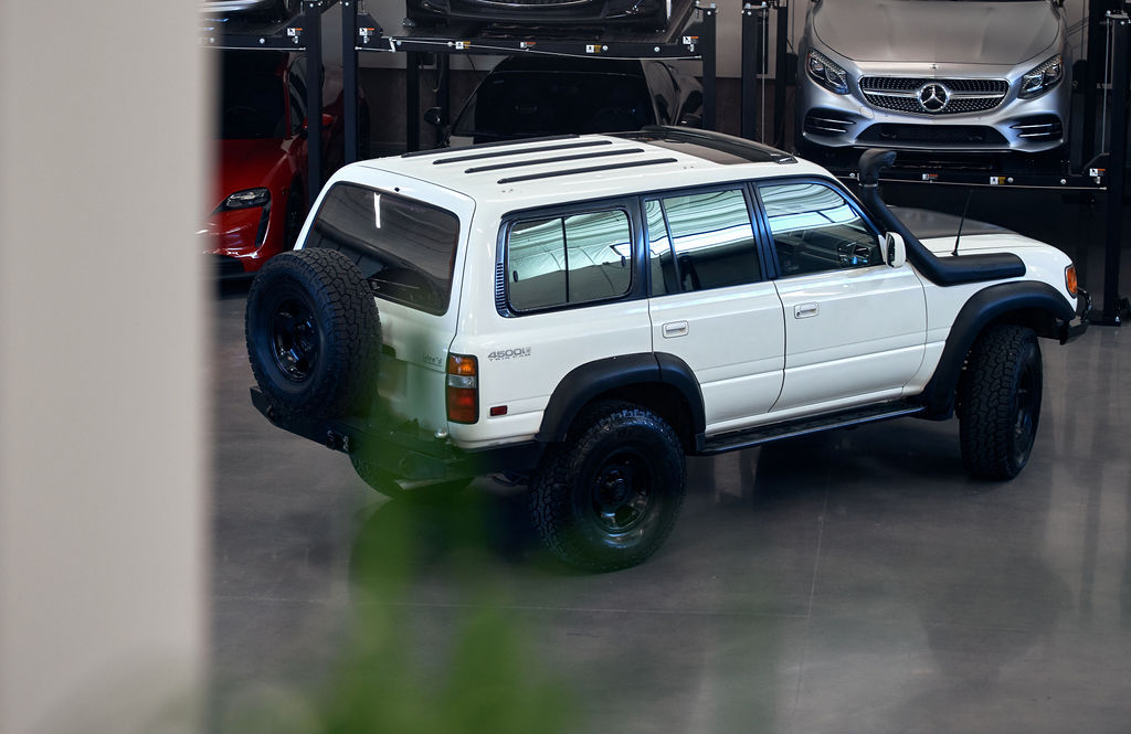 Factory 16″ wheels are finished in black and wear Hankook Dynapro ATM tires measuring 315/75 all-around. The truck has been modified with an Old Man Emu lift kit and steering stabilizer and the seller reports the front axles were rebuilt and the brake rotors and pads were replaced under prior ownership. The seller notes a power steering leak and deterioration in the suspension rubber components.