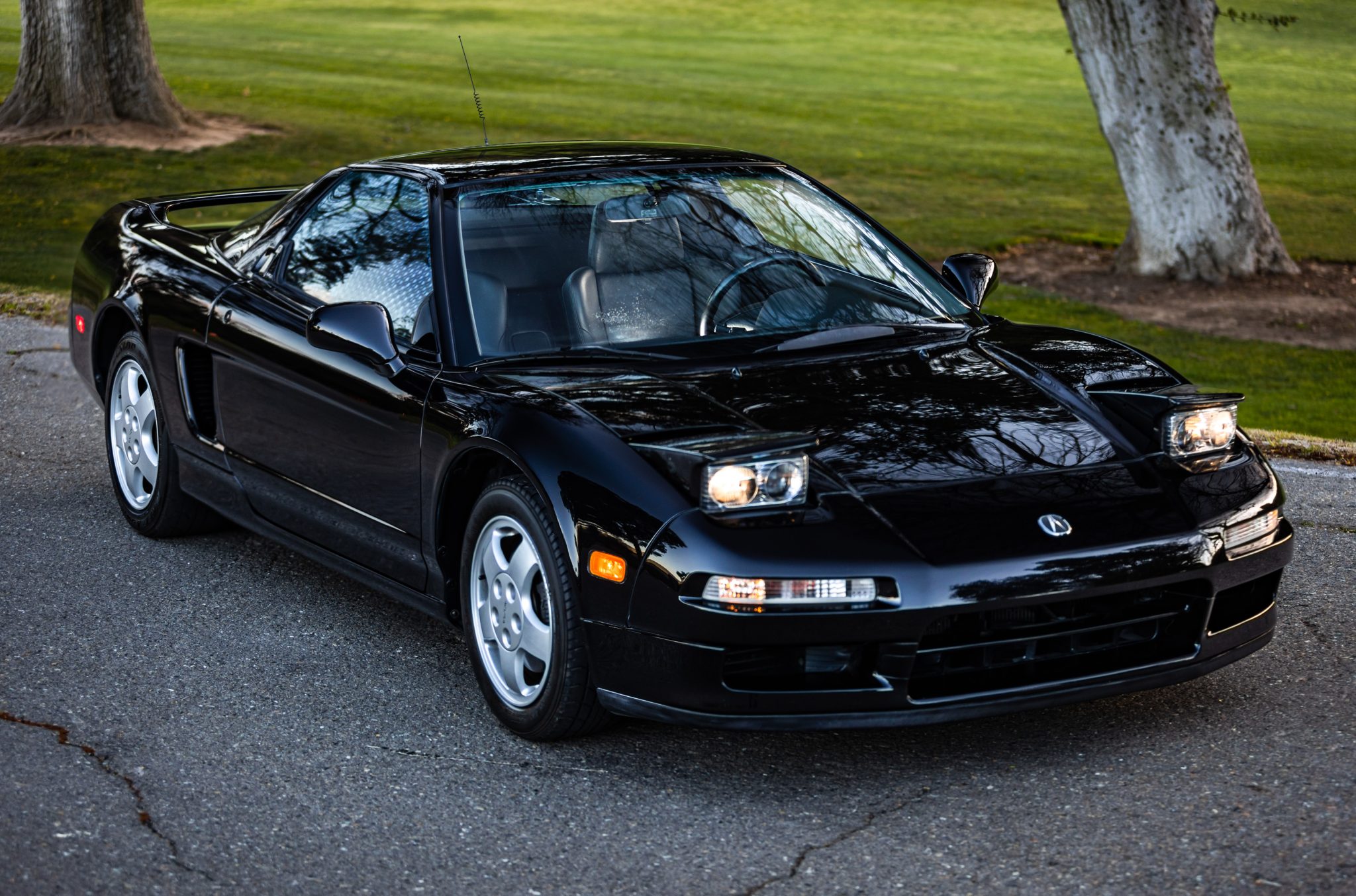 Forged 15″ front and 16″ rear wheels are mounted with 205/50 Yokohama and 225/50 Dunlop tires. The seller notes that the tires should be replaced due to age. Braking is handled by four-wheel anti-lock disc brakes.
