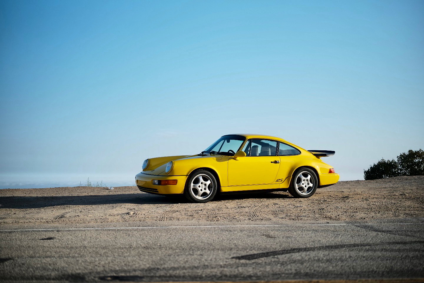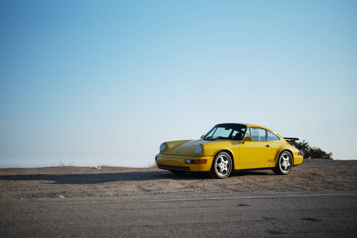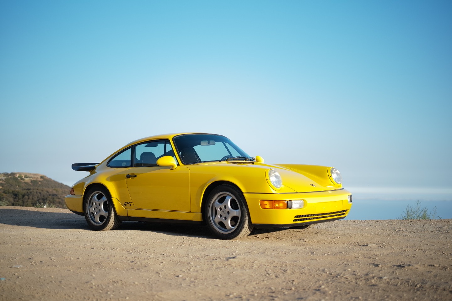 Factory 17” Cup wheels measure 7” in width up front and 8” wide out back and are wrapped in a mixed set of Sumitomo Tour Plus LSW and Pirelli P Zero tires. The RS America was factory equipped with the M030 sport suspension, which utilized components from the contemporary 911 Turbo. Stopping power is provided by Porsche-branded calipers and ventilated discs at all four corners.