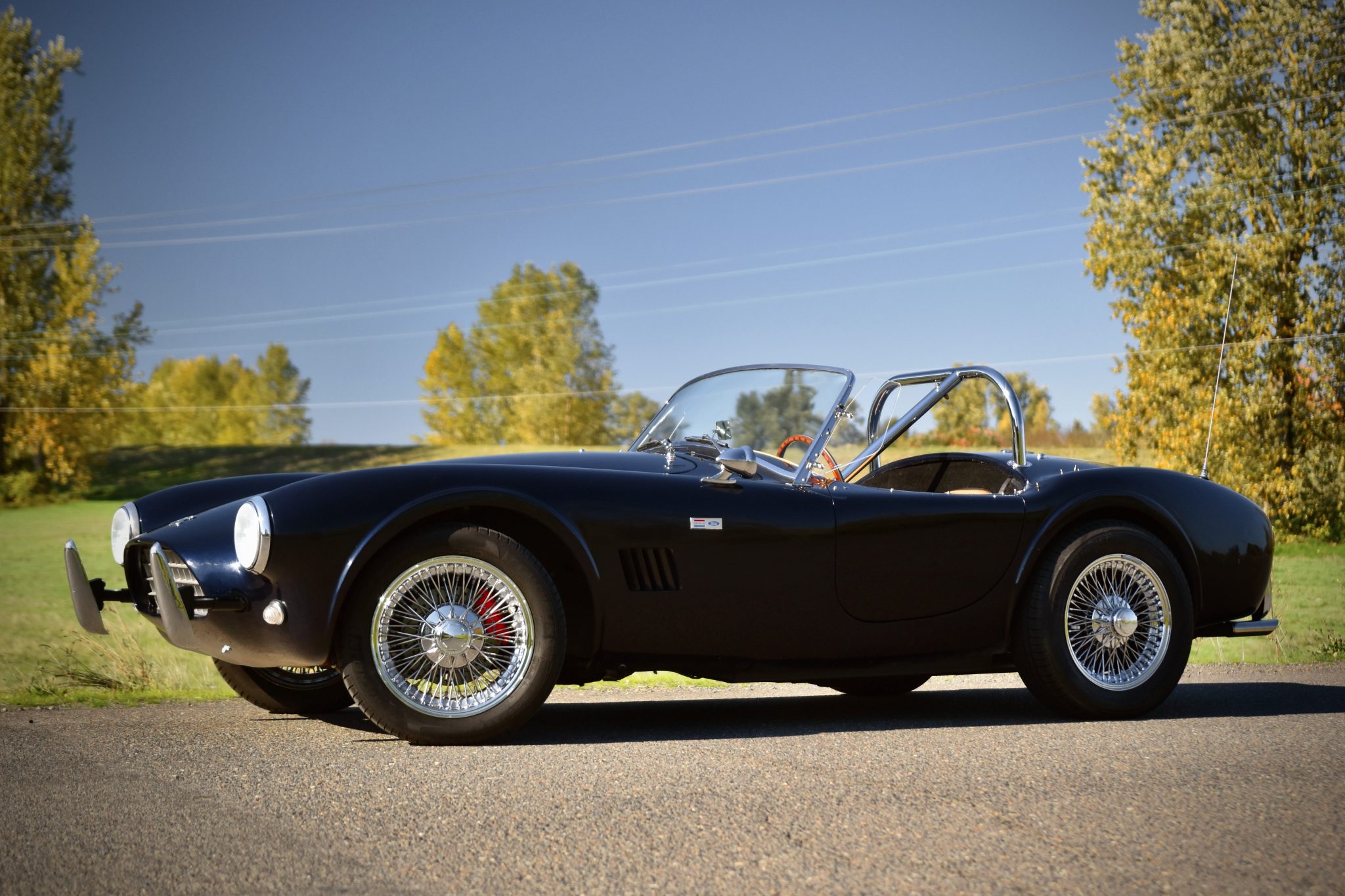 Chrome 15″ knock-off wire wheels wear 205/55 front and 205/65 rear Michelin Primacy HP tires. Stopping power is provided by four-wheel disc brakes that utilize red-finished Wilwood calipers over cross-drilled rotors up front and inboard discs in the rear. The master cylinder is said to have been replaced in 2019.
