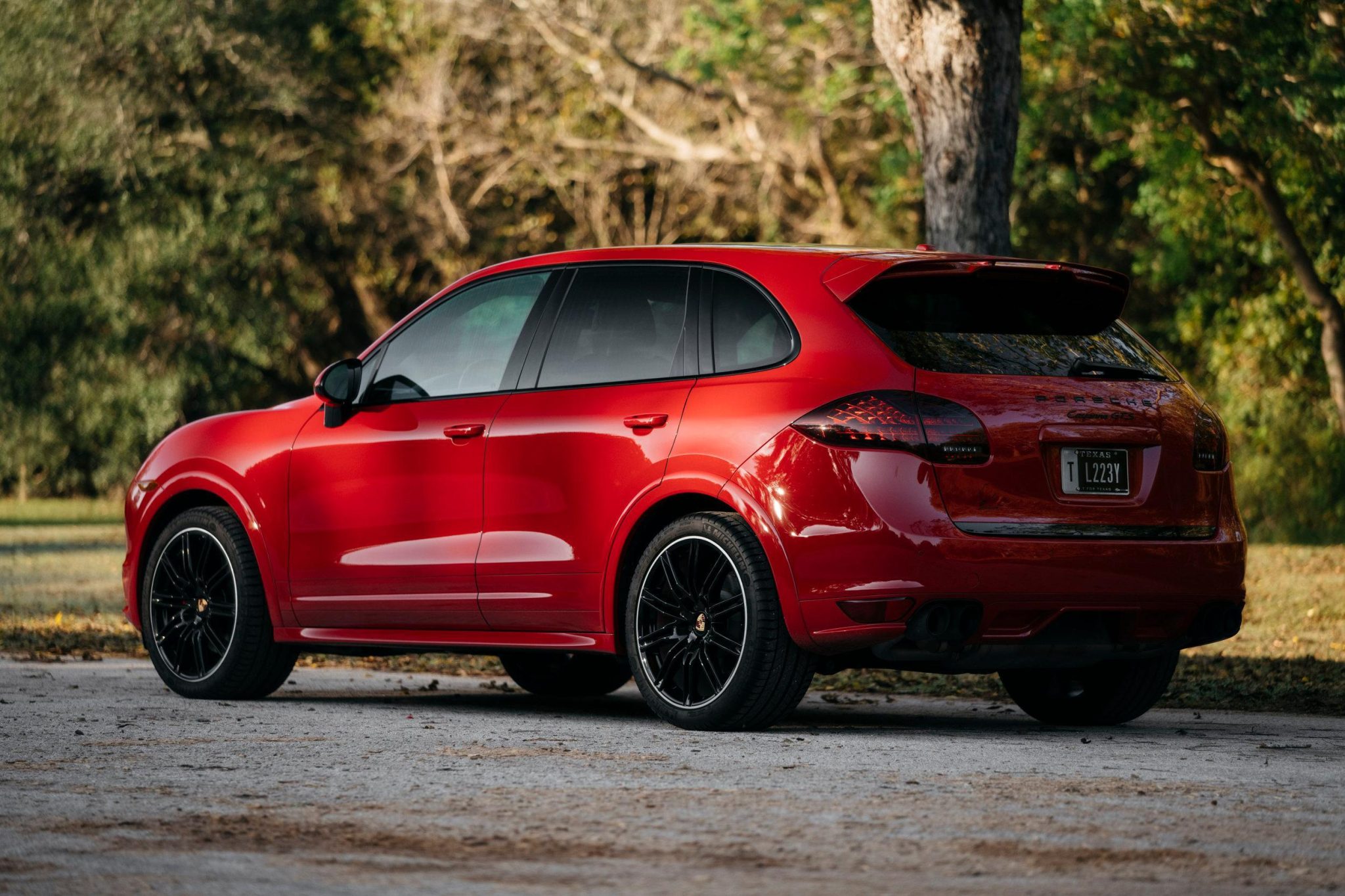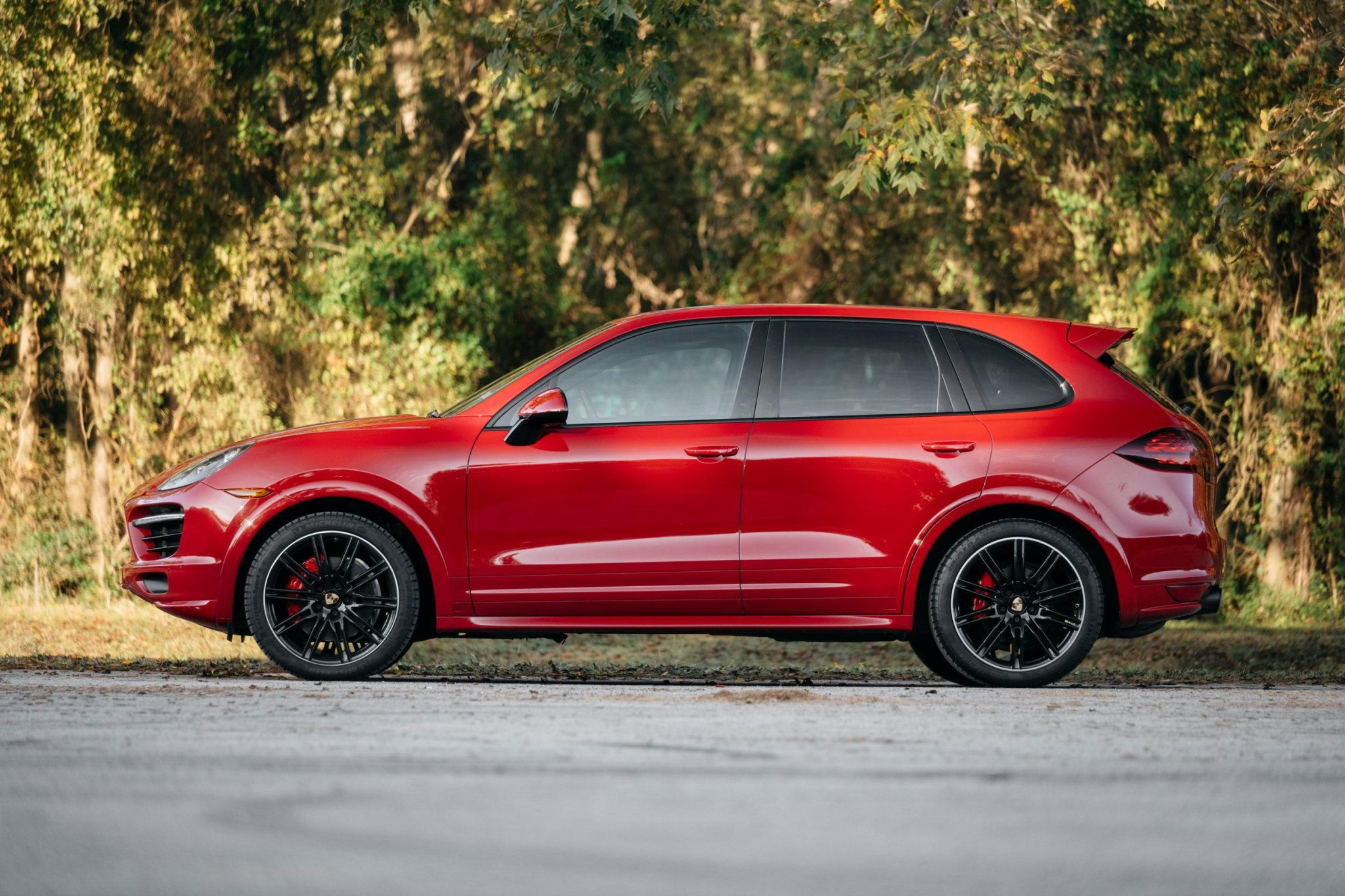 Black 21″ SportEdition wheels are mounted with 295/35 Michelin Latitude Sport 3 tires. The GTS featured a ride height approximately 1″ lower than the contemporary Cayenne S and is equipped with a driver-controllable air suspension system that can be adjusted for both damping and ride height. Braking is handled by red-finished multi-piston calipers and ventilated rotors at all four corners.