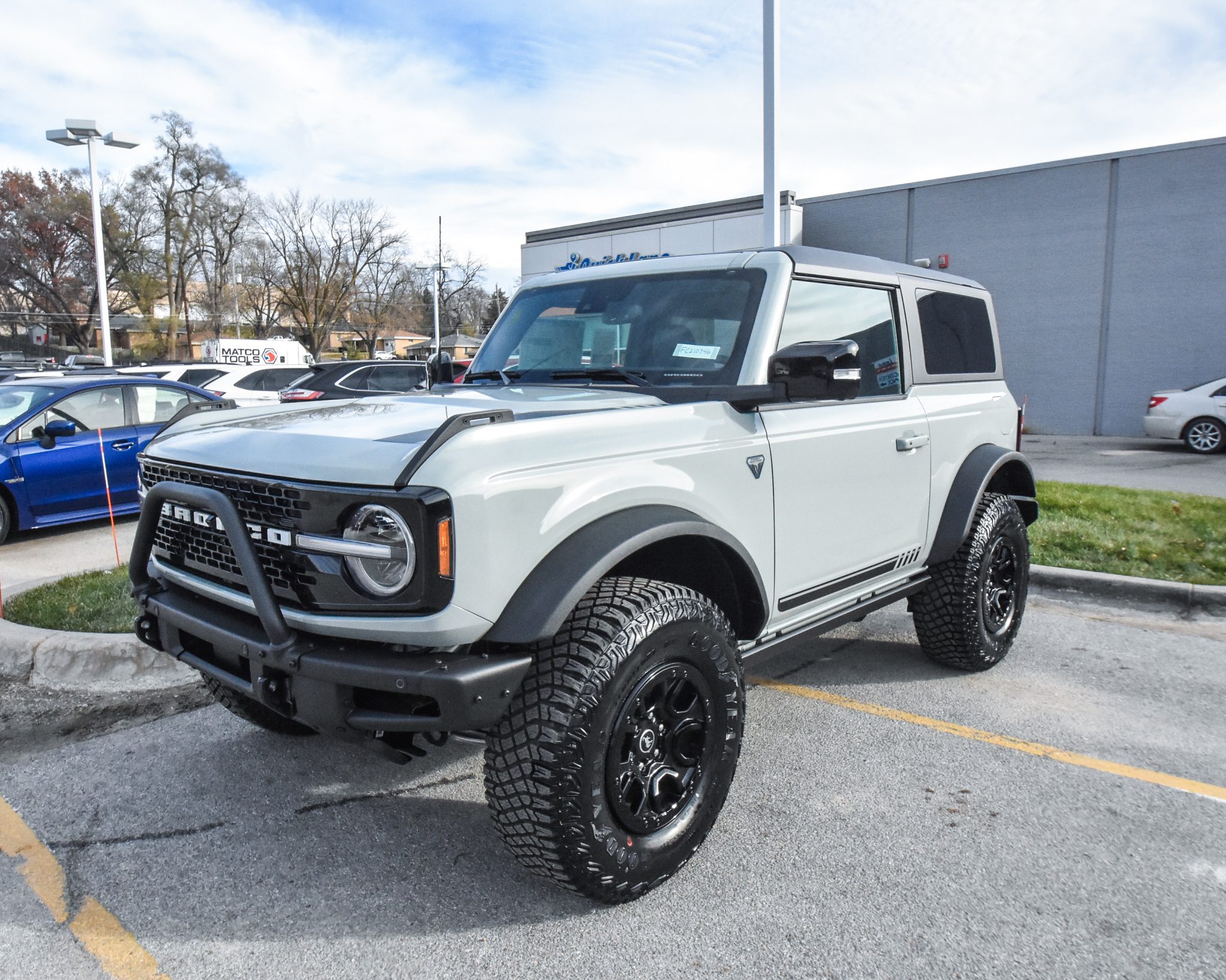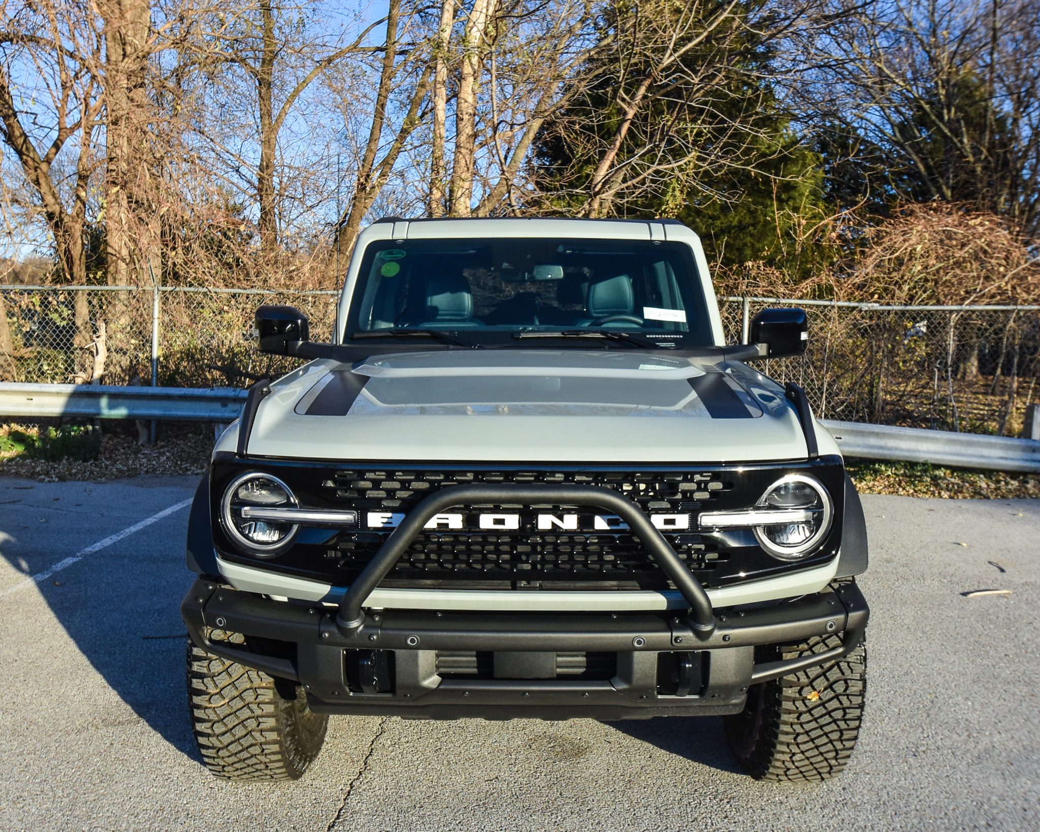 Beadlock-capable 17″ forged aluminum wheels with a black finish are wrapped in 315/70 Goodyear Territory MT tires, and a matching spare is mounted to the swing-out rear carrier. Braking is handled by four-wheel anti-lock discs. The truck is equipped with an electronically-controlled front sway bar, Bilstein monotube shocks, Roll Stability Control, and the Terrain Management System with six selectable “Goes Over Any Type of Terrain” (GOAT) drive modes.