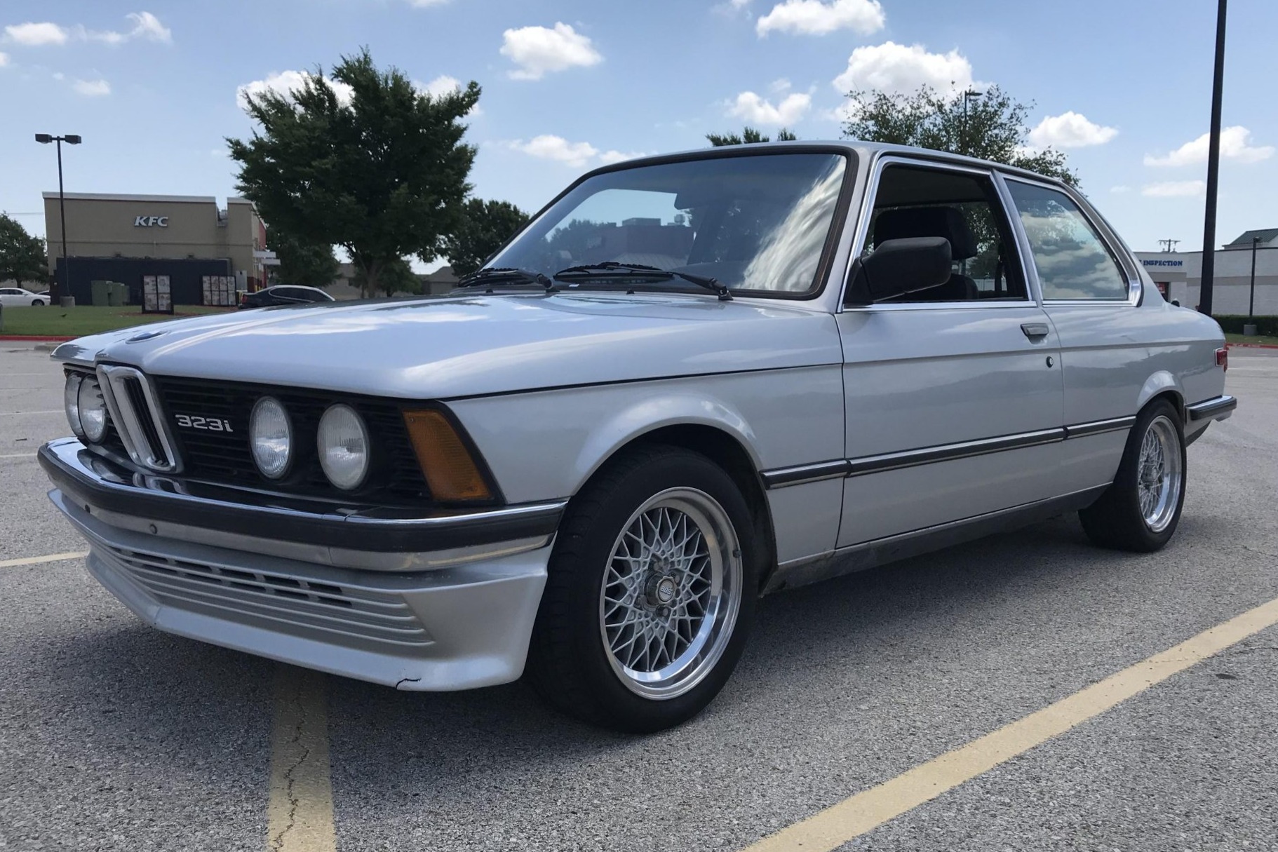 Polished 15″ BBS basketweave wheels wear older Bridgestone Potenza RE71 tires that should be replaced due to sidewall cracking. The front brake pads, rotors, and sensors are said to have been changed under current ownership. A walk-around video is provided by the seller.