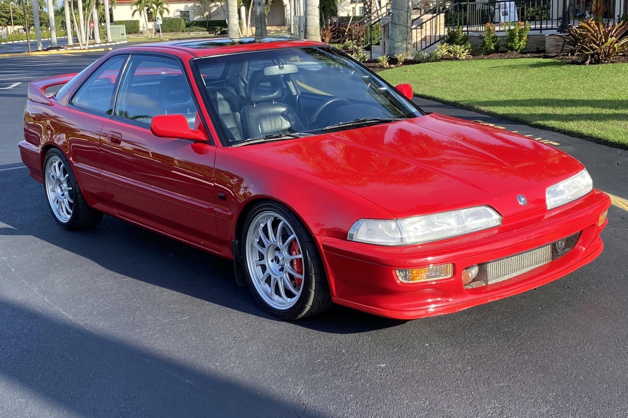 Silver 17″ SSR Type F wheels are mounted with 215/40 Dunlop Direzza Sport Z1 tires. Suspension modifications consist of Tokico Illumina strut assemblies, Suspension Technique sway bars, an Energy Suspension bushing kit, and adjustable spring perches. Stopping power is provided by four-wheel disc brakes, and a StopTech front big brake kit with red four-piston calipers, two-piece slotted rotors, and stainless lines has been installed.