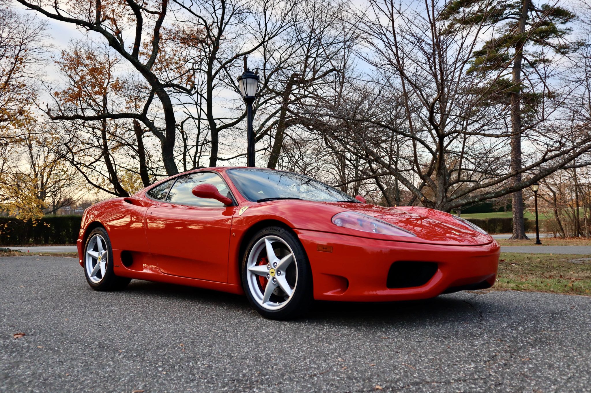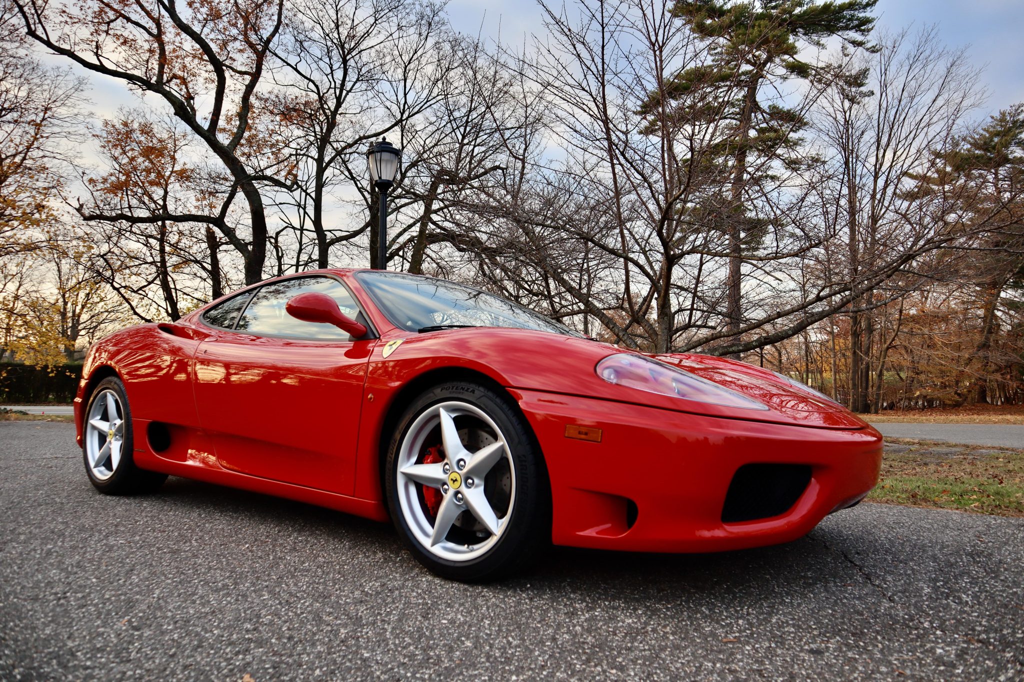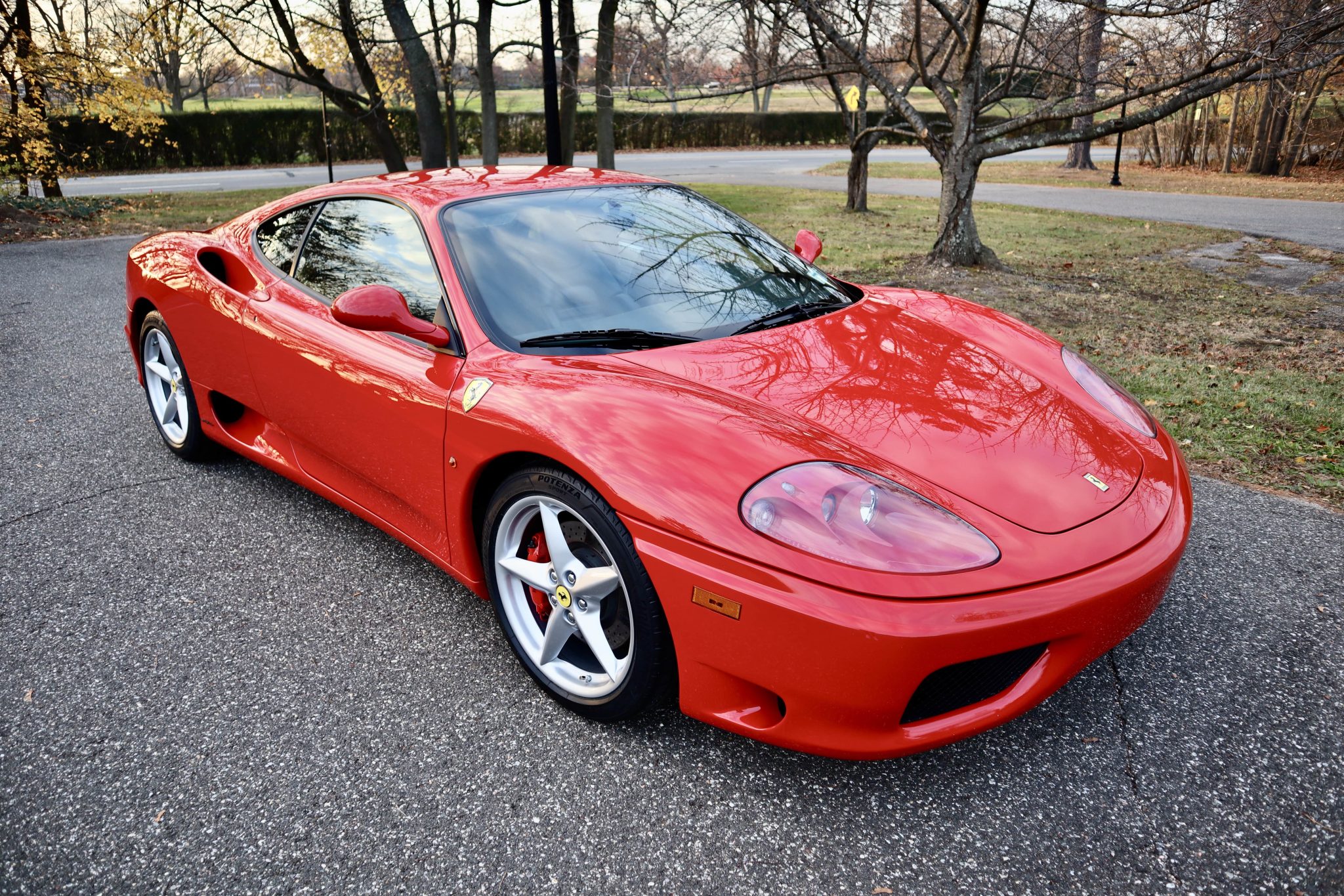 Factory 18″ wheels wear yellow Ferrari center caps and are wrapped in Bridgestone Potenza tires that were fitted in October 2021. The brake pads were also replaced in preparation for the sale.