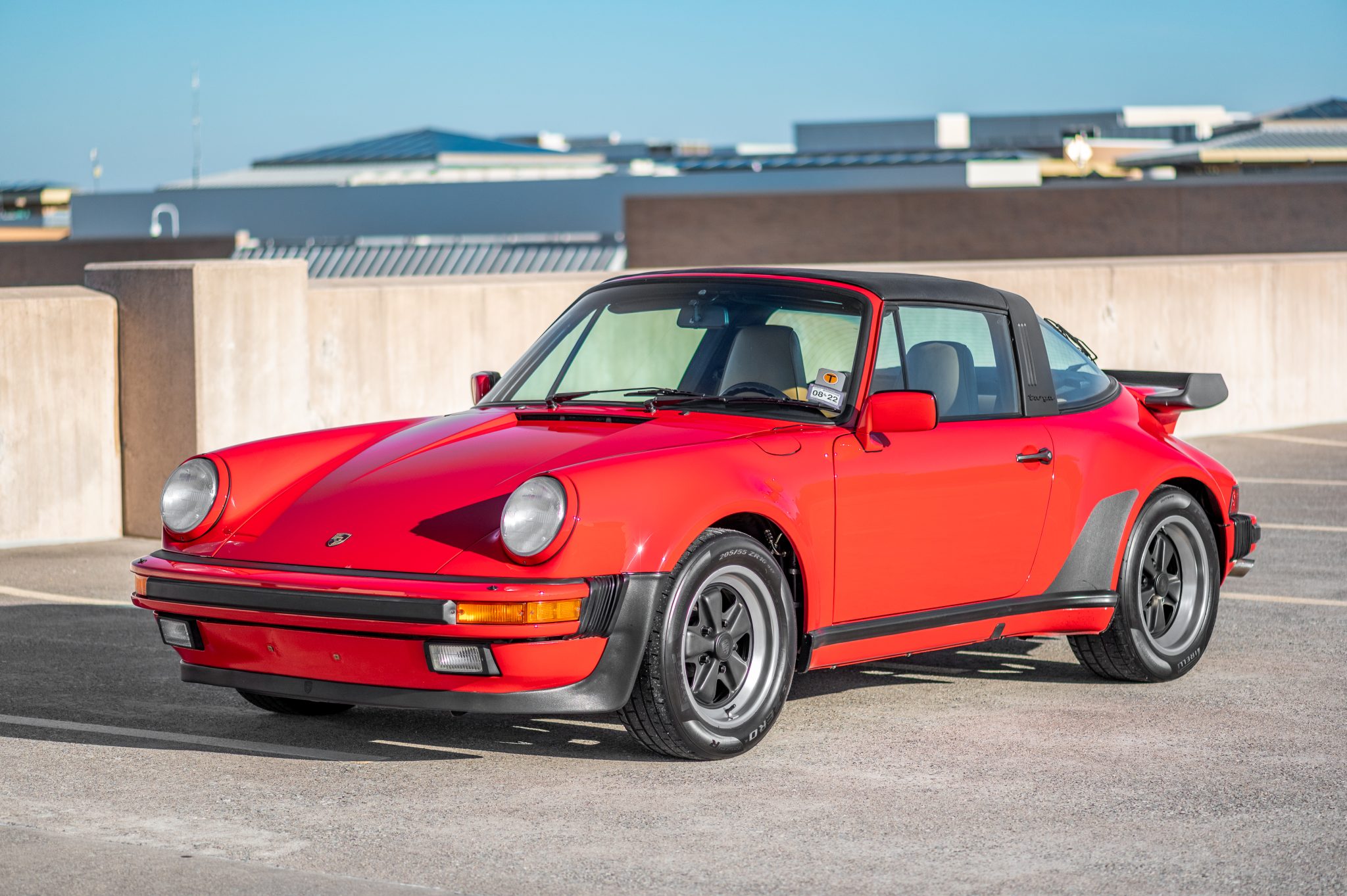 Fuchs 16” alloy wheels feature black centers and anodized lips and are mounted with Pirelli P Zero Trofeo R tires measuring 205/55 up front and 245/45 at the rear. Braking is handled by cross-drilled rotors and four-piston Porsche-branded calipers. The brakes were flushed and bled in February 2021.