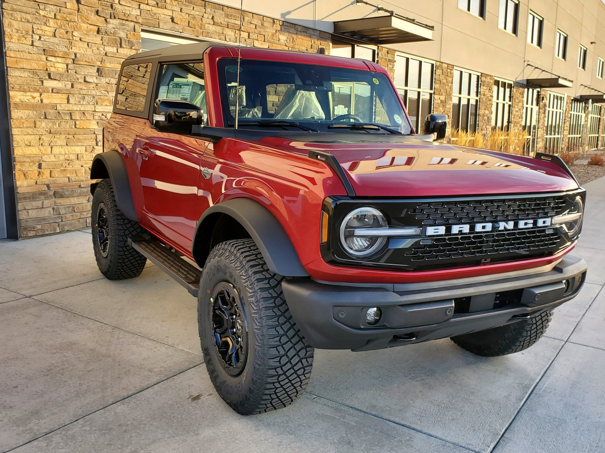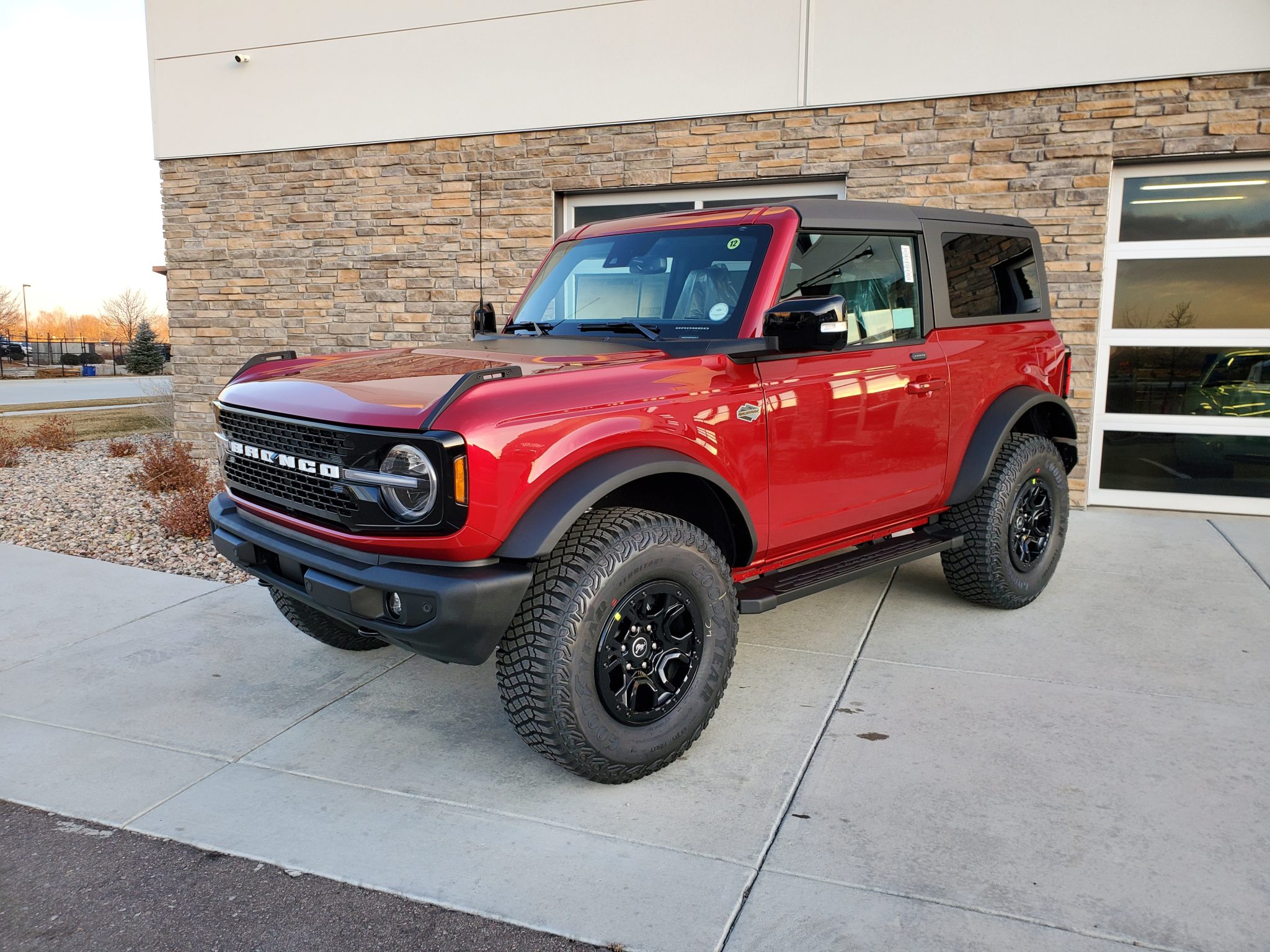 Beadlock-capable 17″ forged aluminum wheels are finished in black and wrapped in 315/70 Goodyear Territory MT tires. A matching spare is mounted to the rear cargo door. Braking is handled by four-wheel anti-lock discs, and the truck is equipped with an electronically-controlled front sway bar, Bilstein monotube shocks, Roll Stability Control, and the Terrain Management System, which features six selectable “Goes Over Any Type of Terrain” (GOAT) drive modes.