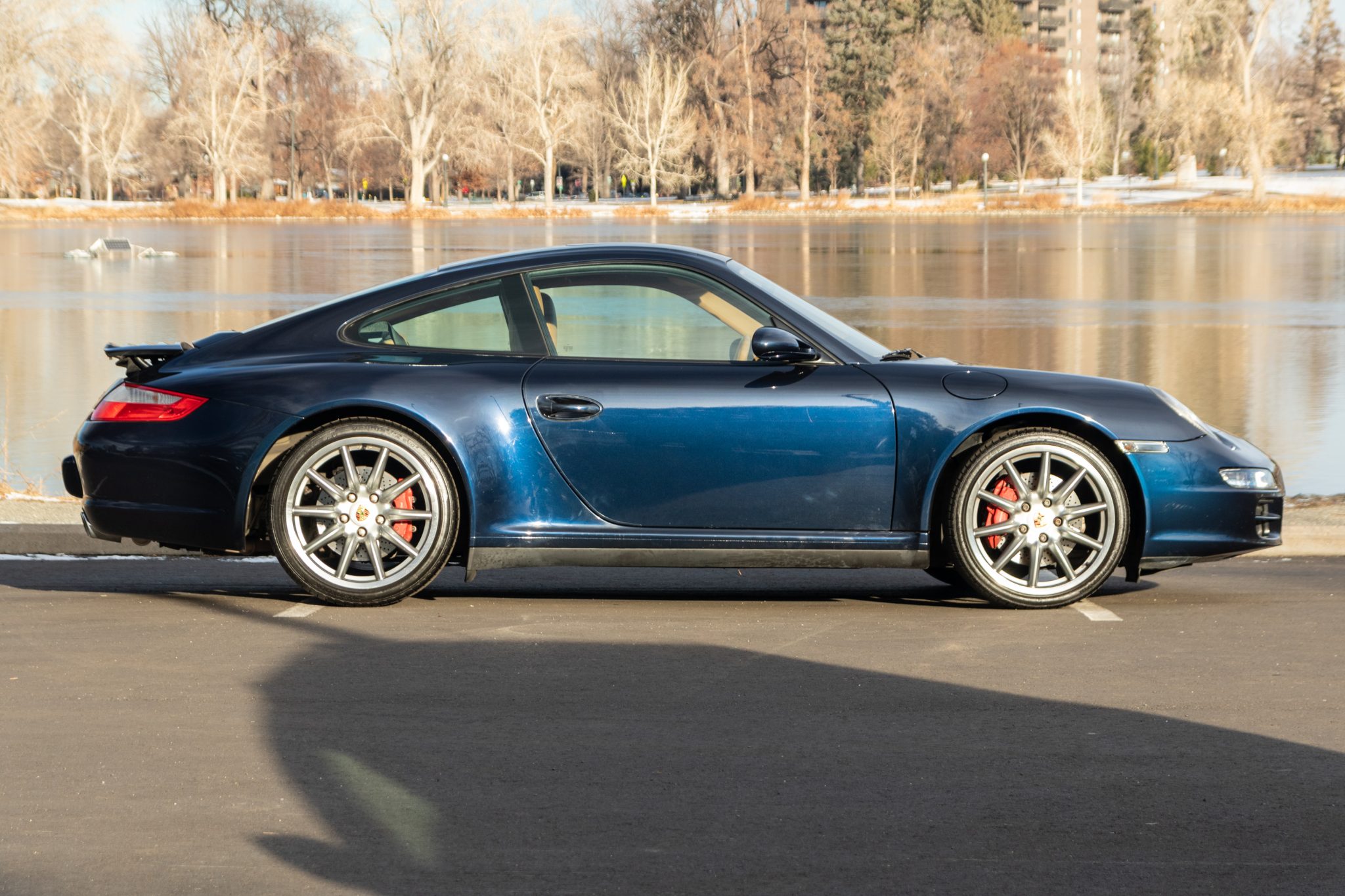 The 19″ Carrera Sport wheels feature colored Porsche-crest center caps and wear Hankook Ventus V12 Evo2 tires sized 205/35 up front and 305/30 out back. The car is equipped with Porsche Active Suspension Management (PASM). Stopping power is provided by red-finished Porsche-script calipers over cross-drilled discs at each corner, and the front and rear brake pads and rotors were replaced under current ownership.