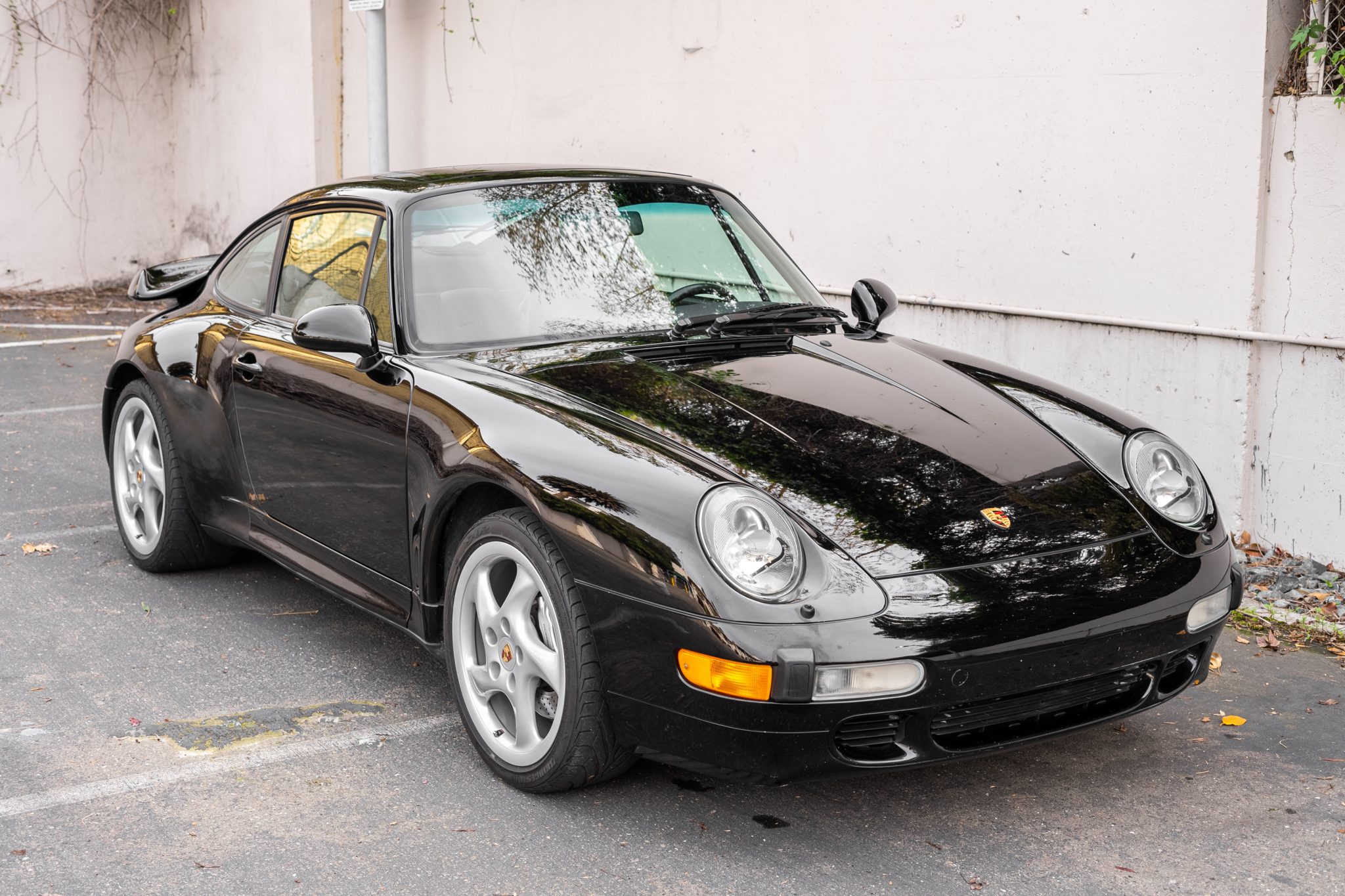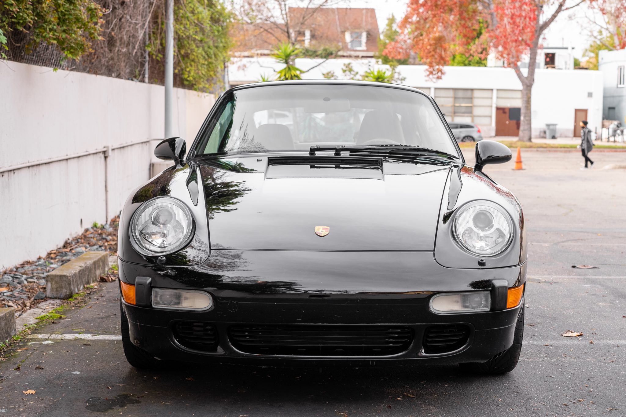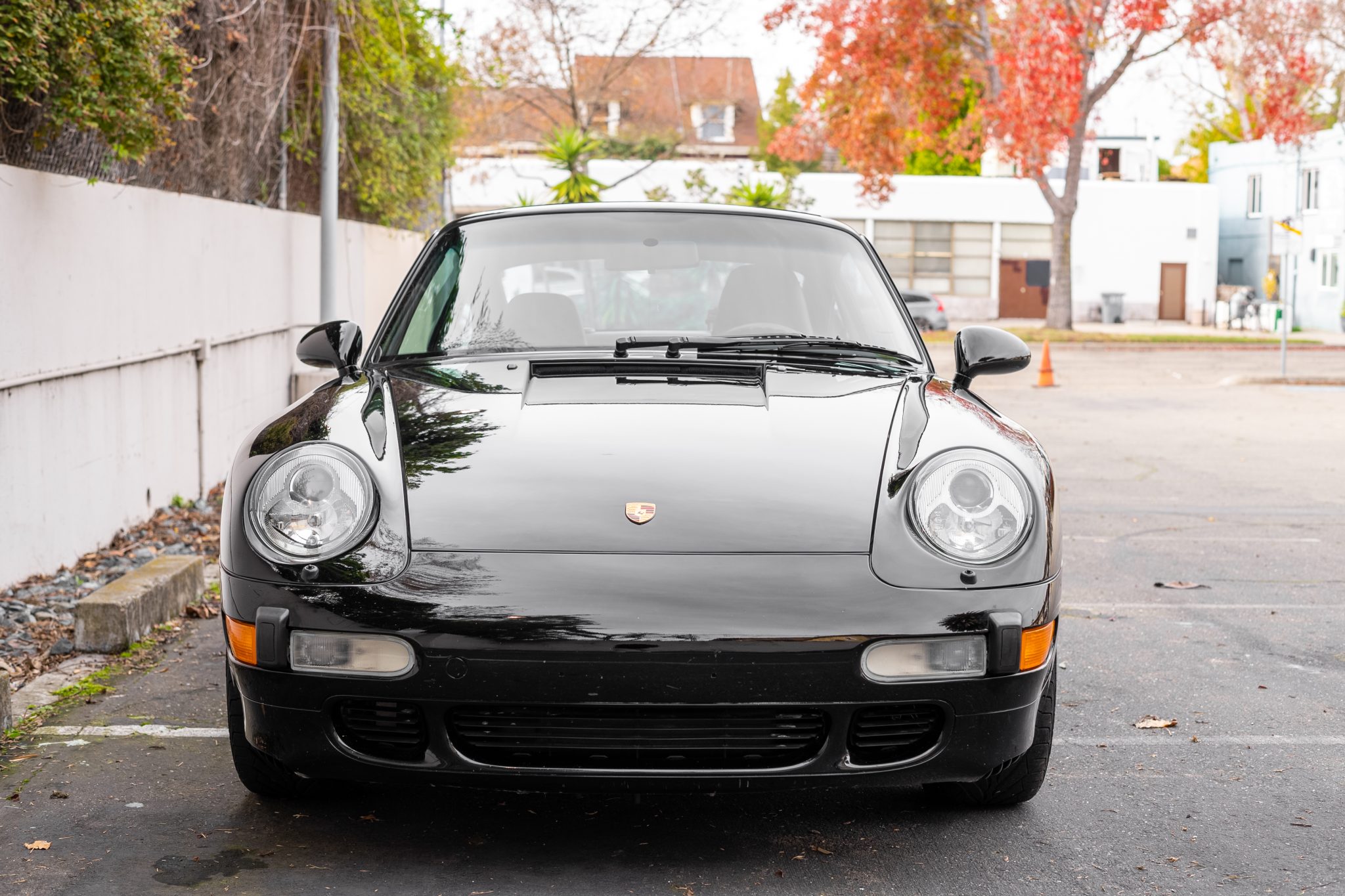 Staggered-width 18″ wheels are mounted with Bridgestone tires measuring 225/40 up front and 285/30 out back with 2017 date codes. Porsche-branded brake calipers are accompanied by cross-drilled and vented rotors all around.