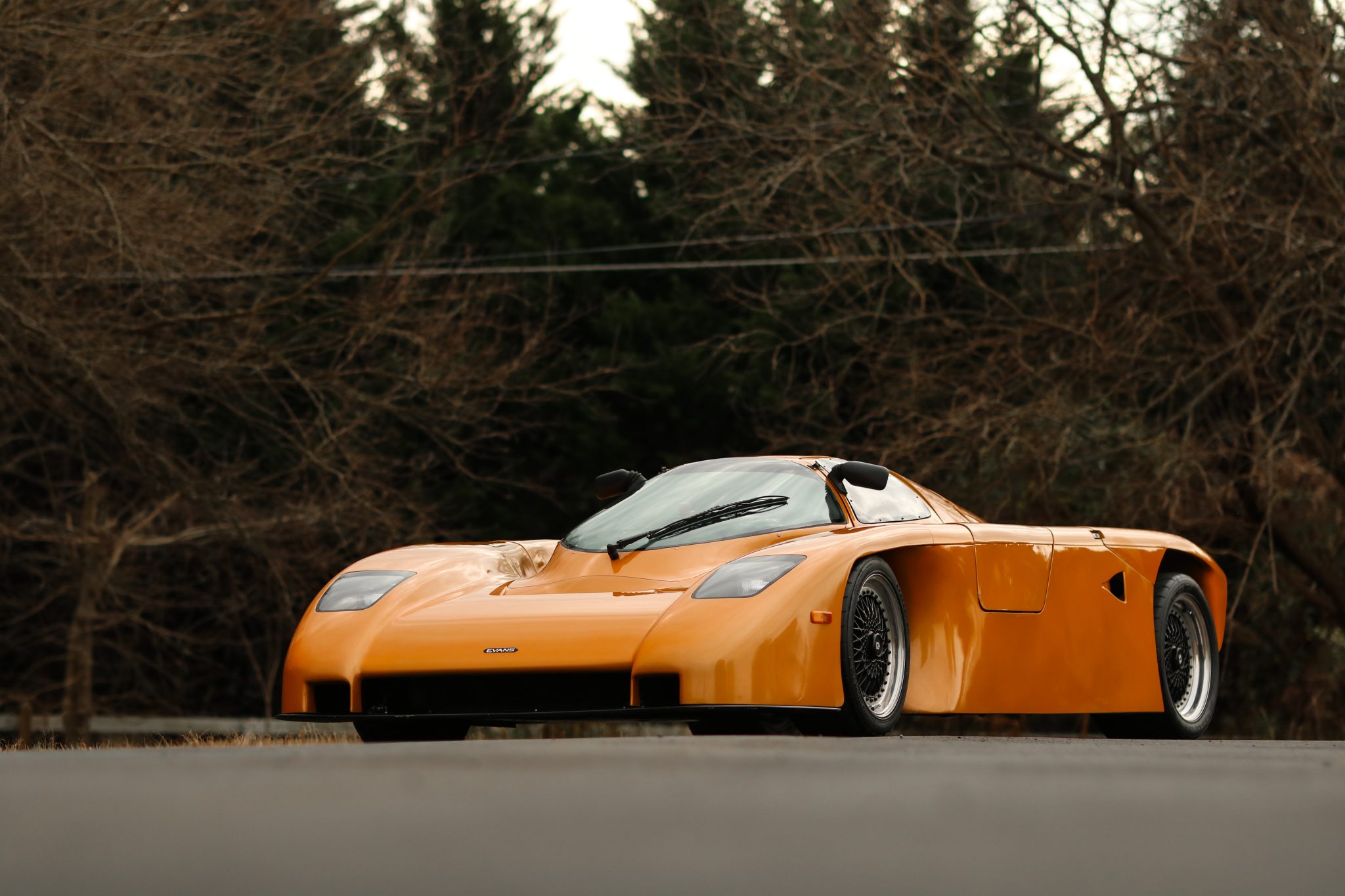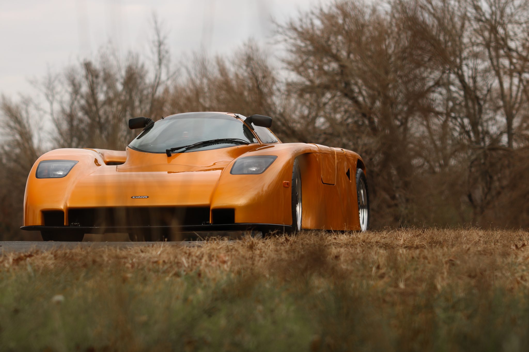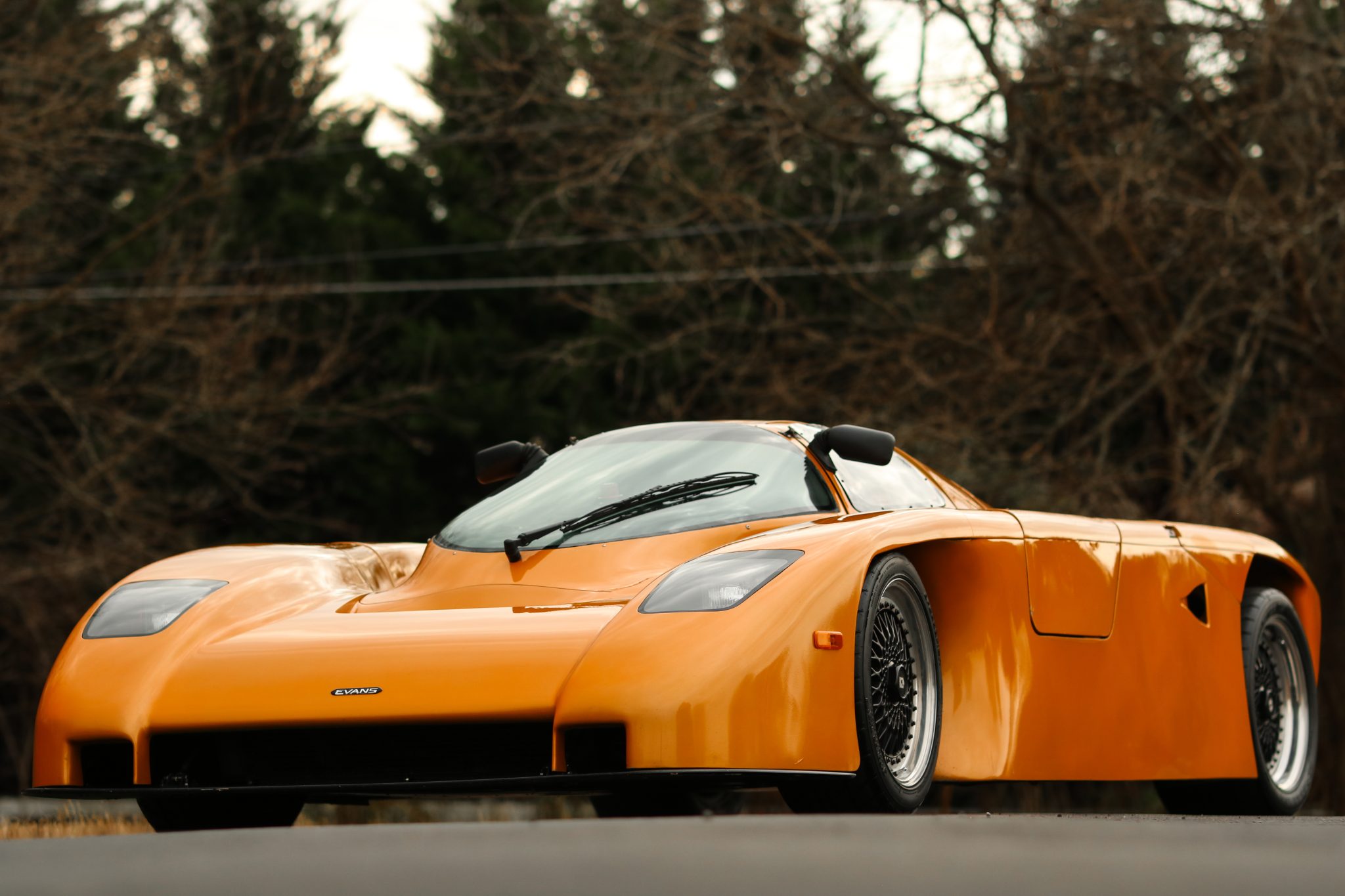The multi-piece 17″ wheels feature basketweave inserts with Evans-branded center-lock hubs and are mounted with 245/40 front and 315/35 rear BFGoodrich g-Force T/A tires. The Series I GT rides on a 105″ wheelbase and features a semi-monocoque chassis with aluminum honeycomb panels. The fully-independent suspension features C4 Corvette-sourced aluminum unequal-length control arms along with coilovers at all four corners. The suspension was modified and the Corvette components were installed by Team York Racing of York, Pennsylvania in 2007 along with a Mazda Miata-sourced steering rack and C4 ZR-1-sourced disc brakes. This chassis was reportedly used as a development mule by Evans, spending time on track before conversion to road specification.