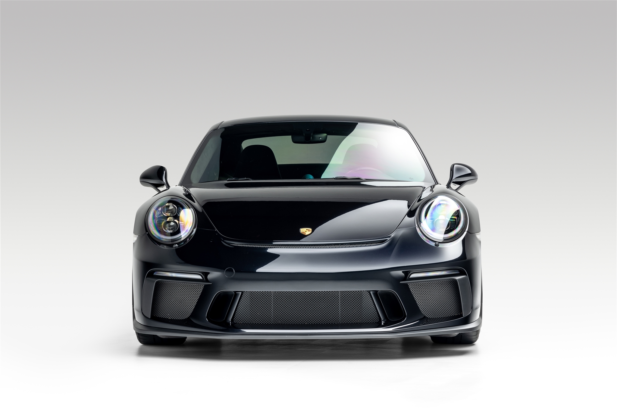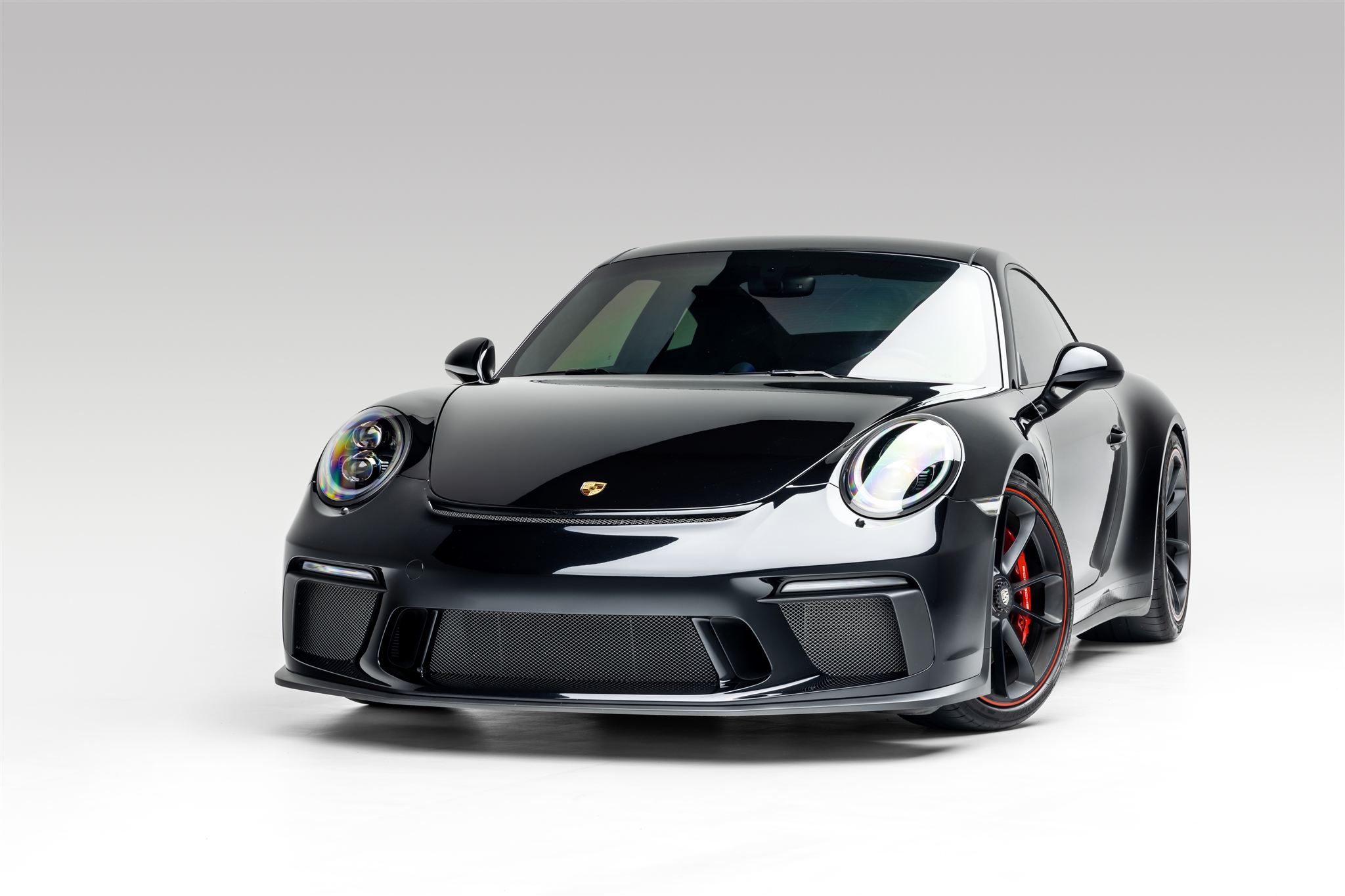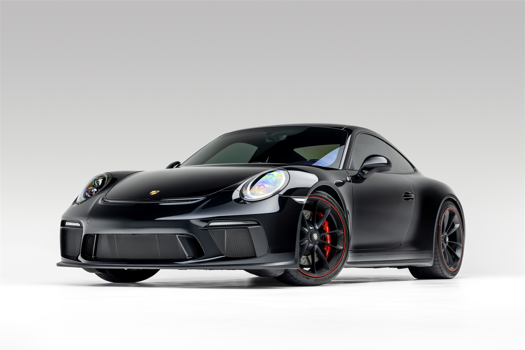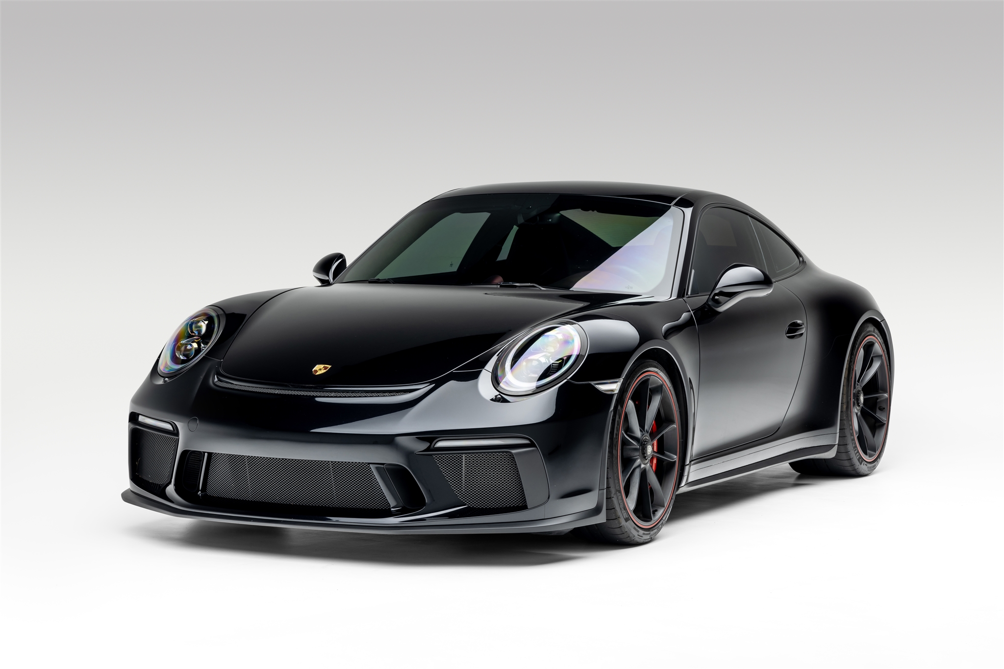 Center-lock 20” wheels are painted satin black with the outer lip in Guards Red and are mounted with Dunlop Sport Maxx Race 2 tires that measure 245/35 up front and 305/30 out back. The car is equipped with a front-axle lift system, and stopping power is provided by red multi-piston calipers over cross-drilled rotors.