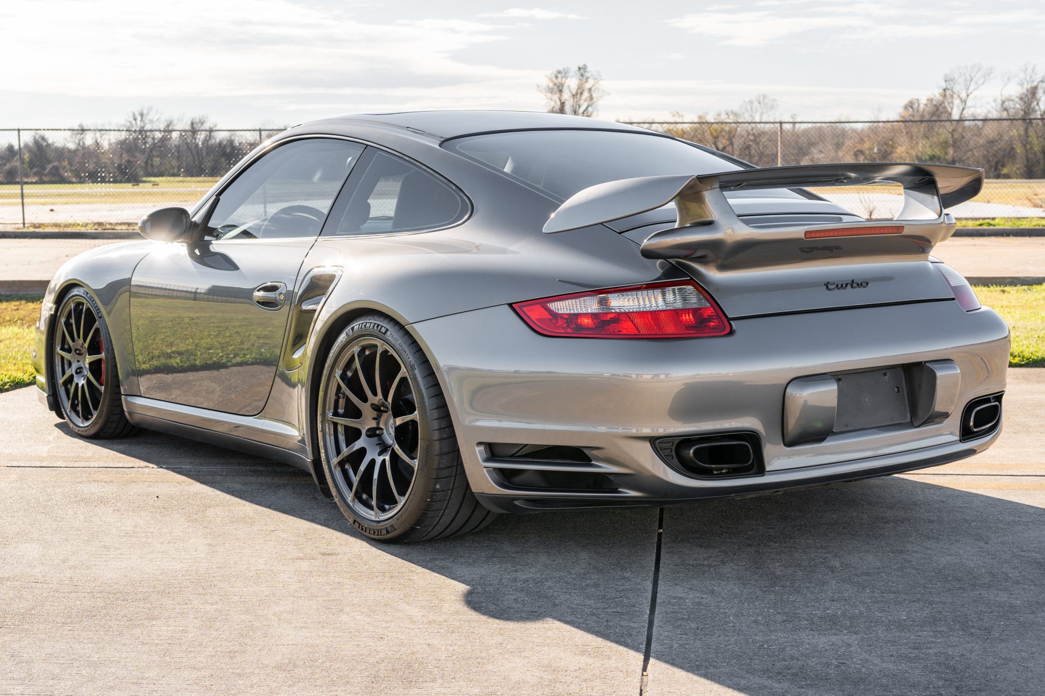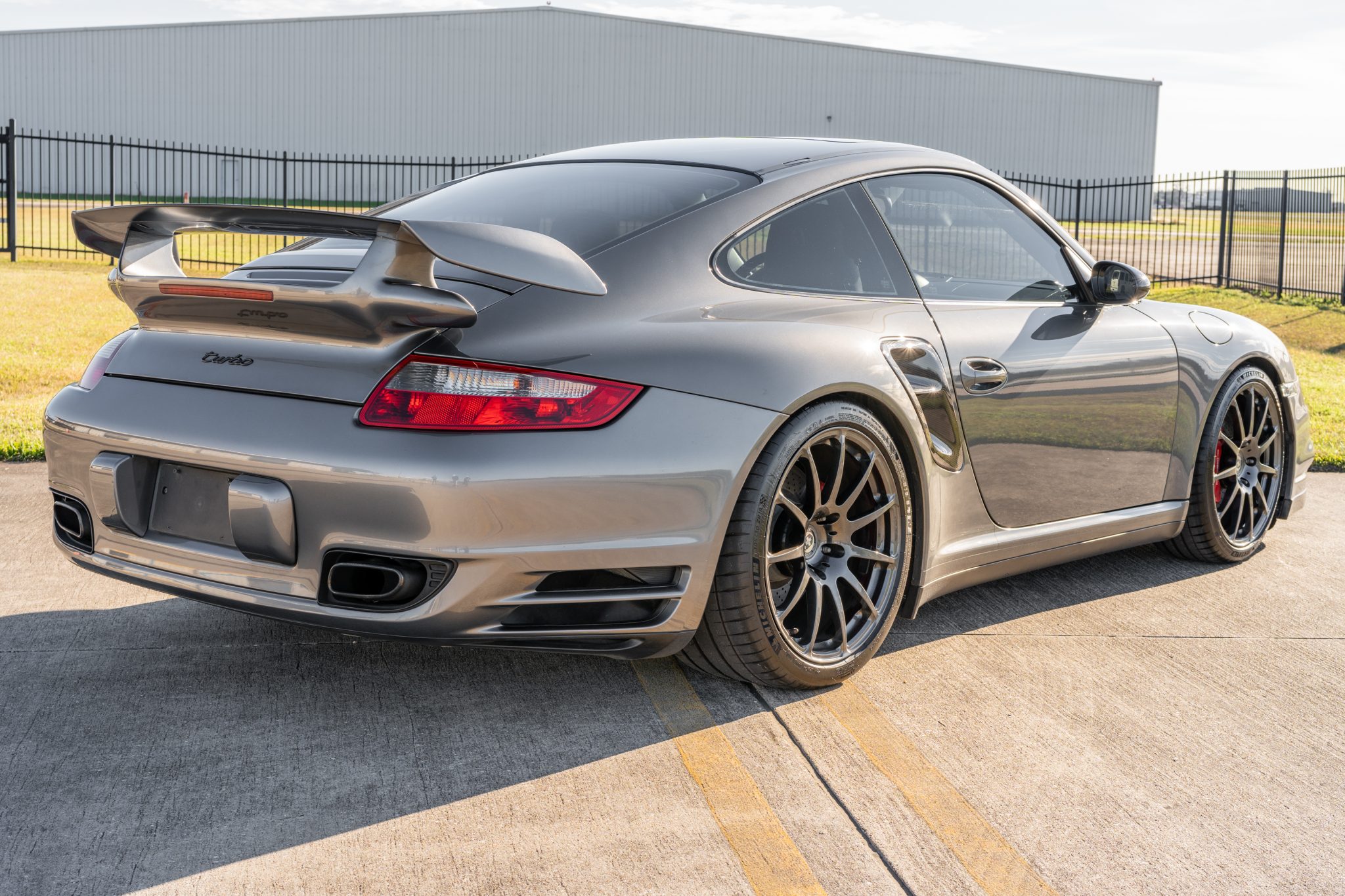 Gray-finished 19″ HRE wheels are wrapped in Michelin Pilot Sport tires measuring 235/35 up front and 305/30 out back and showing 2021 and 2020 date codes. Braking is handled by Porsche-branded six- and four-piston front and rear calipers over rotors measuring 13.8″ at each corner. The car is equipped with Porsche Active Suspension Management (PASM) as well as Porsche Stability Management (PSM) with an active brake differential (ABD).