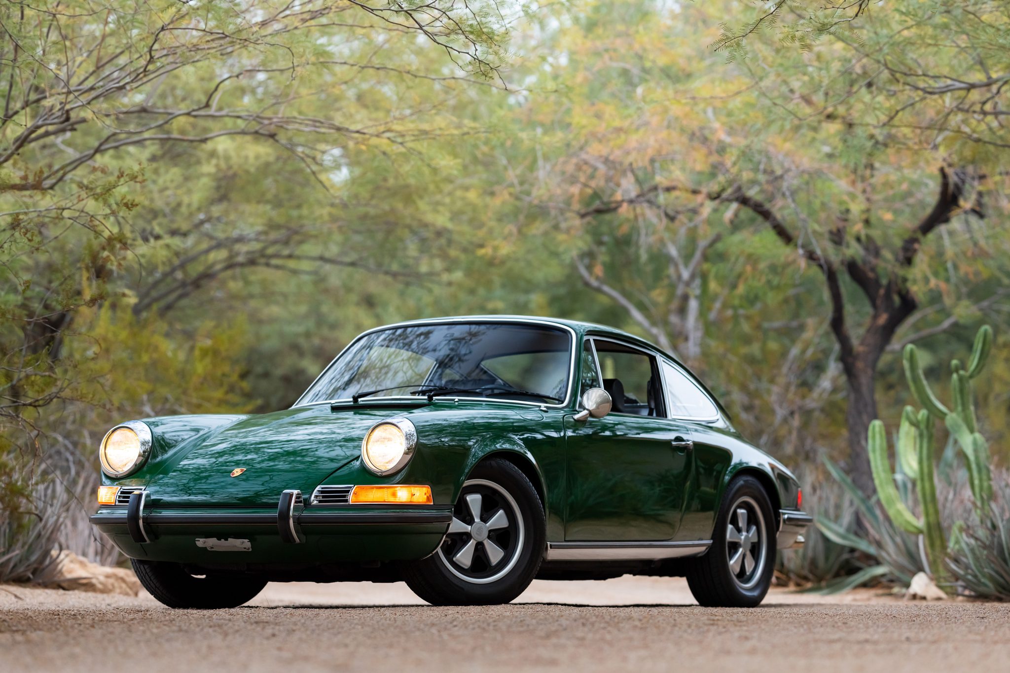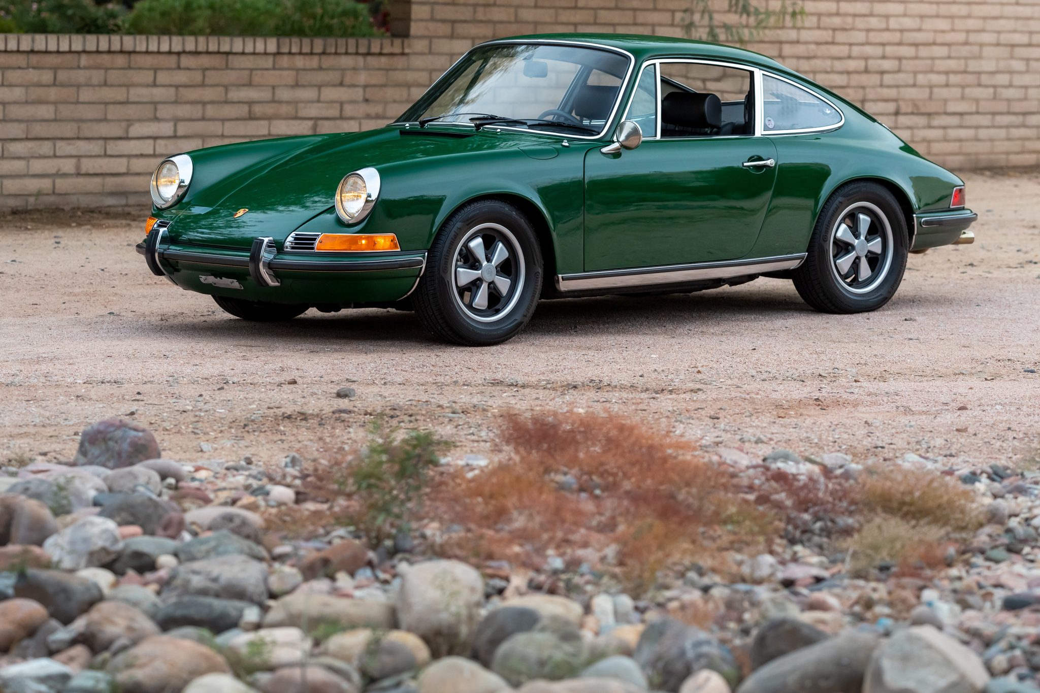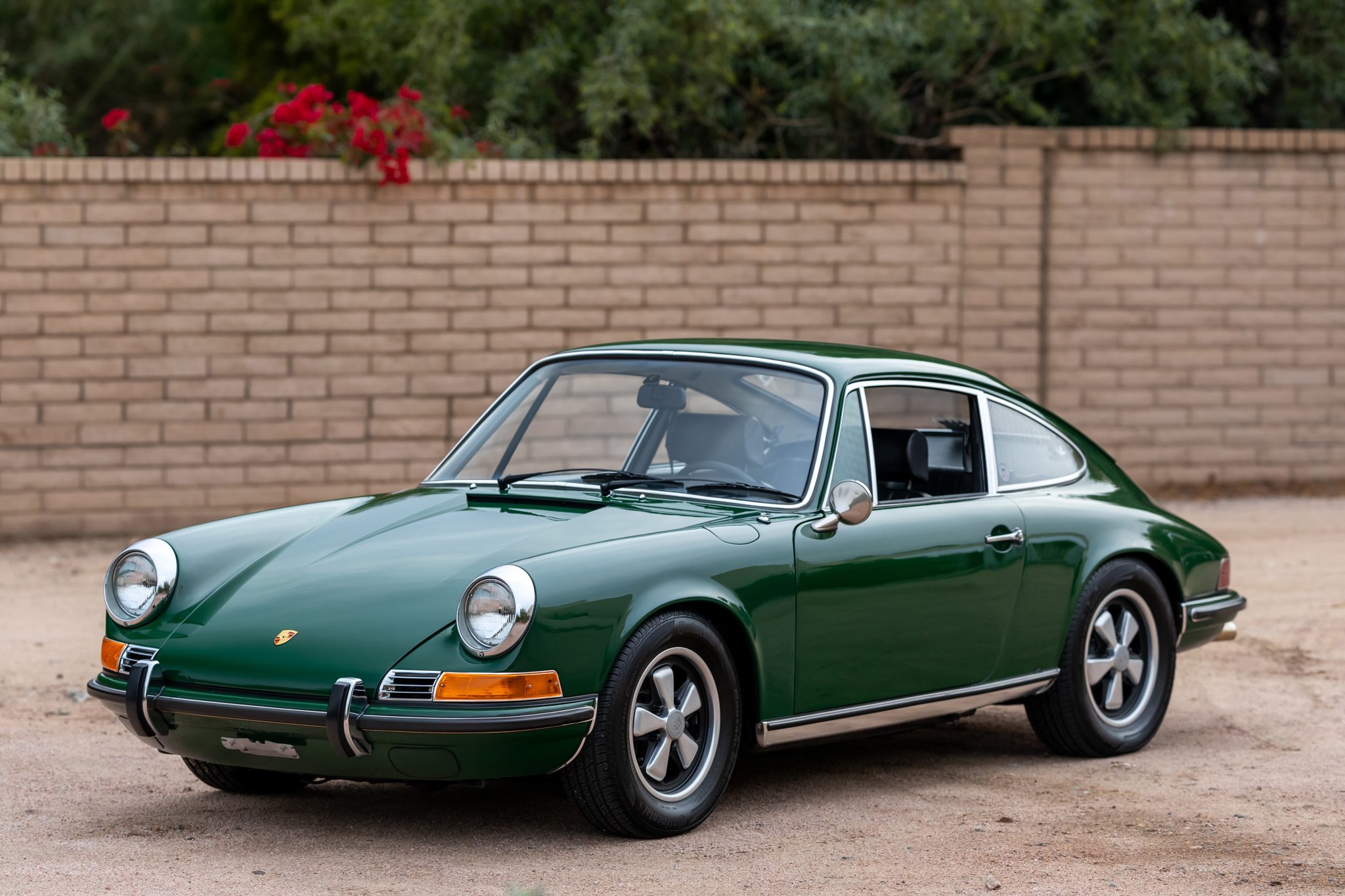 Continental tires measuring 205/65 are mounted on 15″ Fuchs wheels, and the full-size spare wears a Toyo tire. Torsion bars were installed in place of the factory Boge self-adjusting front struts during previous ownership along with Bilstein rear shocks, and further updates are said to include a 911S-specification front sway bar and front calipers, the latter of which were rebuilt with stainless-steel pistons.