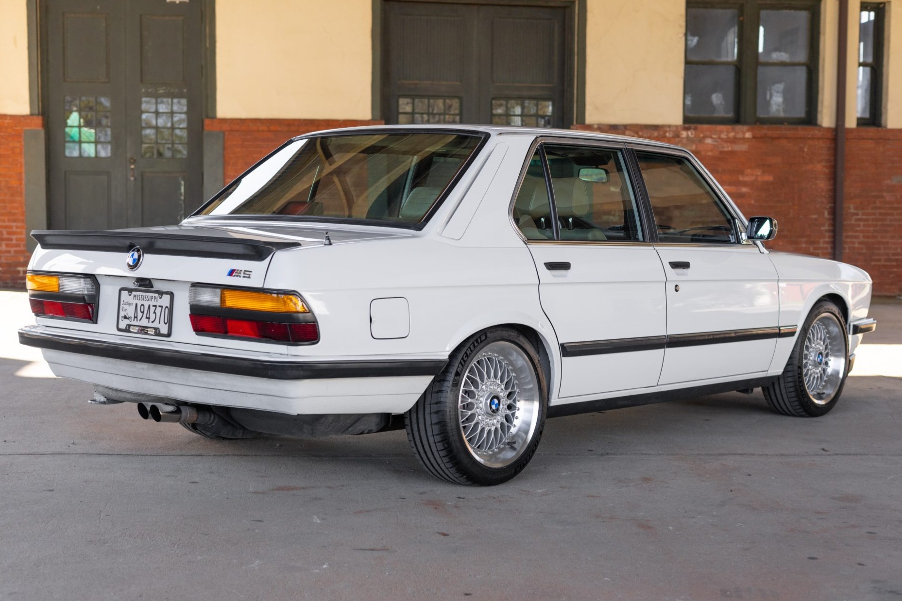 Multi-piece 17″ Style 5 wheels were mounted with 225/45 Micheline Pilot Sport tires in preparation for the sale. The four-wheel disc brakes are equipped with red six- and four-piston Wilwood/UUC Superlight calipers.