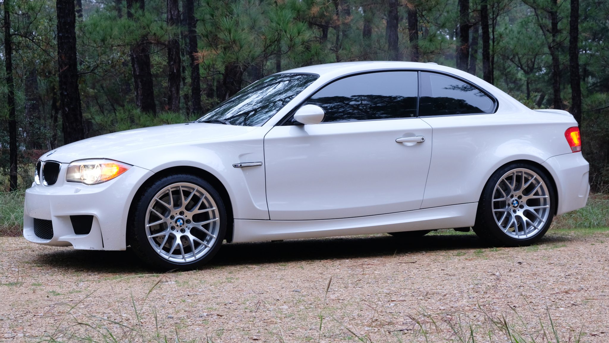 Staggered-width 19″ Style 359 wheels are mounted with 245/35 front and 265/35 rear Michelin Pilot Super Sport tires that show 2021 date codes. The 1M utilizes suspension, rear subframe, and braking components from the contemporary M3. Work carried out in preparation for the sale is said to have included an alignment and a brake fluid flush.