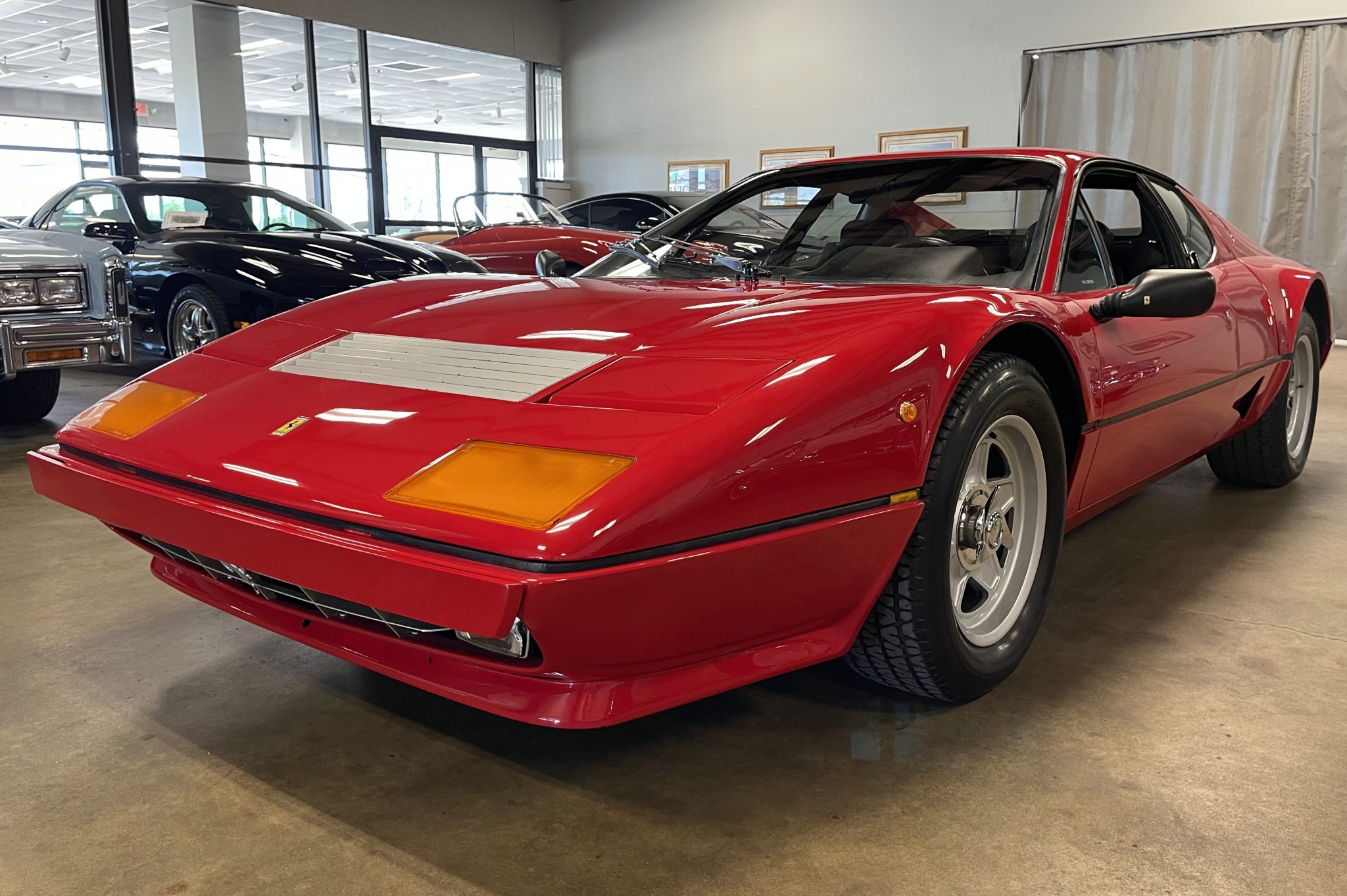 This example is said to have been repainted in its factory Rosso Corsa under current ownership and features a black rear high-mount spoiler and engine lid grilles. Additional equipment includes a front spoiler, front and rear fog lights, pop-up headlights, side markers, adjustable mirrors, and NACA ducts aft of the doors.