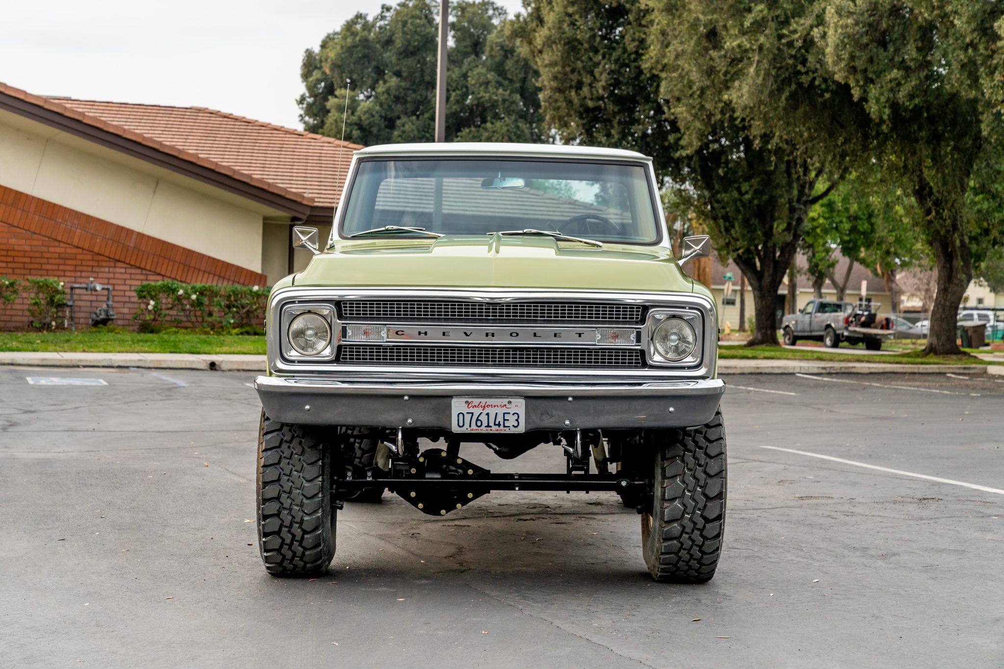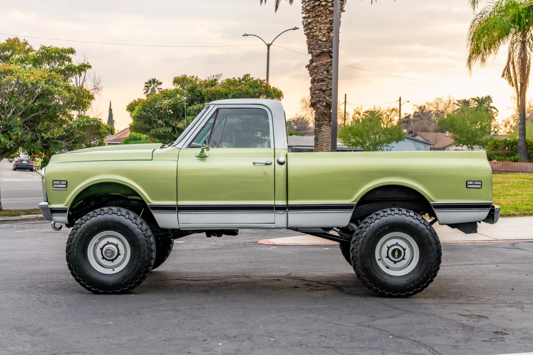 The truck has been lifted to clear 37×12.5″ BFGoodrich Baja T/A tires mounted on white 16″ steel wheels. Mile Marker manually-locking hubs are equipped up front. The truck features power-assisted front disc and rear drum brakes, and the power steering gearbox is said to have been rebuilt.