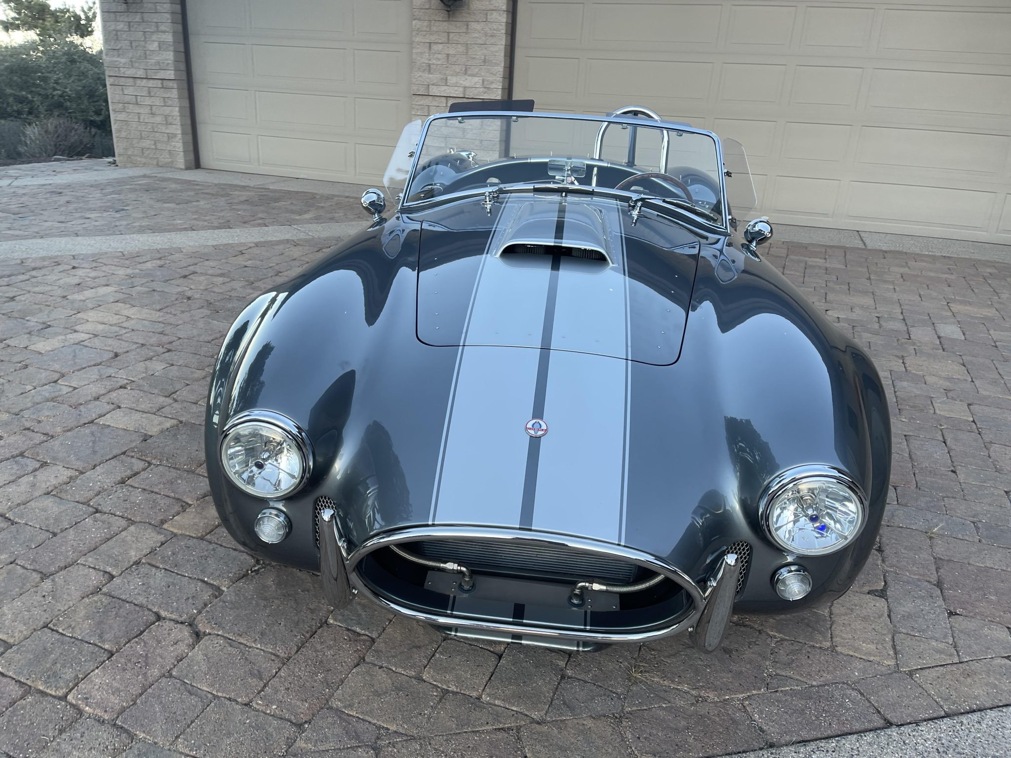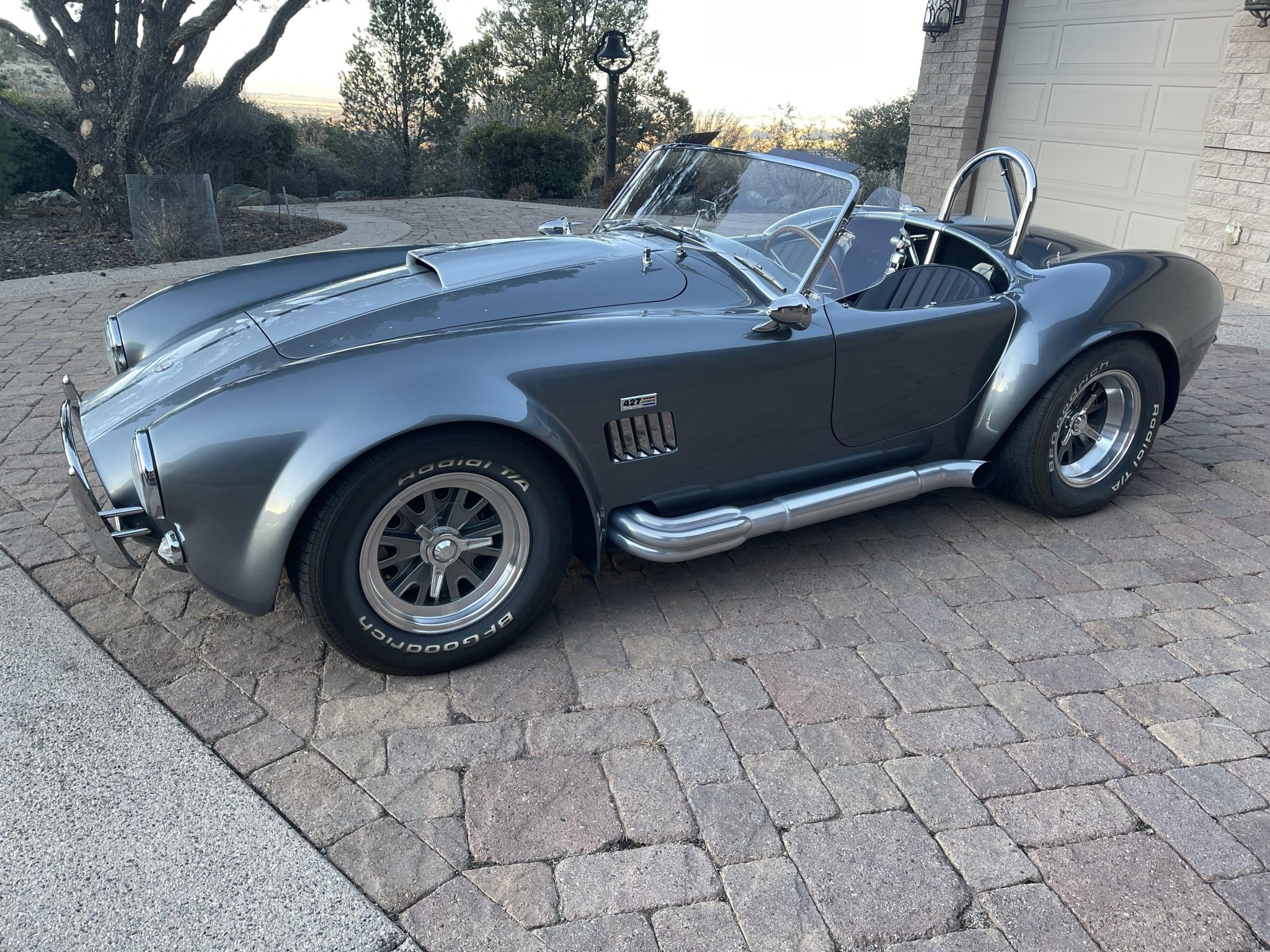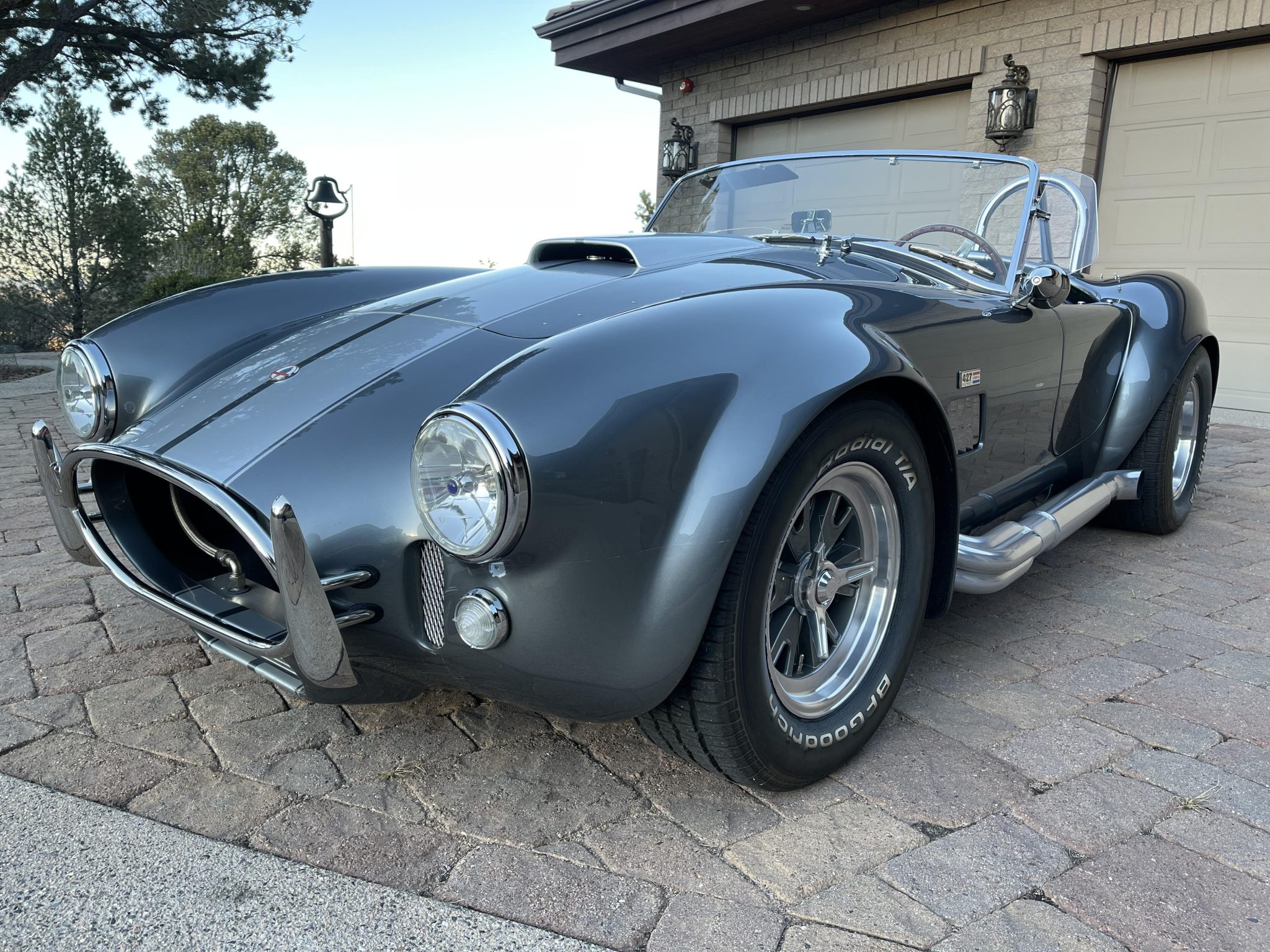 Halibrand-style 15” wheels feature polished lips as well as knock-off hubs secured with safety wire. The wheels are wrapped in BFGoodrich Radial T/A tires measuring 255/60 up front and 295/50 at the rear. Braking is handled by power-assisted discs. The seller recommends replacement of the tires and a flush of the brake fluid.