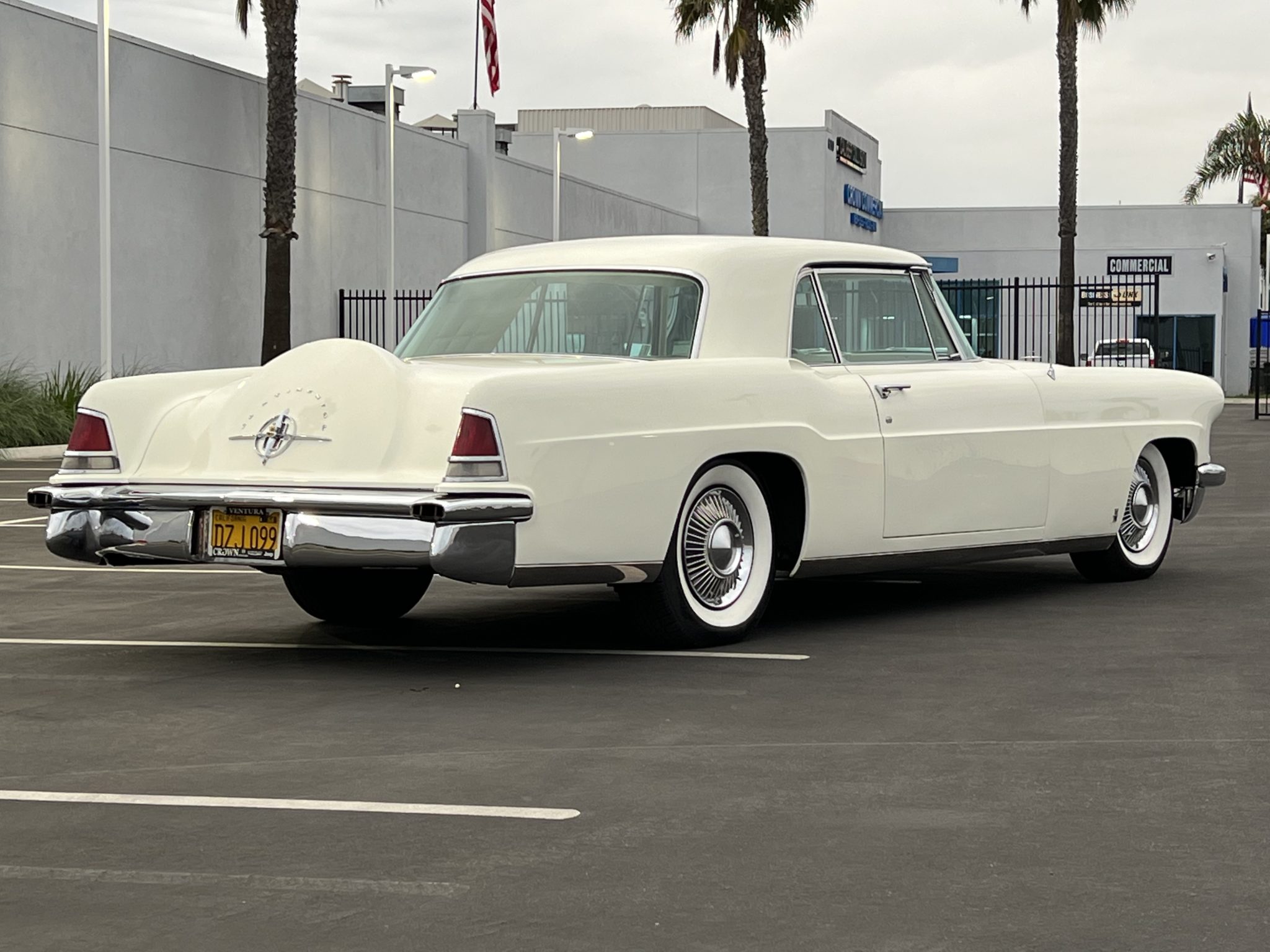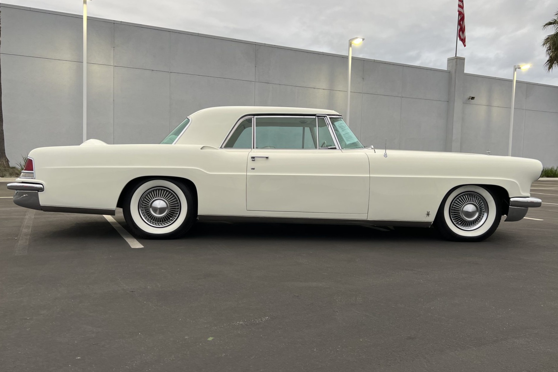Steel 15″ wheels are dressed with bright full covers and wear BFGoodrich Silvertown whitewall tires. Service records indicate that the brake booster and master cylinder were replaced in May 2015, and that the front brake shoes were replaced and the wheel cylinders were rebuilt in January 2018. The selling dealer notes that the car was fitted with a rear stabilizer bar.