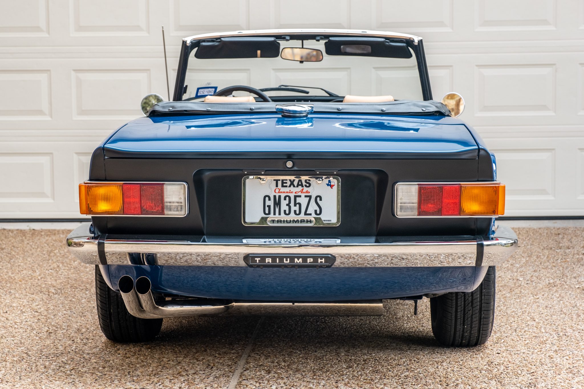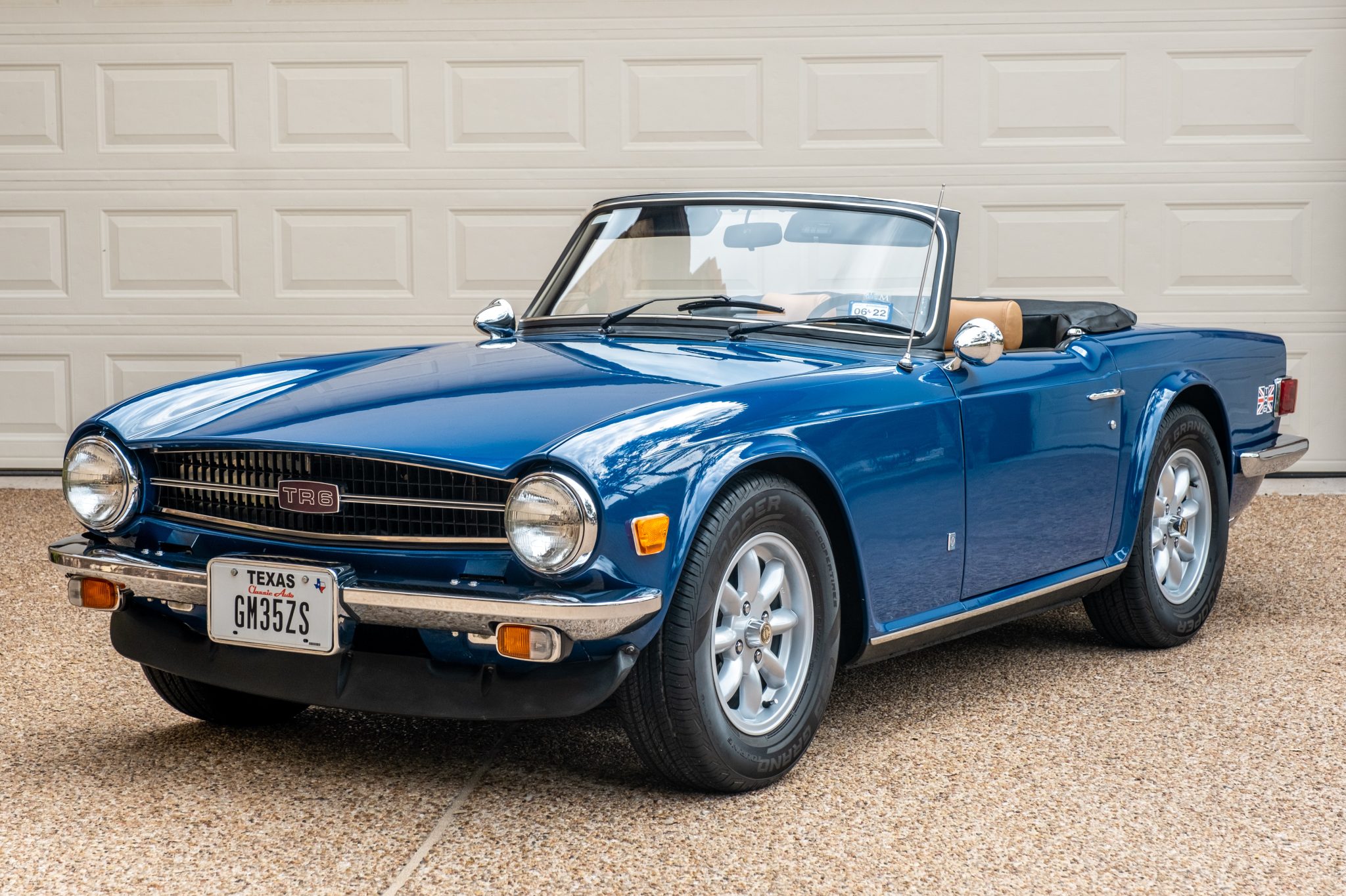 Minator 15″ wheels are fitted with Triumph center caps and 205/70 Cooper CS5 Grand Touring tires. The braking components were replaced in 2015 along with the steering rack boots and front and rear springs. Polyurethane bushings were also installed.
