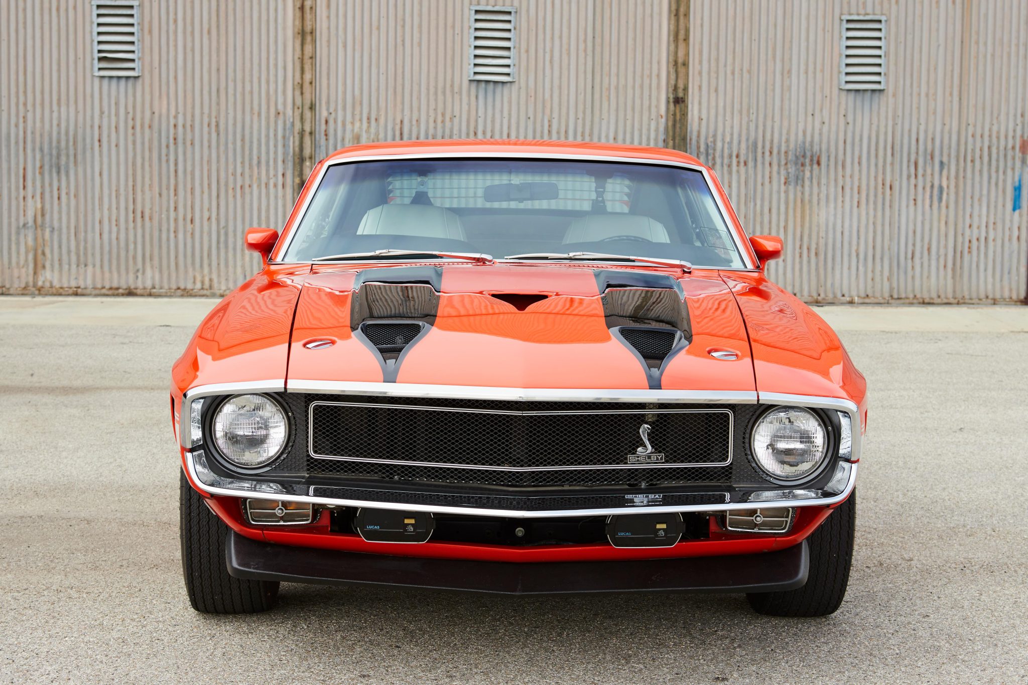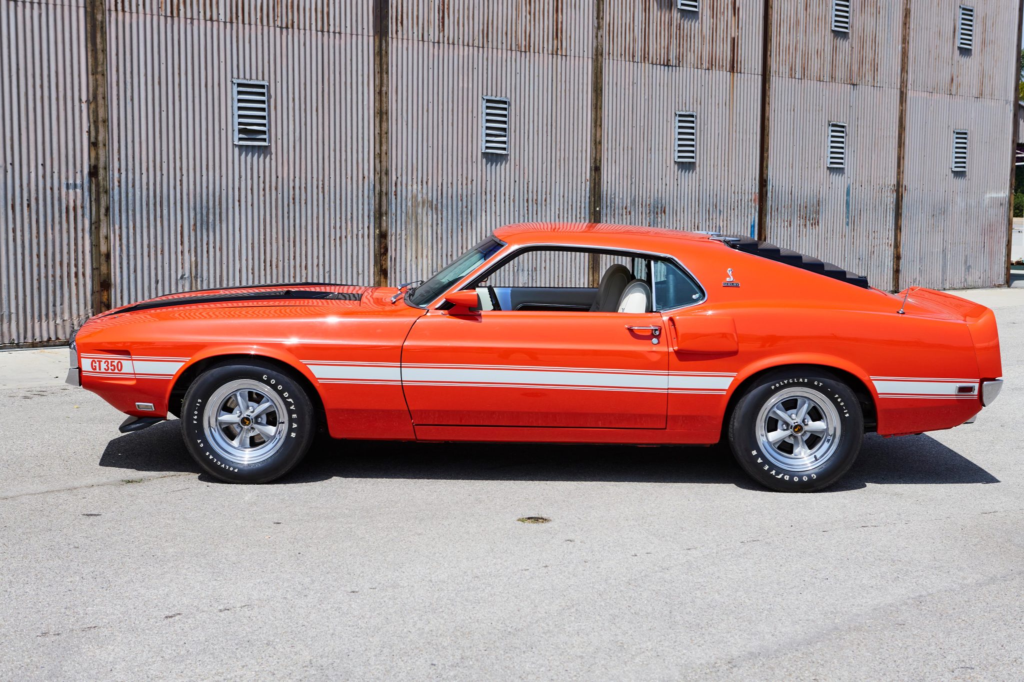 Five-spoke 15″ wheels wear black Shelby center caps and are mounted with F60-15 Goodyear Polyglas GT white-letter tires. A space-saving spare and jack are mounted in the trunk. The car is equipped with power steering, and braking is handled by power-assisted front discs and rear drums.