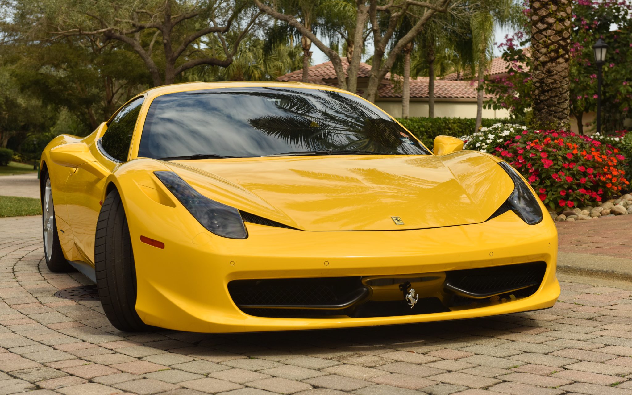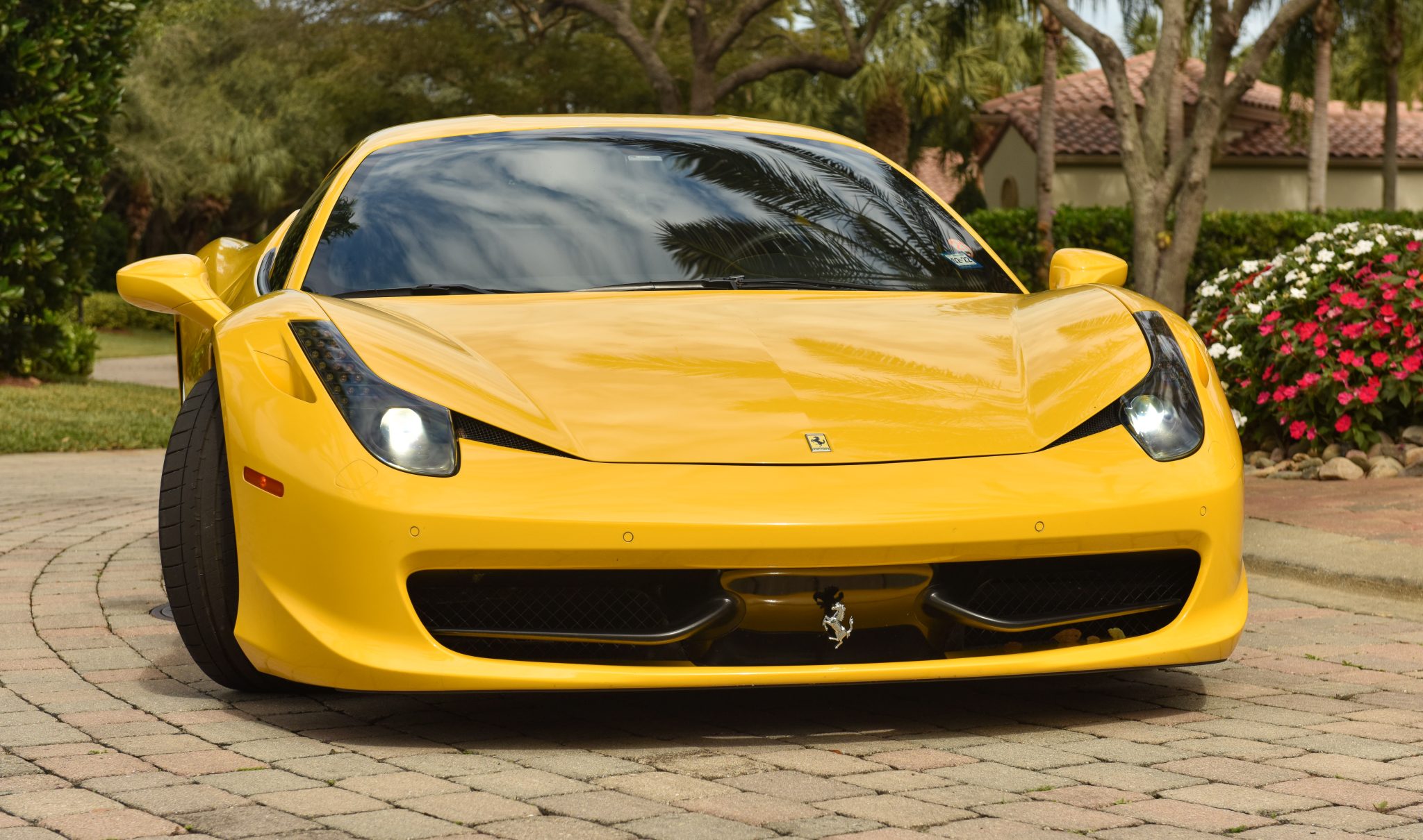 Silver-finished 20″ five-spoke forged wheels wear yellow Ferrari center caps and are mounted with Michelin Pilot Super Sport tires that were installed in 2019 and measure 235/35 up front and 295/35 out back. The car came equipped with a front axle lift system and stopping power is provided by carbon-ceramic rotors with yellow-finished multi-piston calipers. A brake fluid and ASR flush were performed in May 2021.