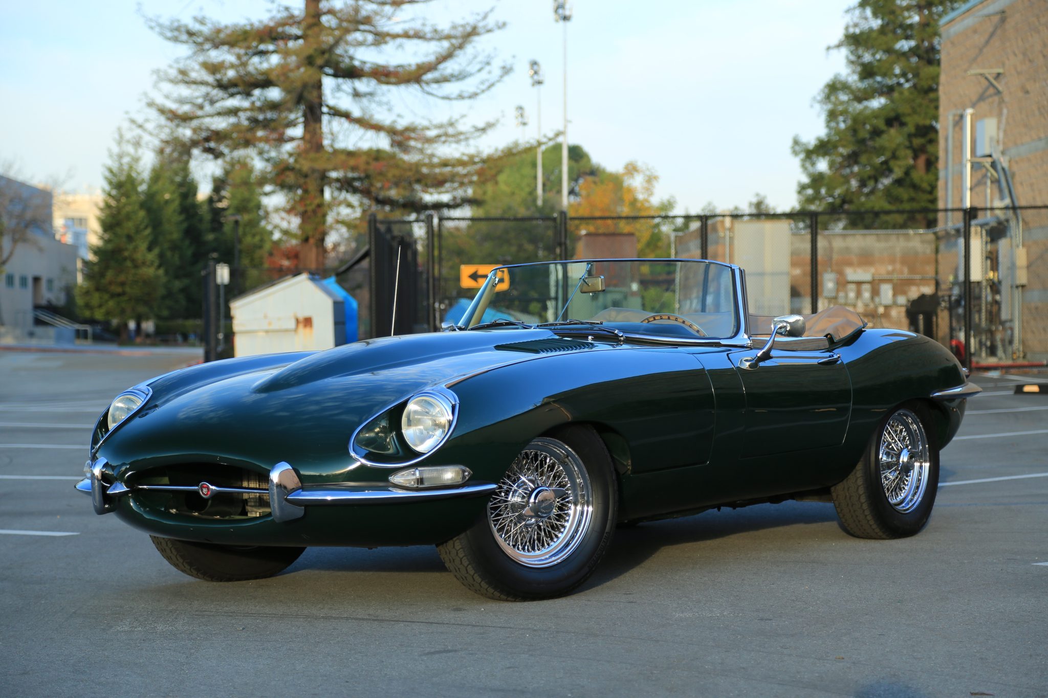 Chrome 15″ wire wheels are secured via two-eared knock-off spinners and are wrapped in 205/70 Vredistein Sprint Classic tires with Carlisle tubes. The four-wheel independent suspension features polyurethane front and bronze rear bushings, Team CJ adjustable dampers, upgraded sway bars, and an adjustable front reaction plate. The upper ball joints were rebuilt and the lower units were replaced in August 2021. Four-wheel disc brakes with inboard rears were standard on the XKE, and this example has been fitted with four-piston front and two-piston rear calipers over vented discs.