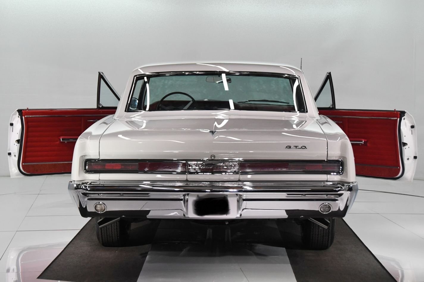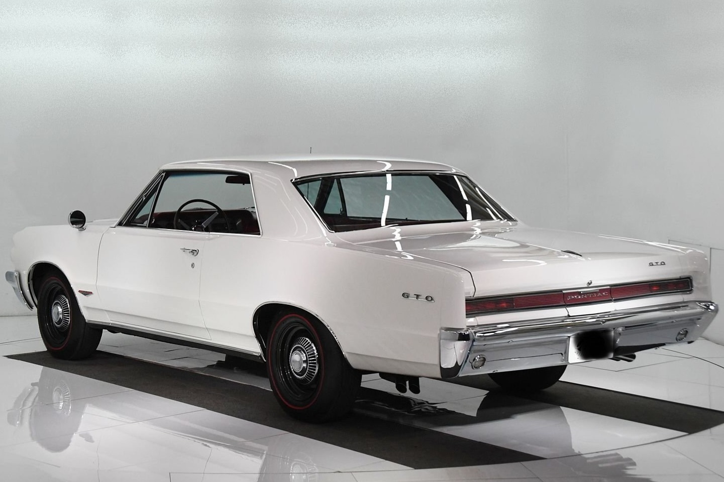 Steel 15″ wheels have been powder-coated black and wear dog-dish chrome hubcaps as well as reproduction FR70-15″ Firestone Wide Oval redline tires. Braking is handled by power-assisted front discs and rear drums with a dual-reservoir master cylinder. The suspension and braking systems are said to have been overhauled, and a rear sway bar has been fitted.