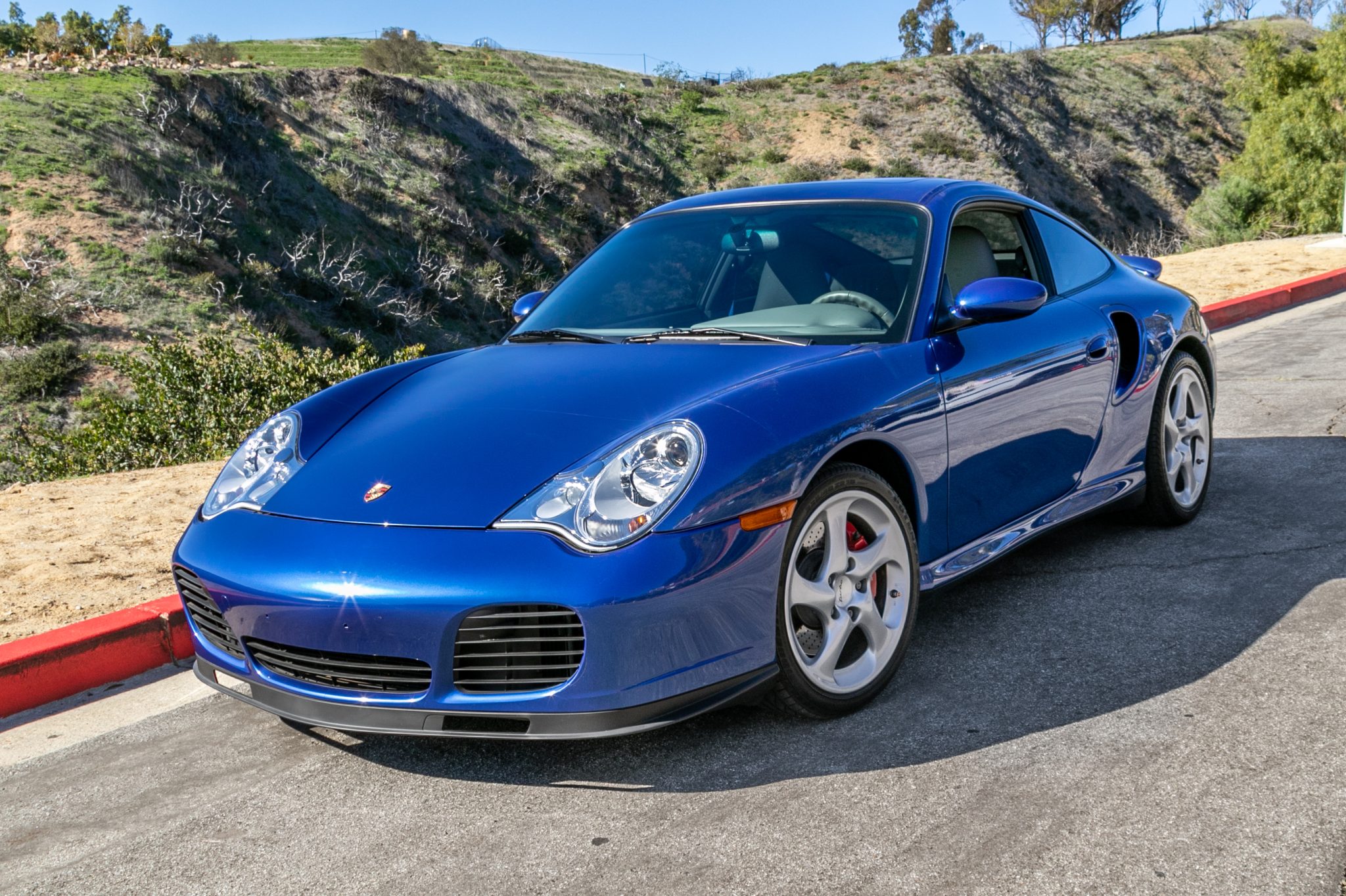Silver 18″ Turbo Twist wheels are wrapped in Bridgestone Potenza tires. The car is equipped with Porsche Stability Management (PSM) and an automatic brake differential. Braking is from red calipers over vented and cross-drilled rotors at all four corners.