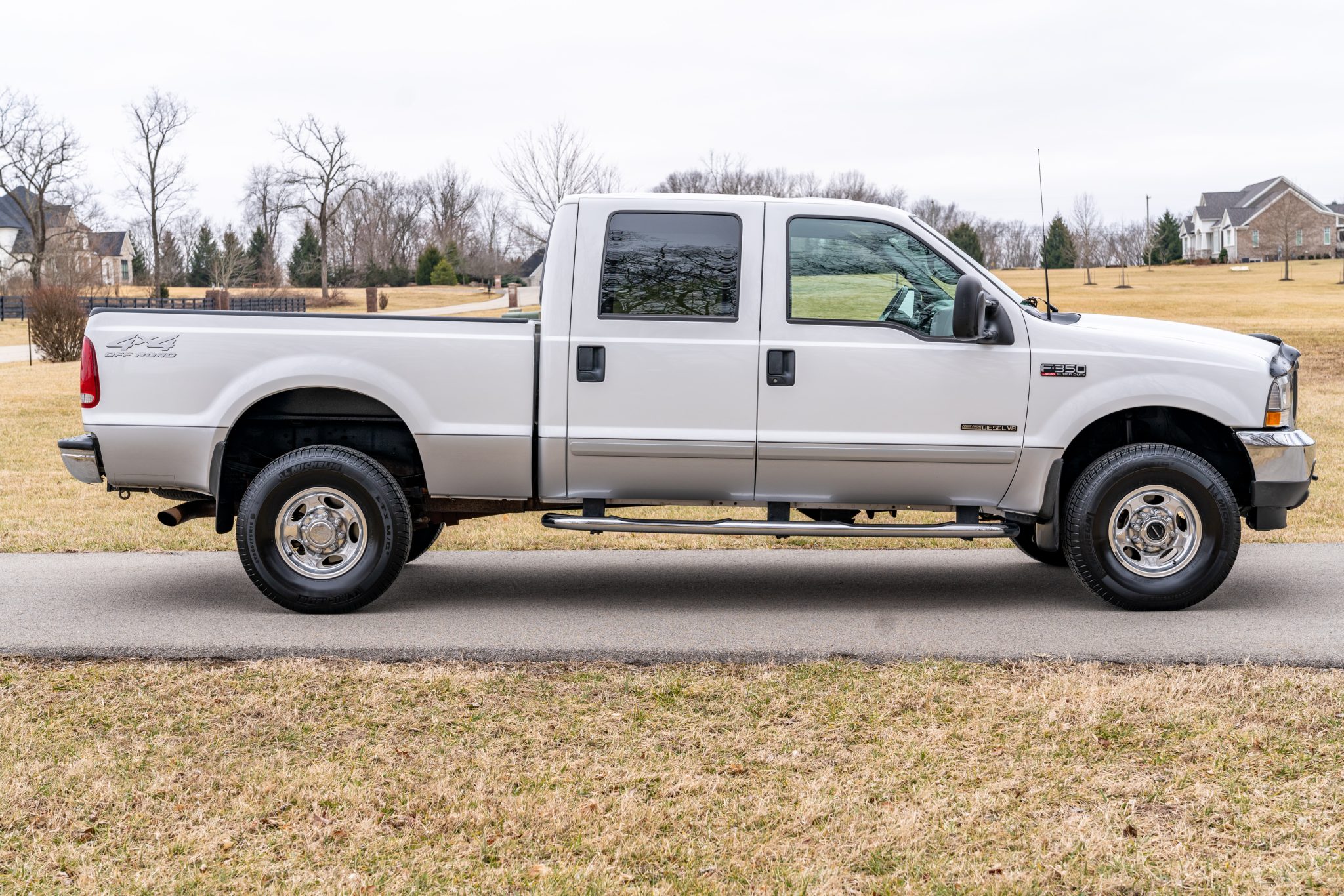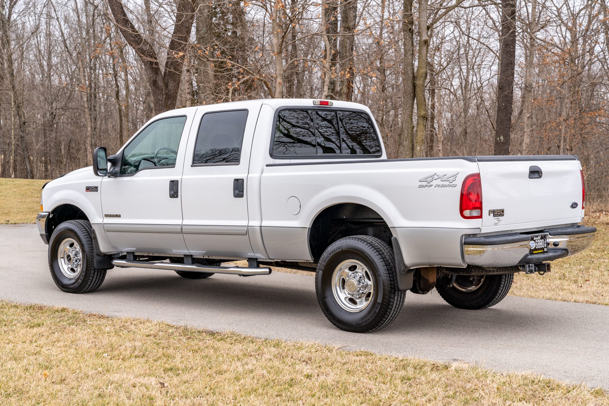 Polished 16″ wheels wear 285/75 Michelin LTX M/S2 tires. Equipment includes four-wheel disc brakes as well as manually locking front hubs. A spare wheel and tire are mounted beneath the bed.
