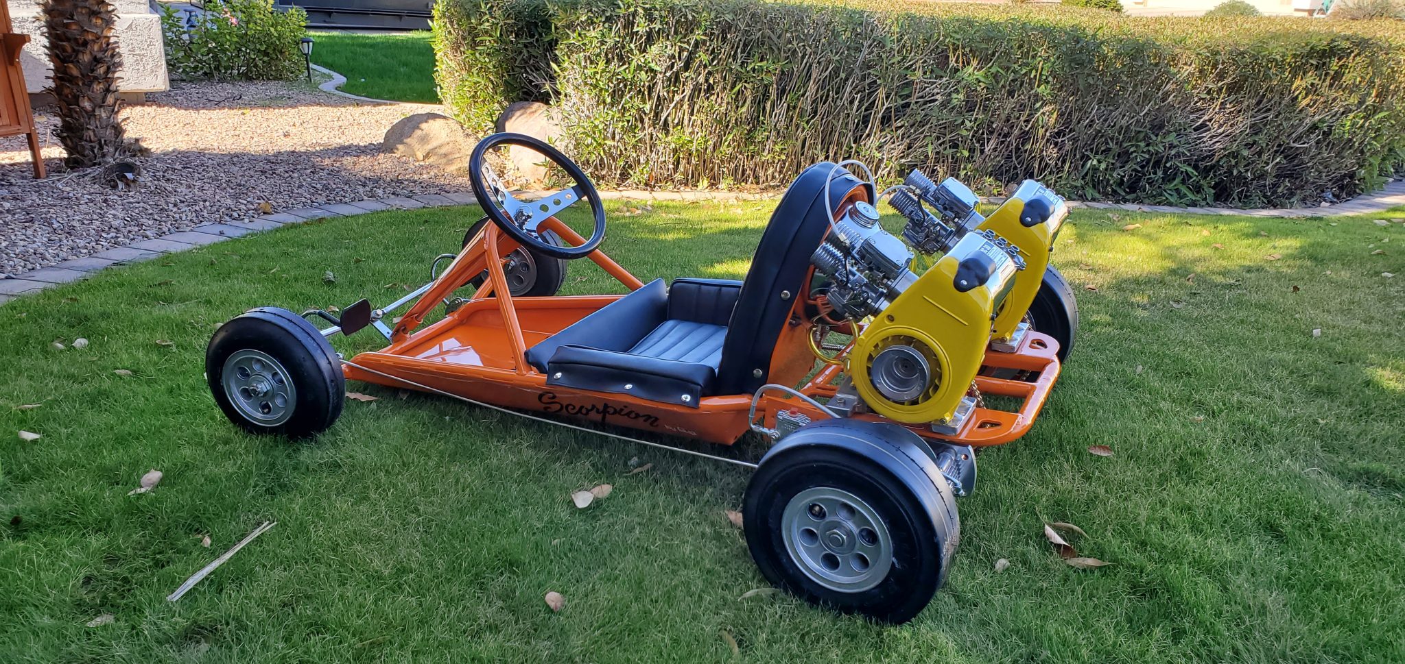 The 5″ “Go Power” wheels are mounted with bias-ply tires that were reportedly installed during the refurbishment. Stopping power is provided by a disc brake mounted on the rear axle.