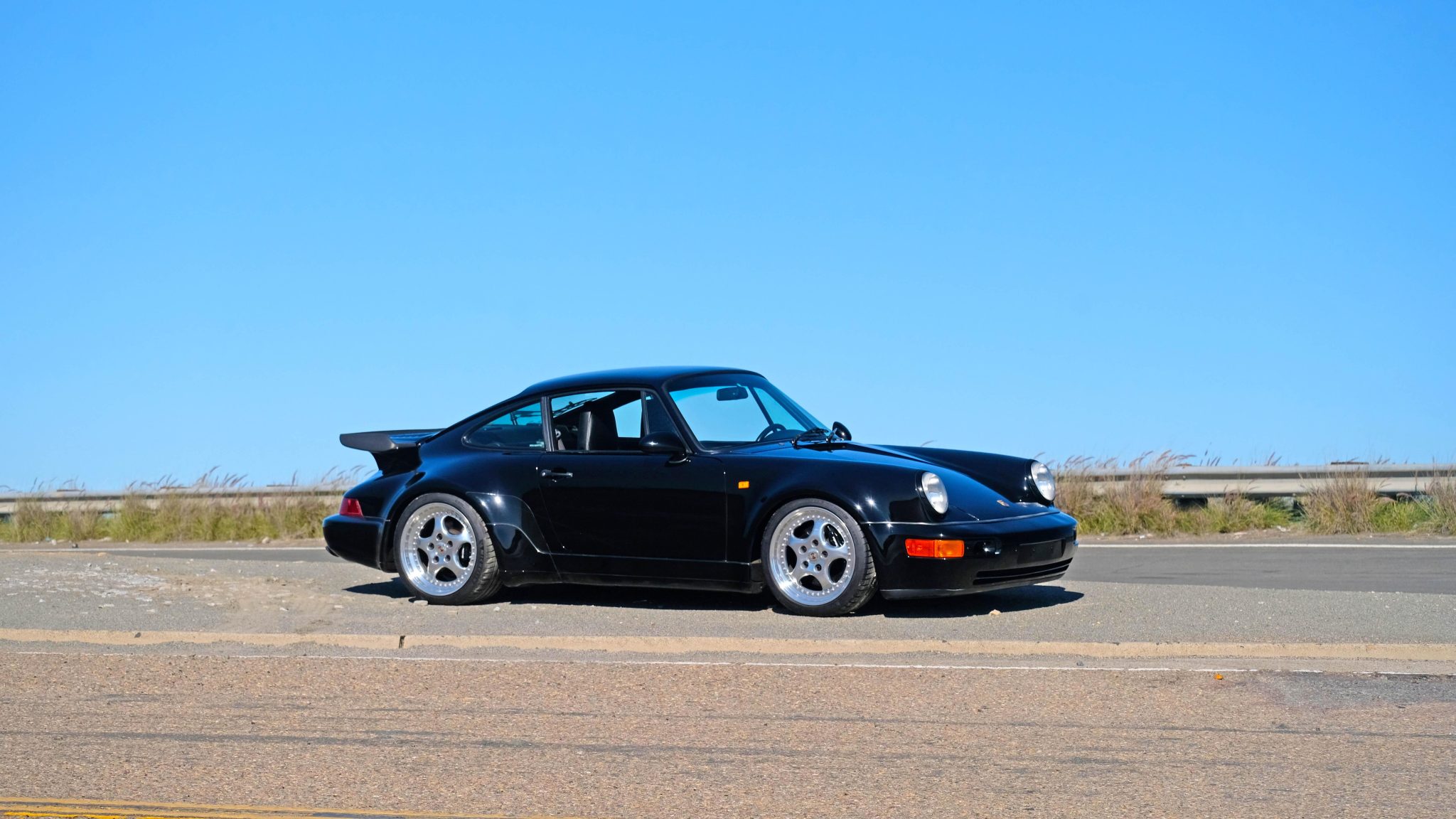 This example is finished in black (A1) and was ordered without a sunroof. Features include a rear window wiper, side marker lamps, dual side-view mirrors, a factory-optioned green graduated tint windshield, and a front brake cooling duct kit, the latter of which was installed in place of the factory fog lights. An aftermarket exhaust system was fitted under previous ownership, and factory-style exhaust tips were installed in preparation for the sale. The decklid and hood shocks, as well as the front valance trim, were also replaced in 2022.