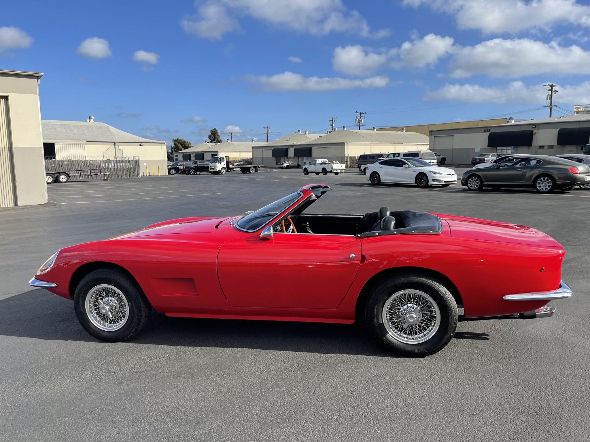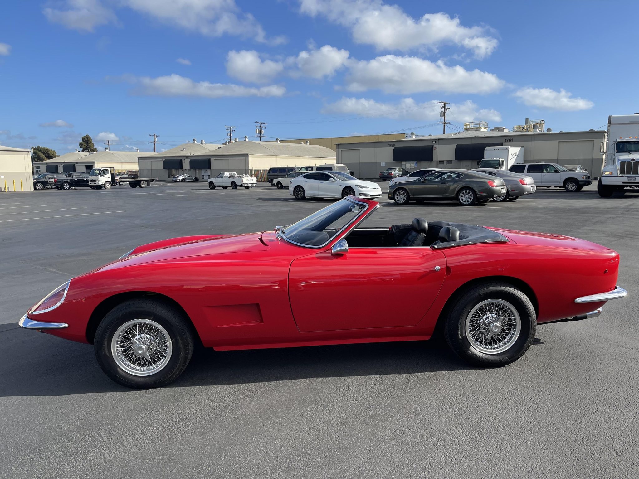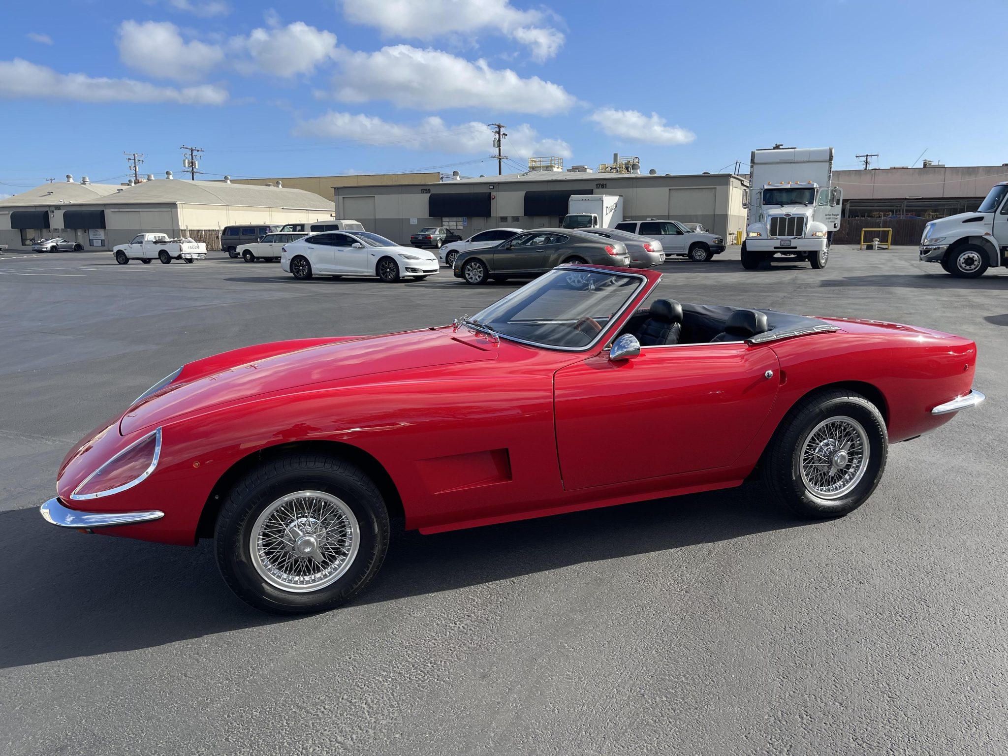 Chrome-finished 14″ Borrani knock-off wire wheels are wrapped in 195/70 Michelin Defender tires. Braking is handled by four-wheel discs.