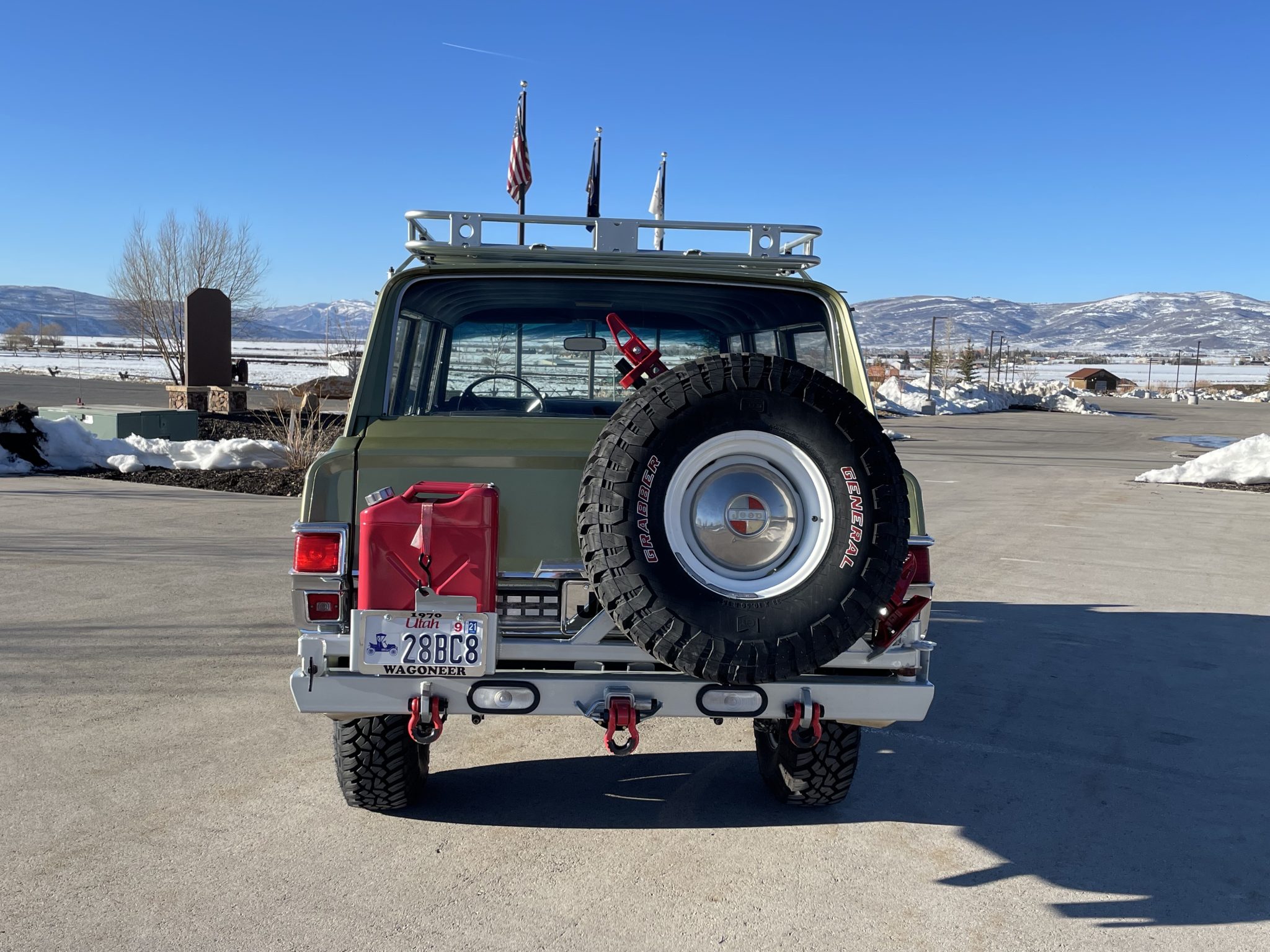 Steel 15″ wheels carry “dog dish” hubcaps and are mounted with 33×10.5″ red-letter General Grabber tires installed under current ownership. Additional work included the installation of Bilstein shocks and the replacement of the springs and bushings.