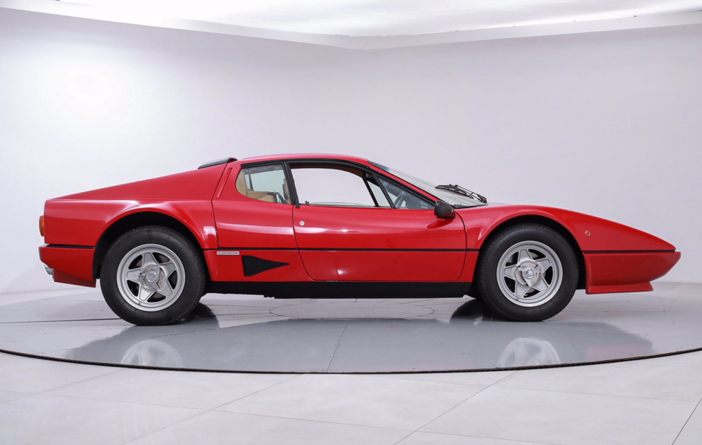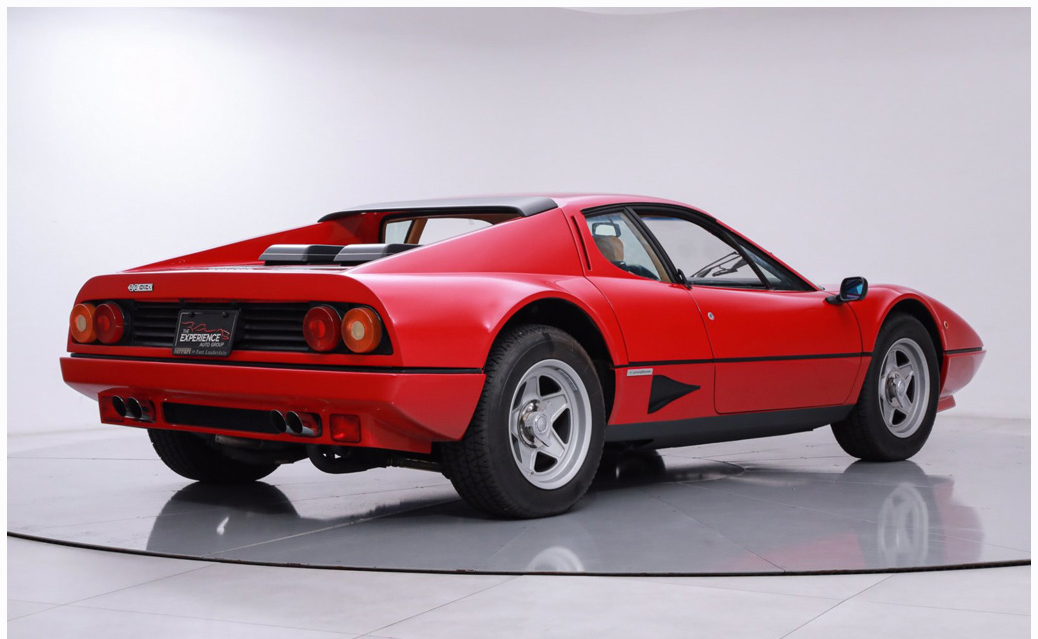 This example was repainted by Ferrari Lake Forest in 2018. Features include a black rear high-mount spoiler and engine lid grilles, NACA ducts aft of the doors, adjustable mirrors, side markers, front and rear fog lights, pop-up headlights, and a front spoiler.