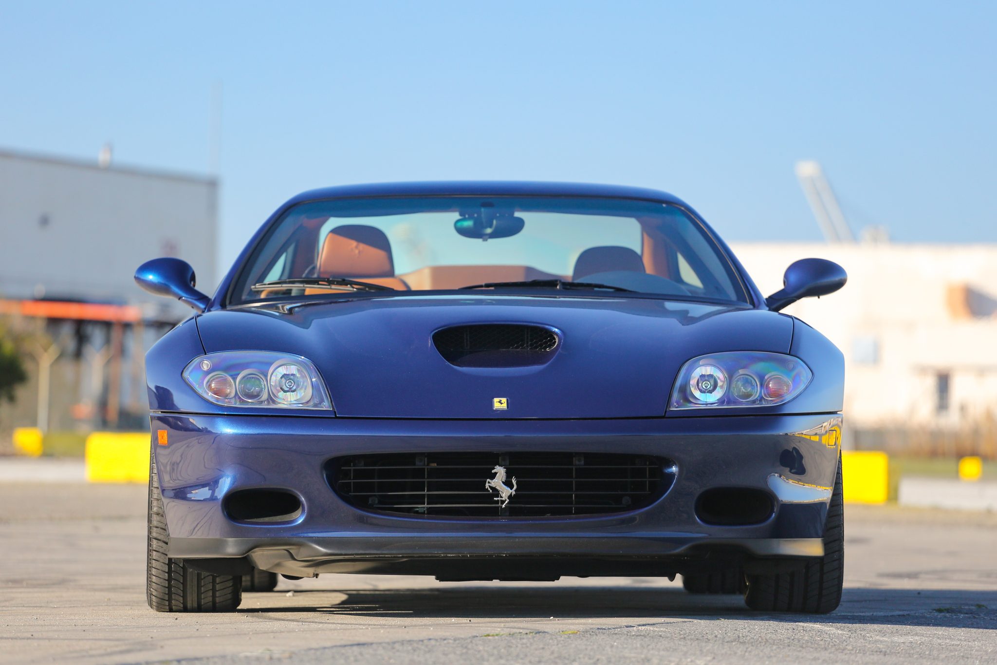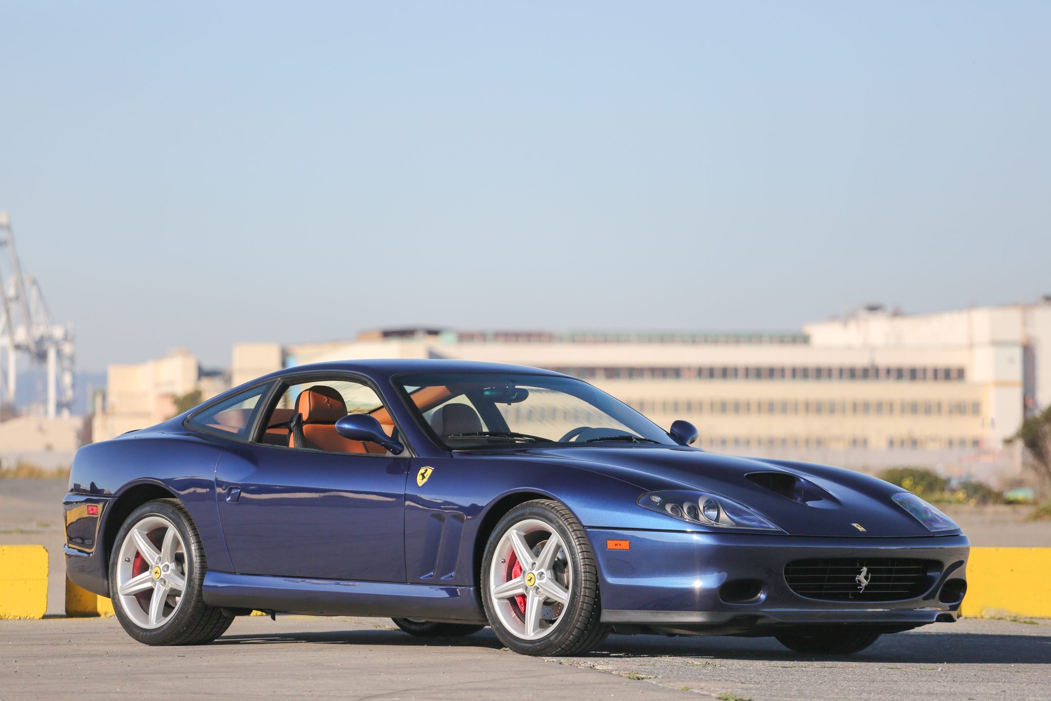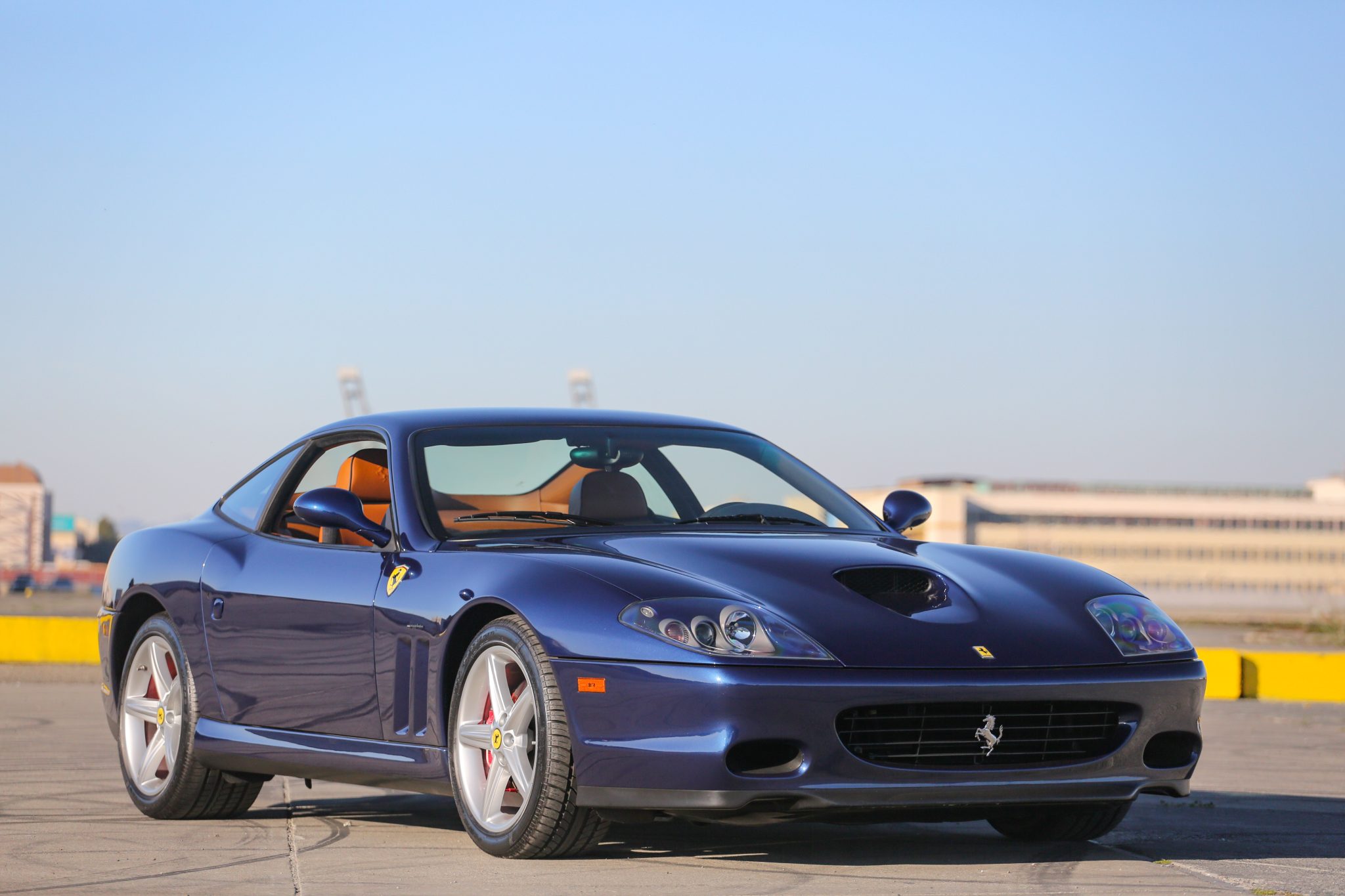Factory 18″ alloy wheels are mounted with 255/40 front and 295/35 rear Pirelli P Zero Rosso tires that were installed in March 2022. Stopping power is provided by red Ferrari-branded calipers and cross-drilled rotors. The front sway bar bushings were replaced in April 2018.